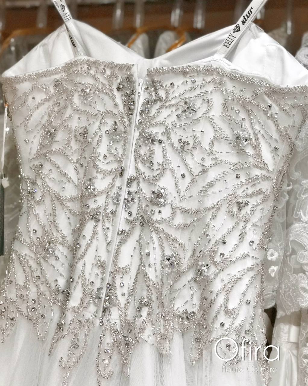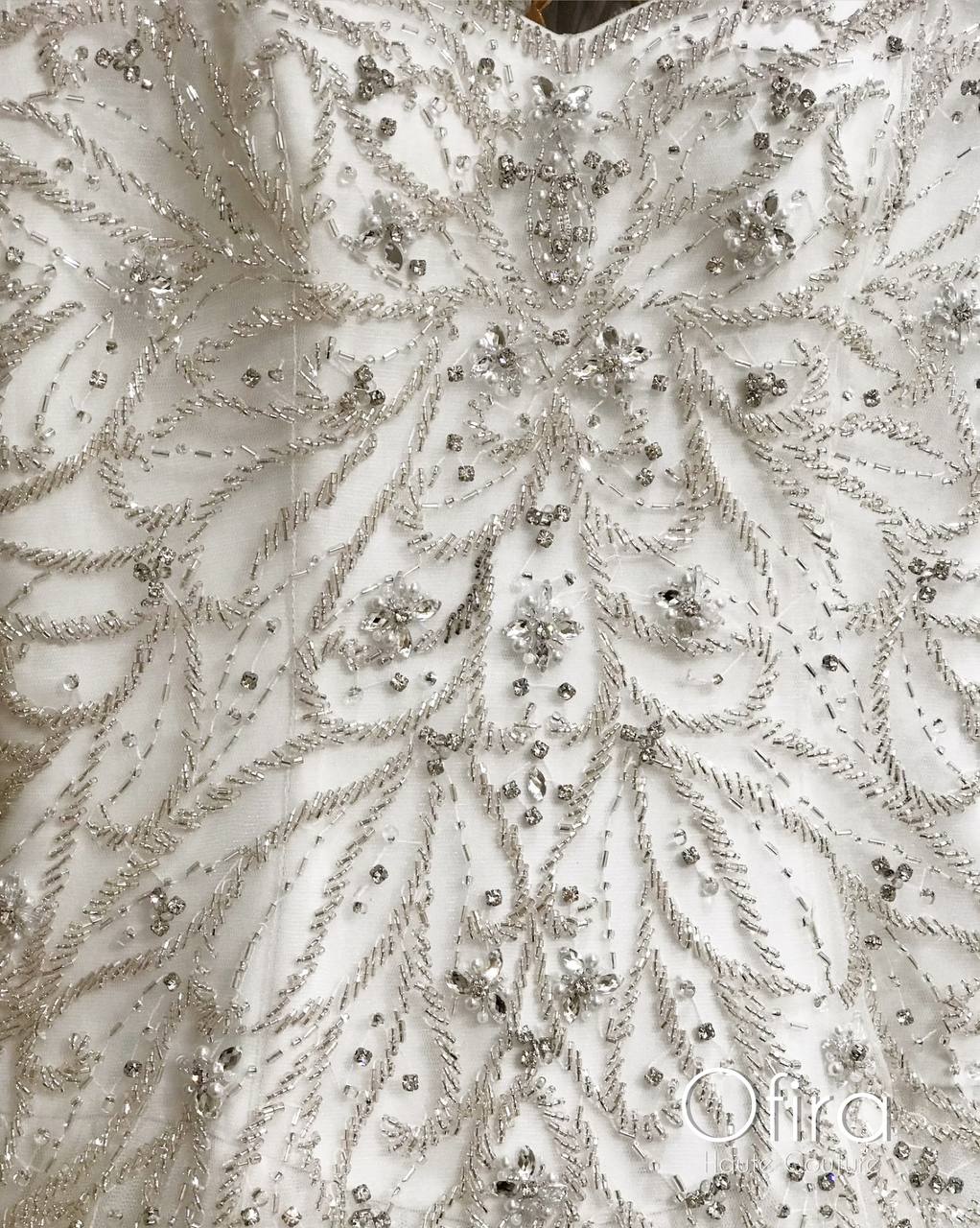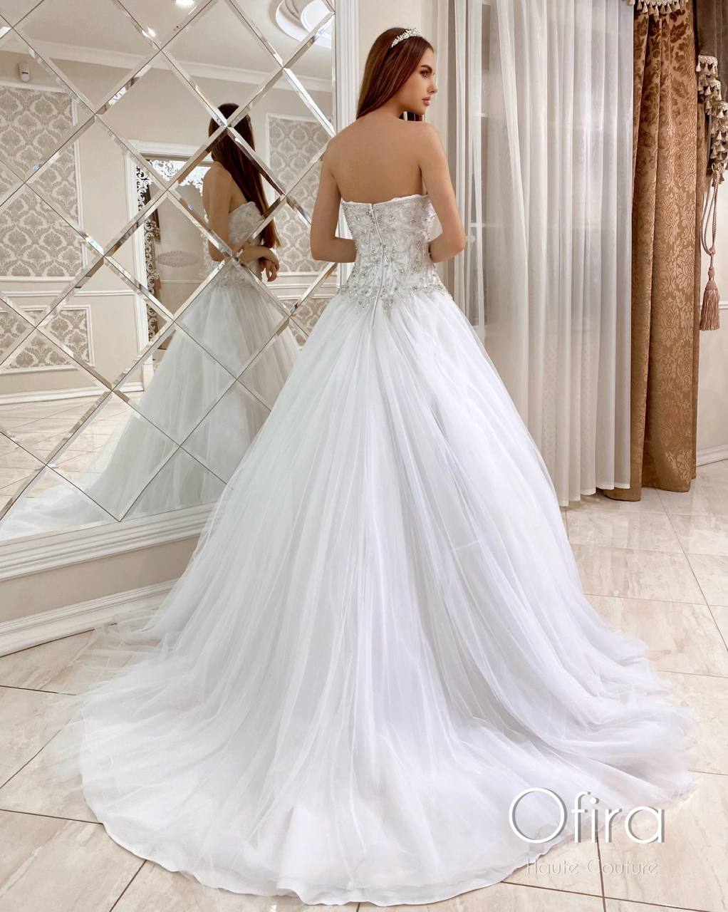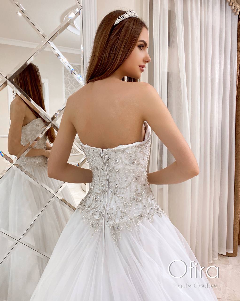 Вишукана розкіш та блиск кристалів! Брендова весільна сукня «Ofira» з корсетом, прикрашеним розкішною вишивкою із кришталя та кристалів «Swarovski», створить неповторний образ, де кожен кристал — мерехтіння вашої любові та щастя.