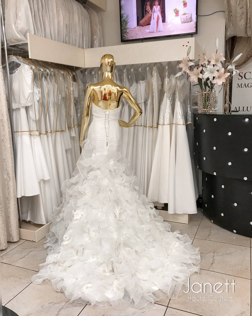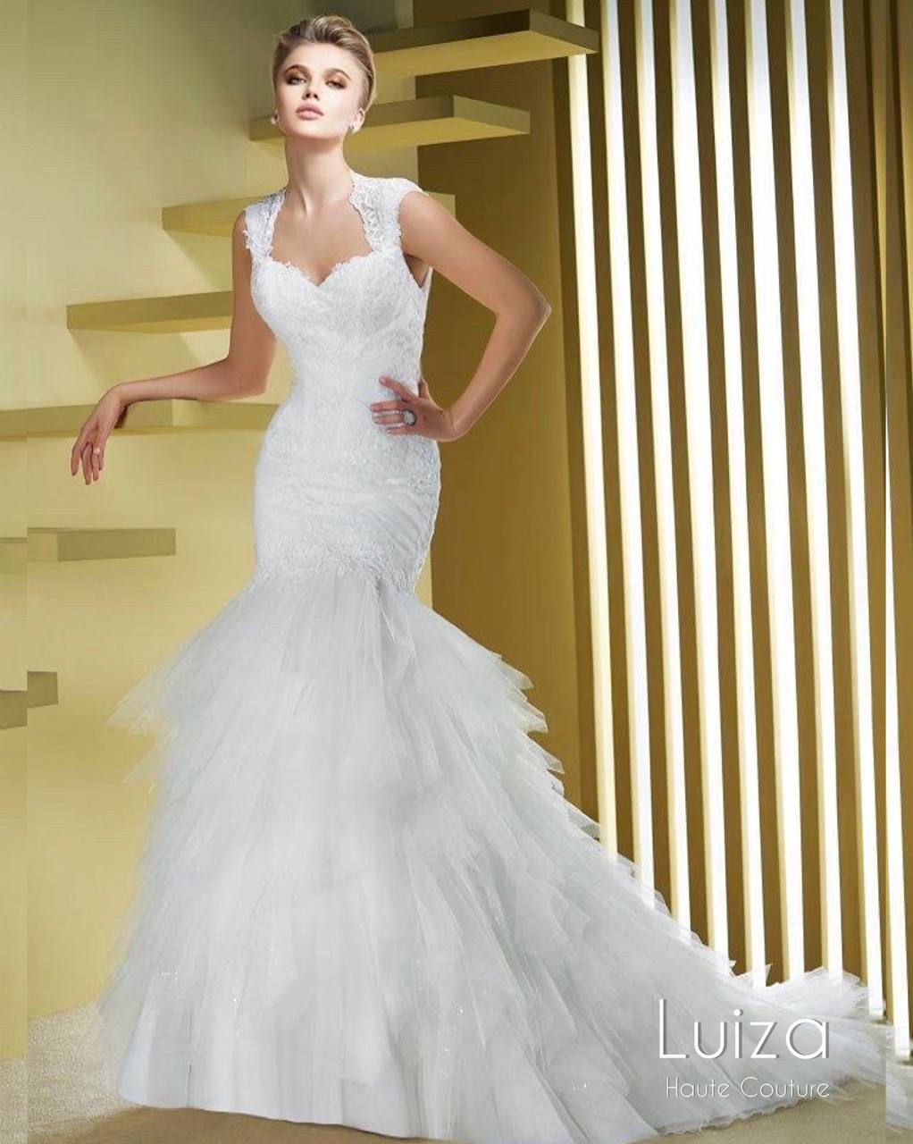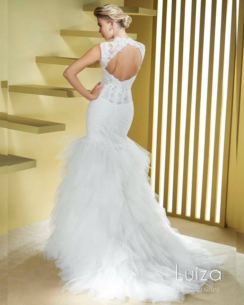 Гармонія пристрасті та вишуканості! Приголомшлива весільна сукня «Luiza» силуету «рибка» створена для тих, хто мріє про неповторну красу. З відкритою спиною, що підкреслює витонченість, і чудовою пишною спідницею, воно надає образу легкість і велич. Надайте своєму весільному дню неповторного стилю.