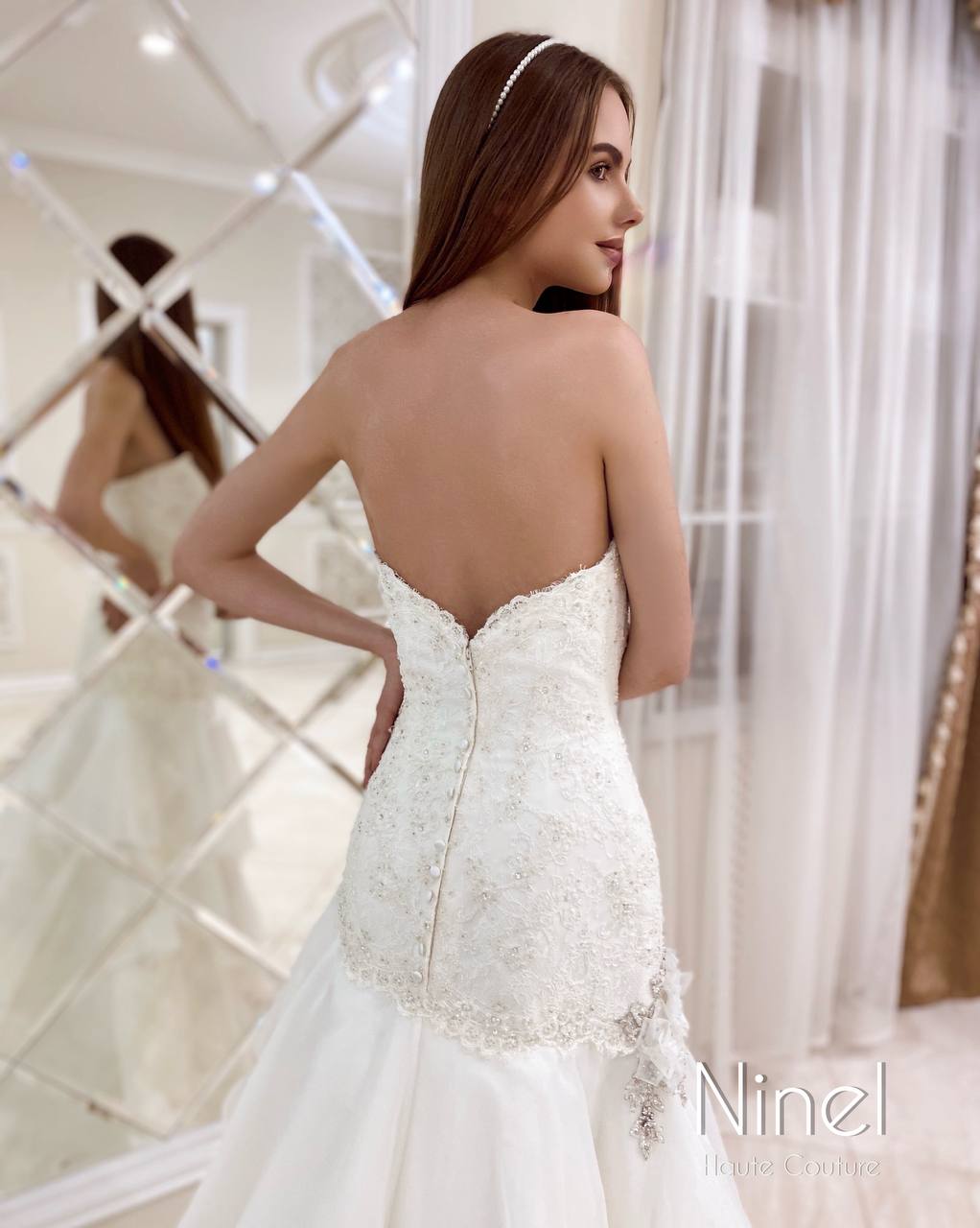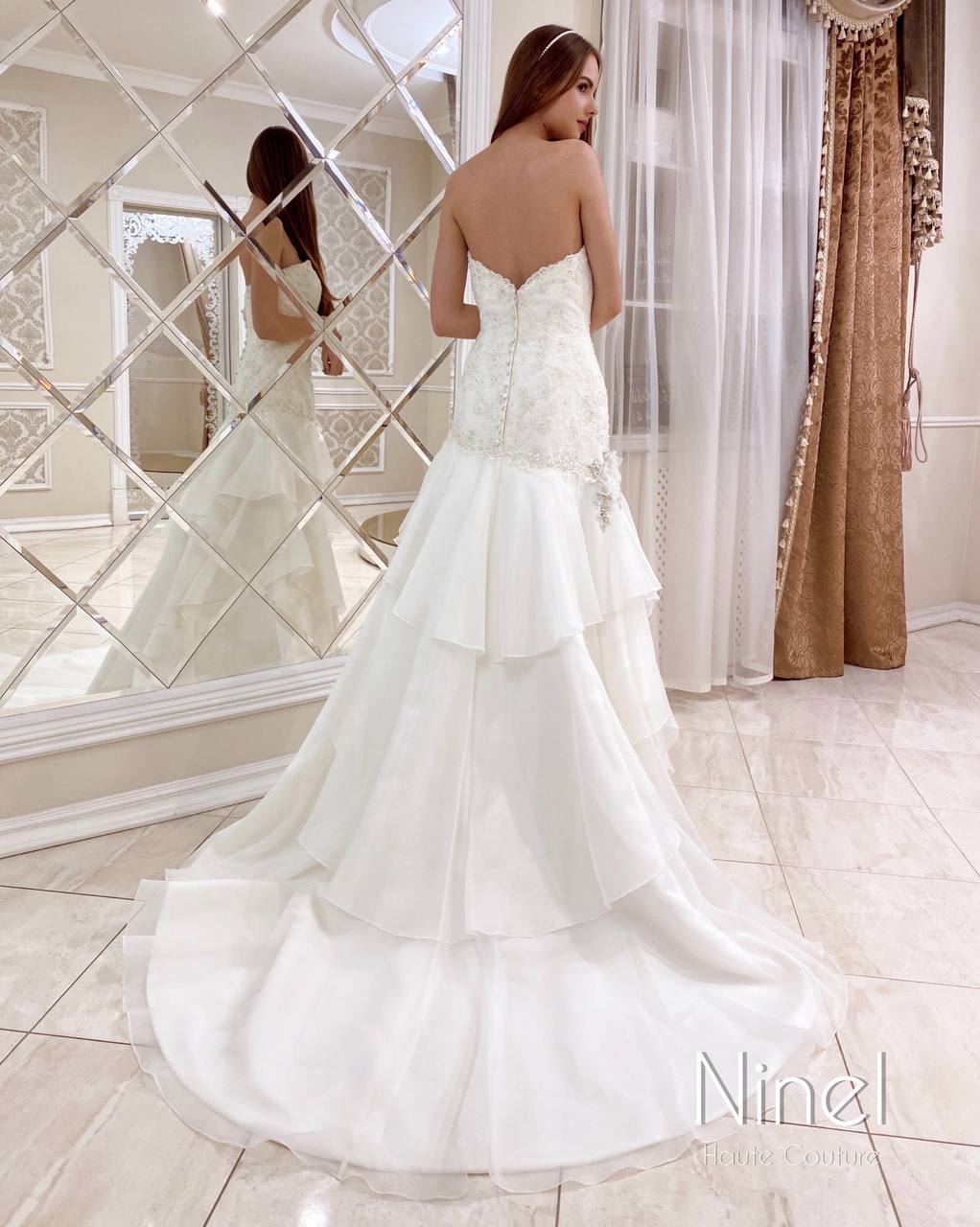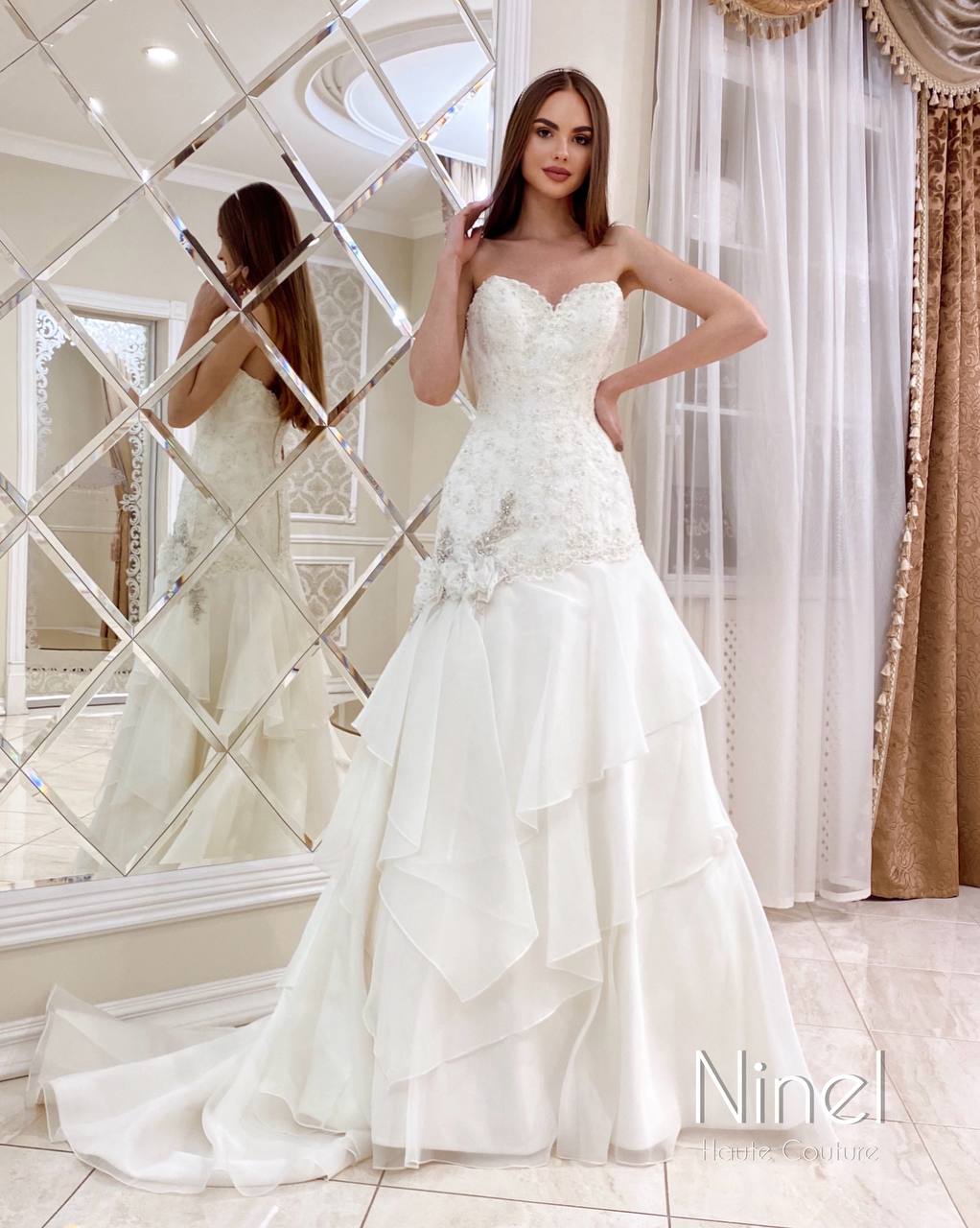 Просто бездоганна модель вінчальної сукні «Ninel» із заниженою талією створена для тих, хто цінує класику та оригінальність. Неймовірної краси мереживний корсет підкреслить вашу фігуру, а легка органзова спідниця додасть ніжності та легкості вашому образу. Ця сукня - ключ до неповторного стилю та хвилюючій жіночності, у найважливіший день вашого життя.