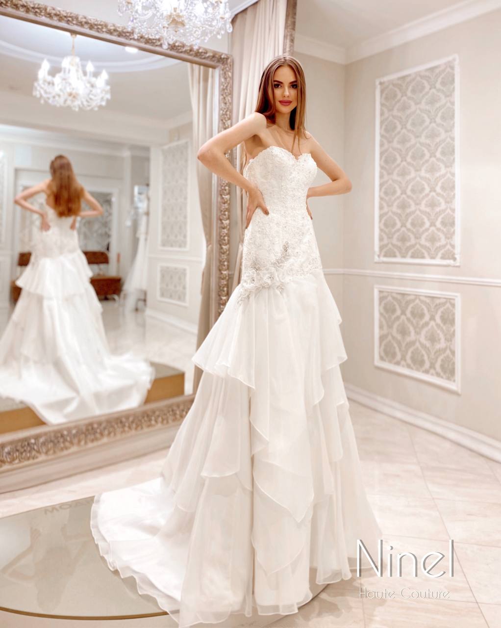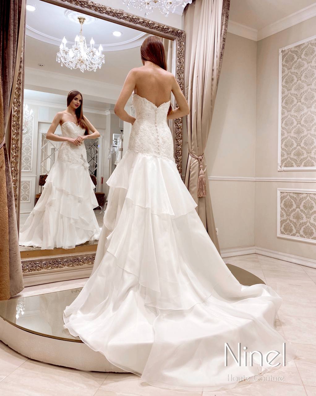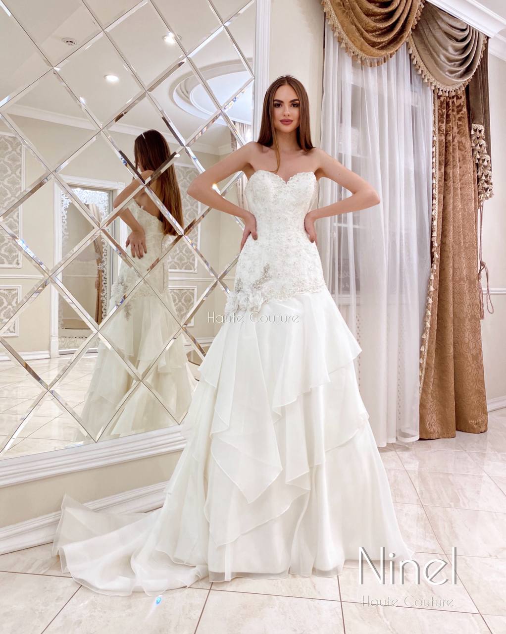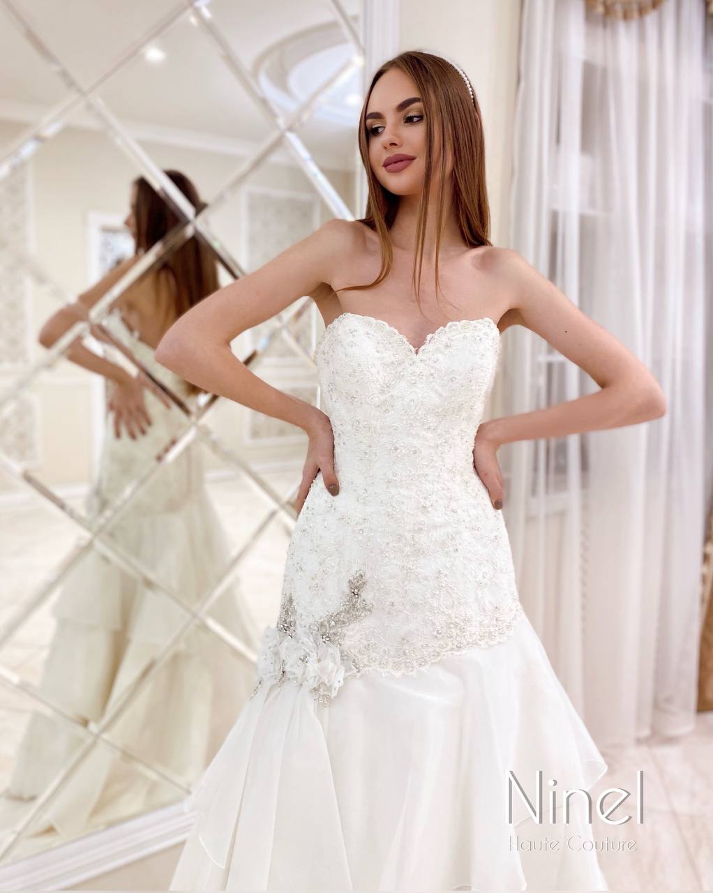 Просто бездоганна модель вінчальної сукні «Ninel» із заниженою талією створена для тих, хто цінує класику та оригінальність. Неймовірної краси мереживний корсет підкреслить вашу фігуру, а легка органзова спідниця додасть ніжності та легкості вашому образу. Ця сукня - ключ до неповторного стилю та хвилюючій жіночності, у найважливіший день вашого життя.