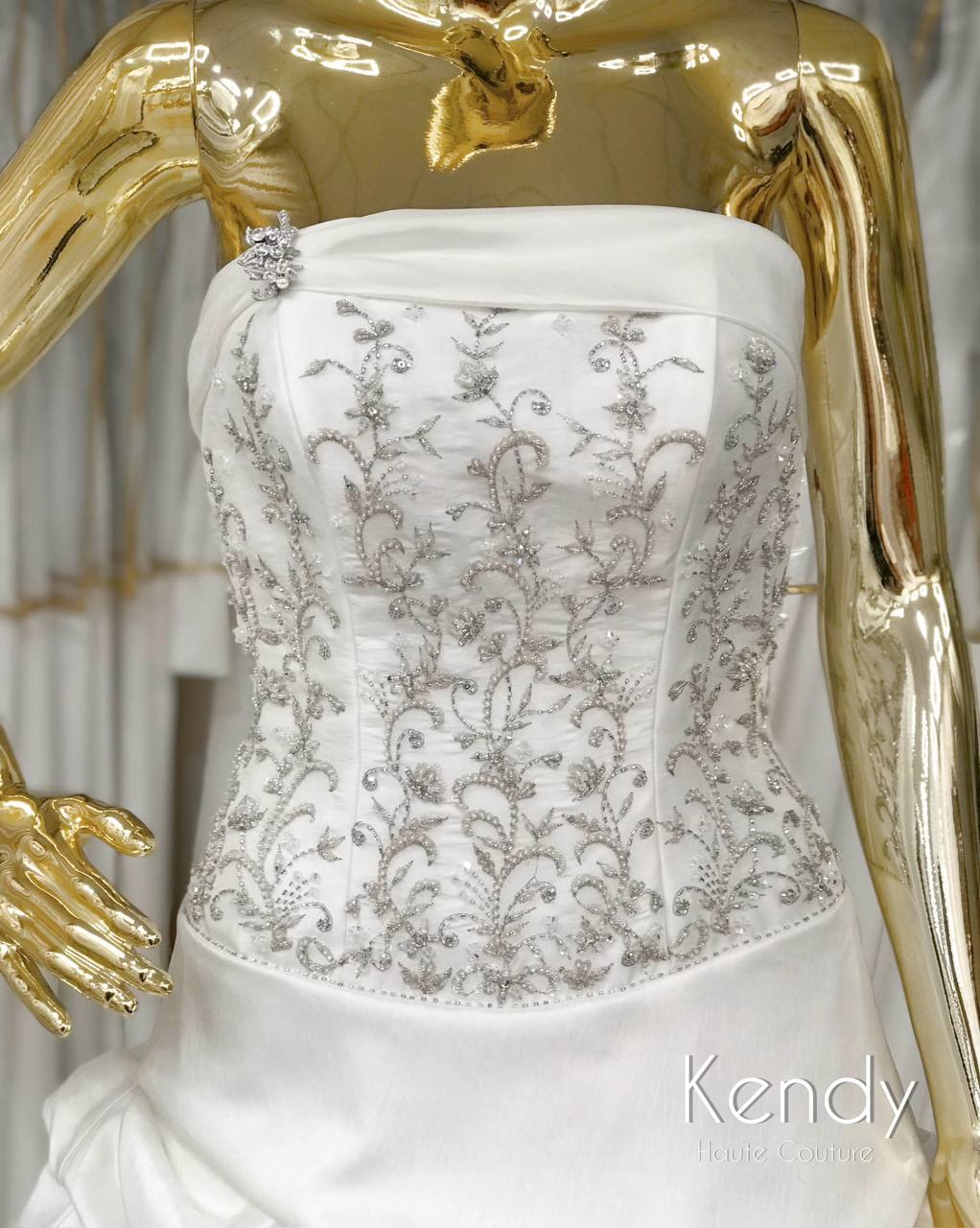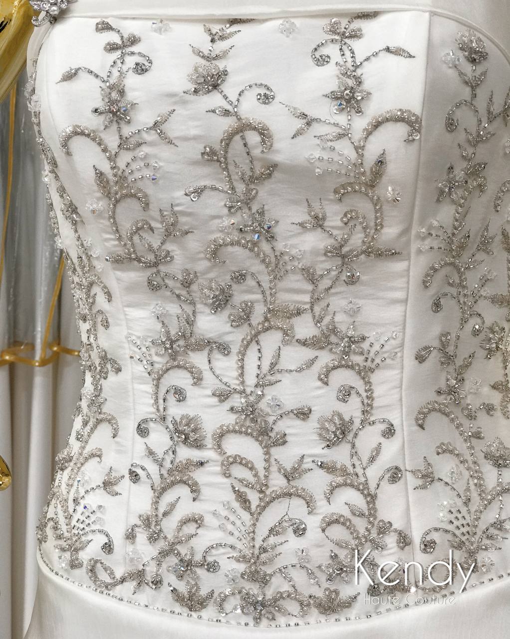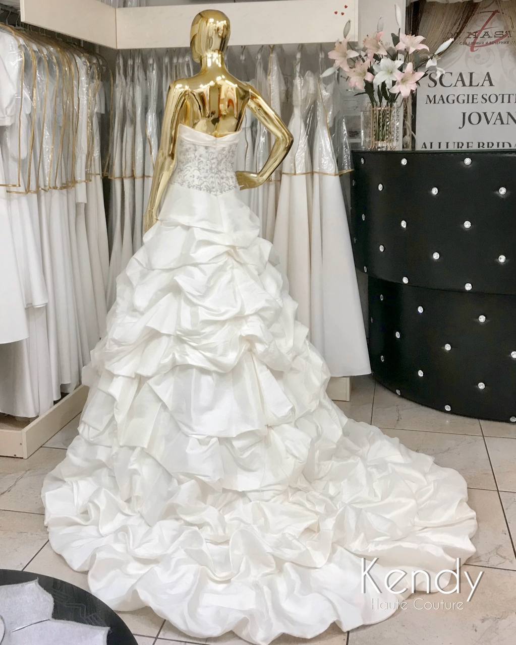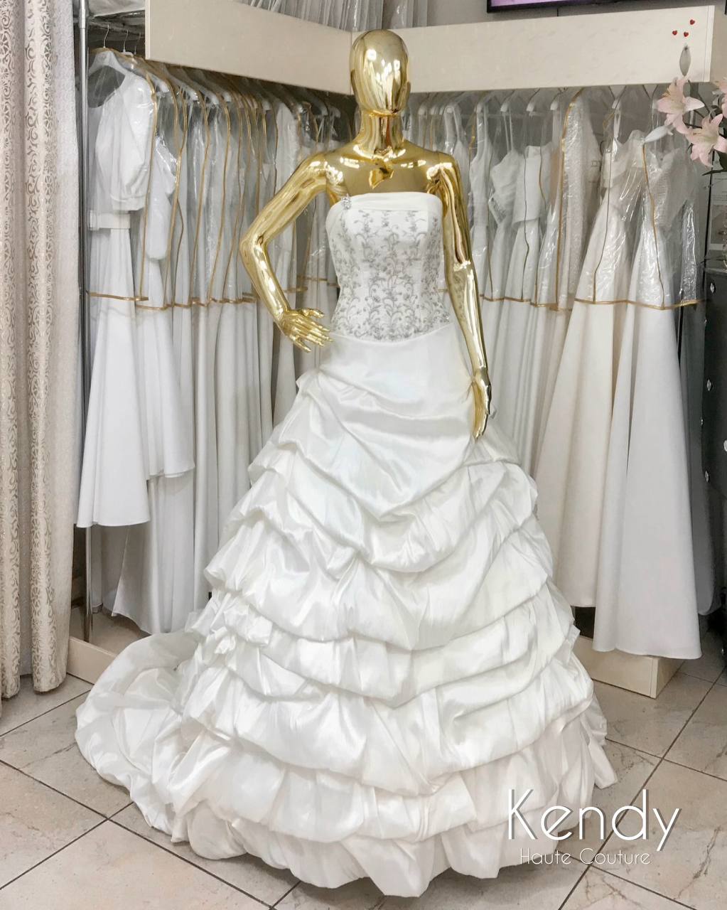 Восхитительная роскошь в каждой детали! Модель от Кутюр «Kendy» — настоящий шедевр с вышитым корсетом и великолепной юбкой из тафетаса в форме бутона цветка. Это воплощение стиля и изысканности, которое подчеркнет вашу утонченность и создаст впечатление неповторимой красоты в самый важный день.