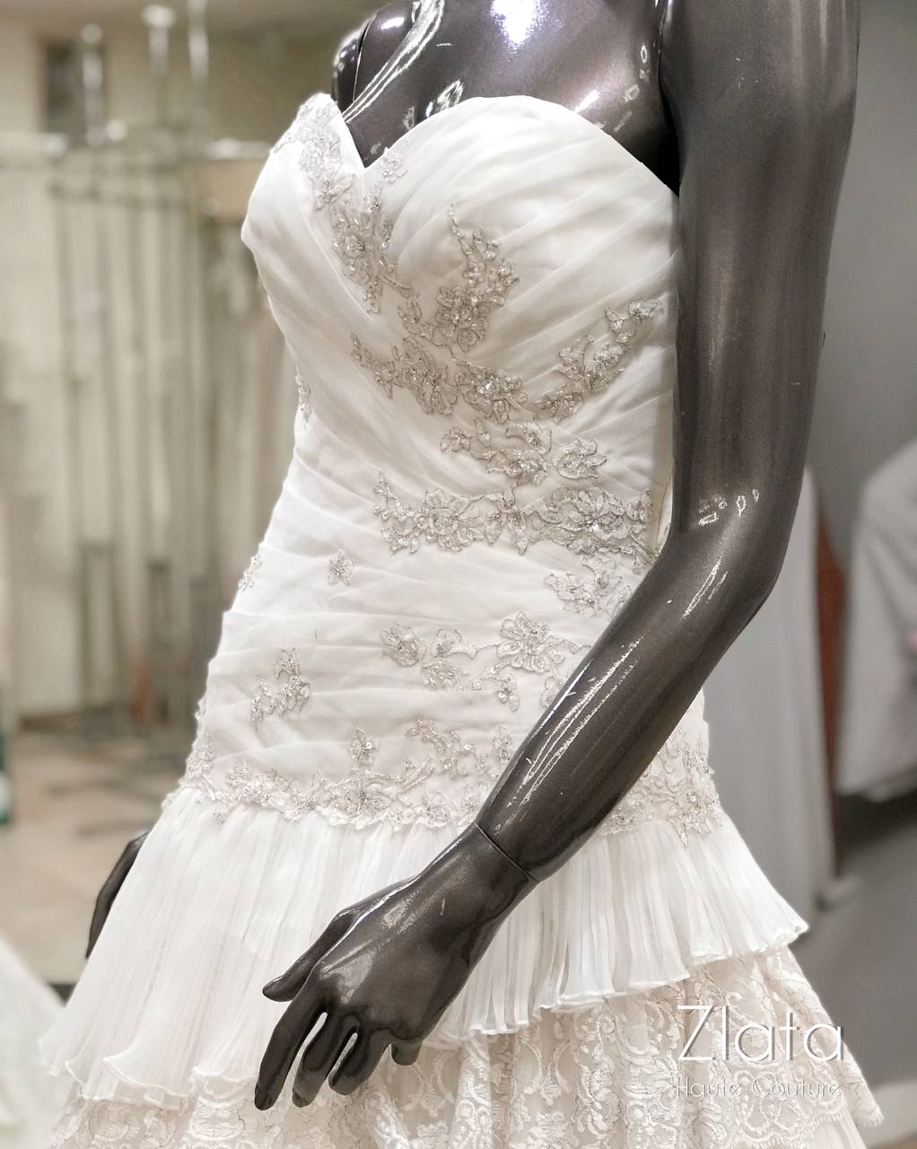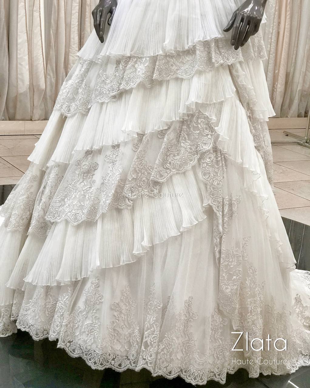 Чарівність у кожному русі. Наша ексклюзивна модель Roxana від Кутюр, яка не має аналогів. Облягаючий силует з чудовою спідницею з хмари плісованих оборок - це втілення грації та вишуканості, яке підкреслить вашу жіночність і створить неповторний образ весільної церемонії. Кожна оборка, наче хвиля ніжності, надає сукні унікального шарму. Відчуйте себе казковою принцесою в цьому чудовому весільному вбранні, яке подарує вам неймовірні моменти захоплення і захоплених поглядів.