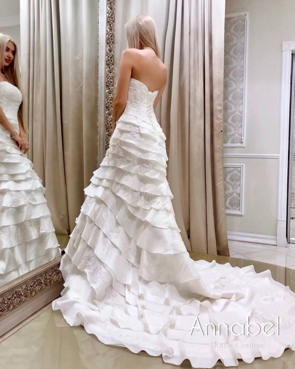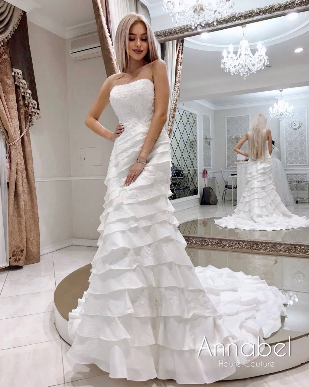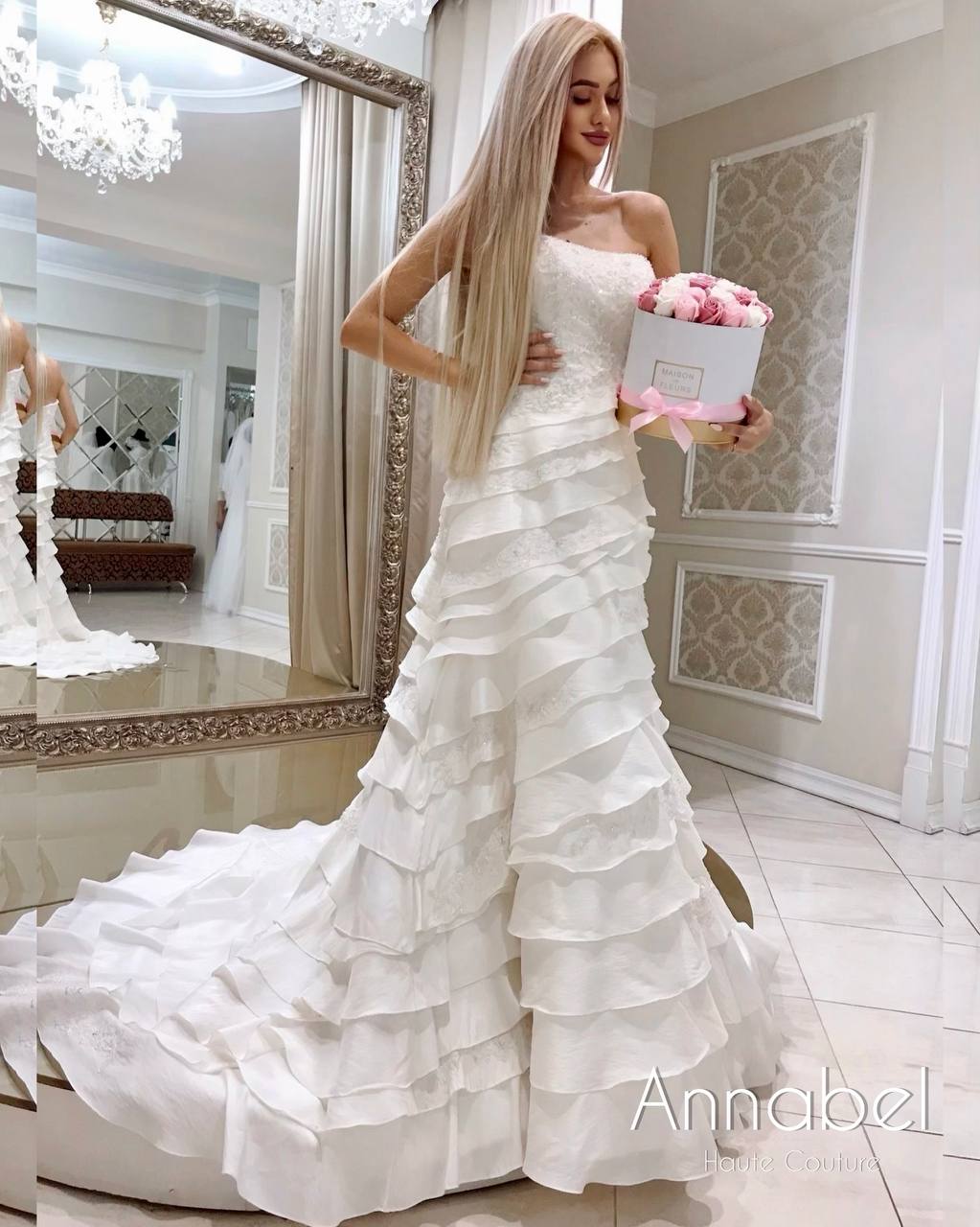 Весільна сукня з ярусами або воланами виглядає по-справжньому казково. Вона може мати прямий силует або бути пишною за допомогою підюбника. Обирай, що тобі більше до душі та відчувай себе справжньою принцесою своєї урочистості.