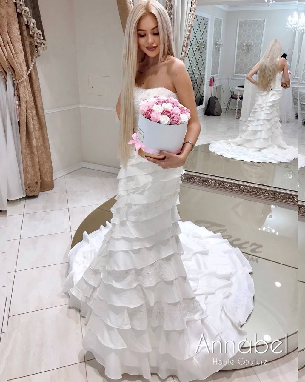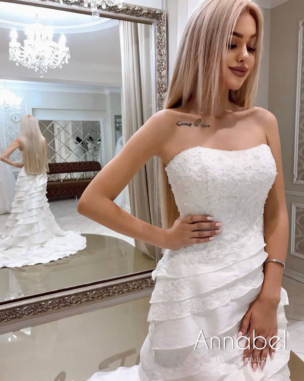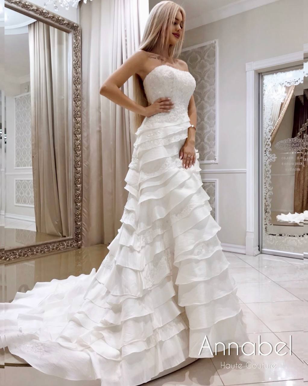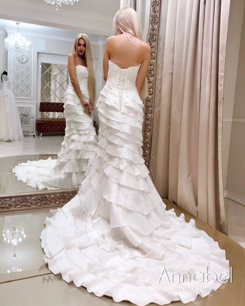 Весільна сукня з ярусами або воланами виглядає по-справжньому казково. Вона може мати прямий силует або бути пишною за допомогою підюбника. Обирай, що тобі більше до душі та відчувай себе справжньою принцесою своєї урочистості.