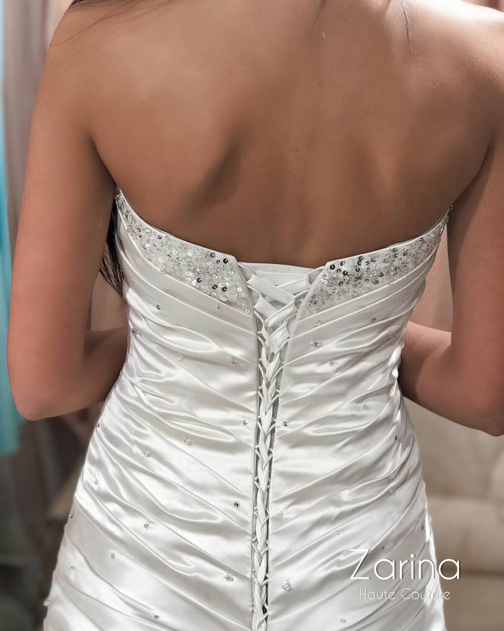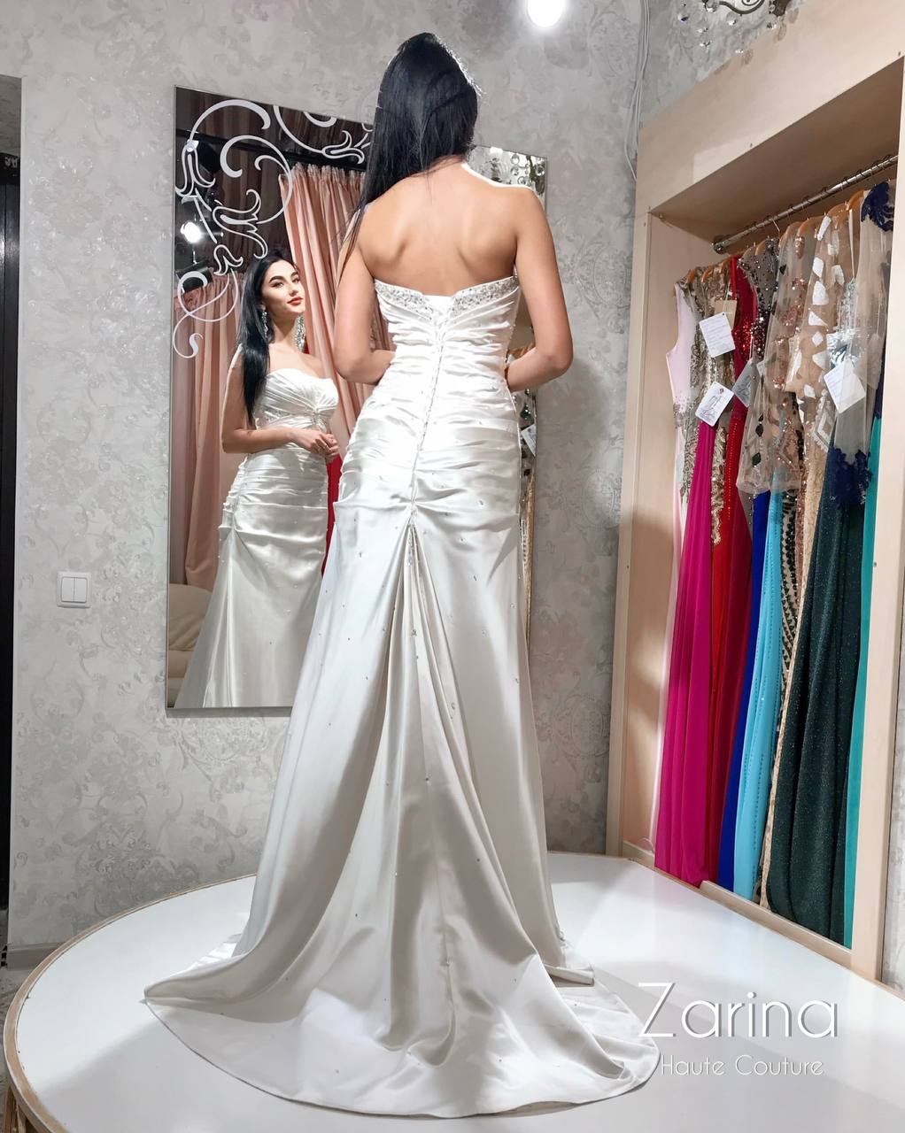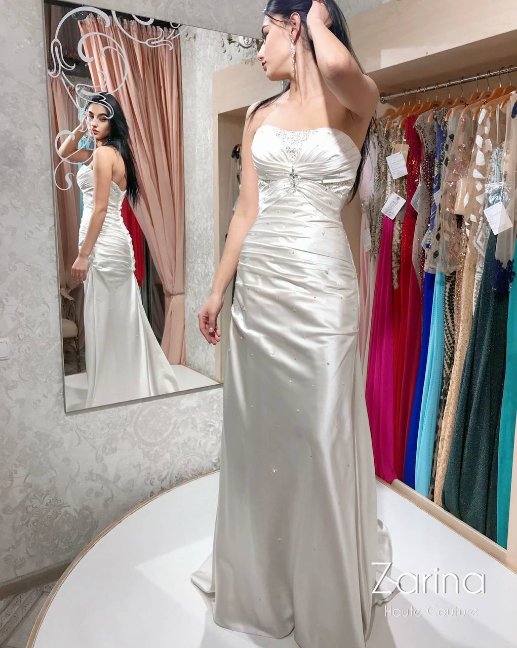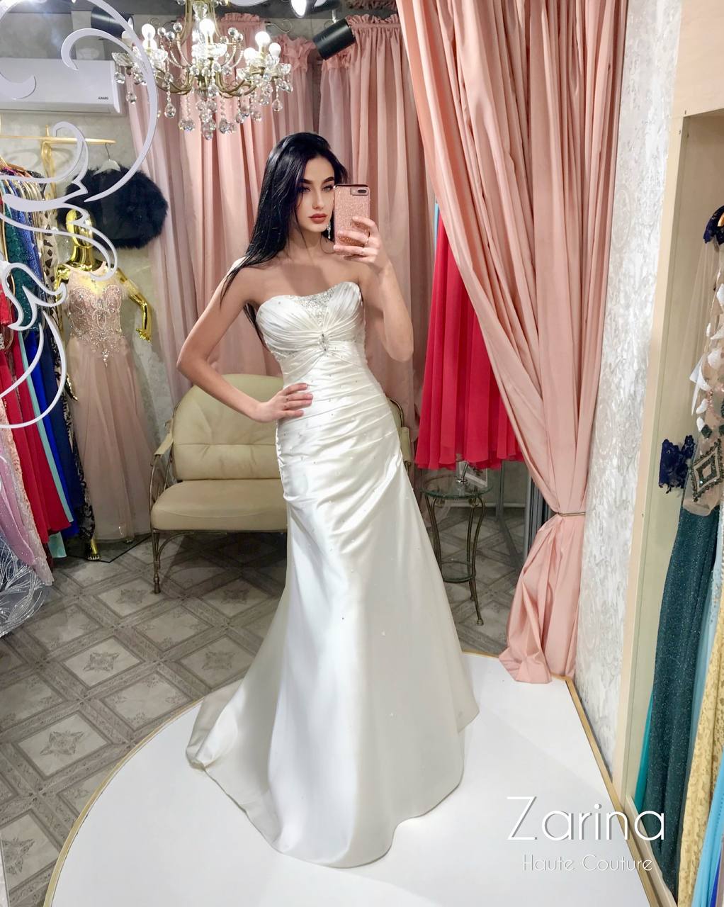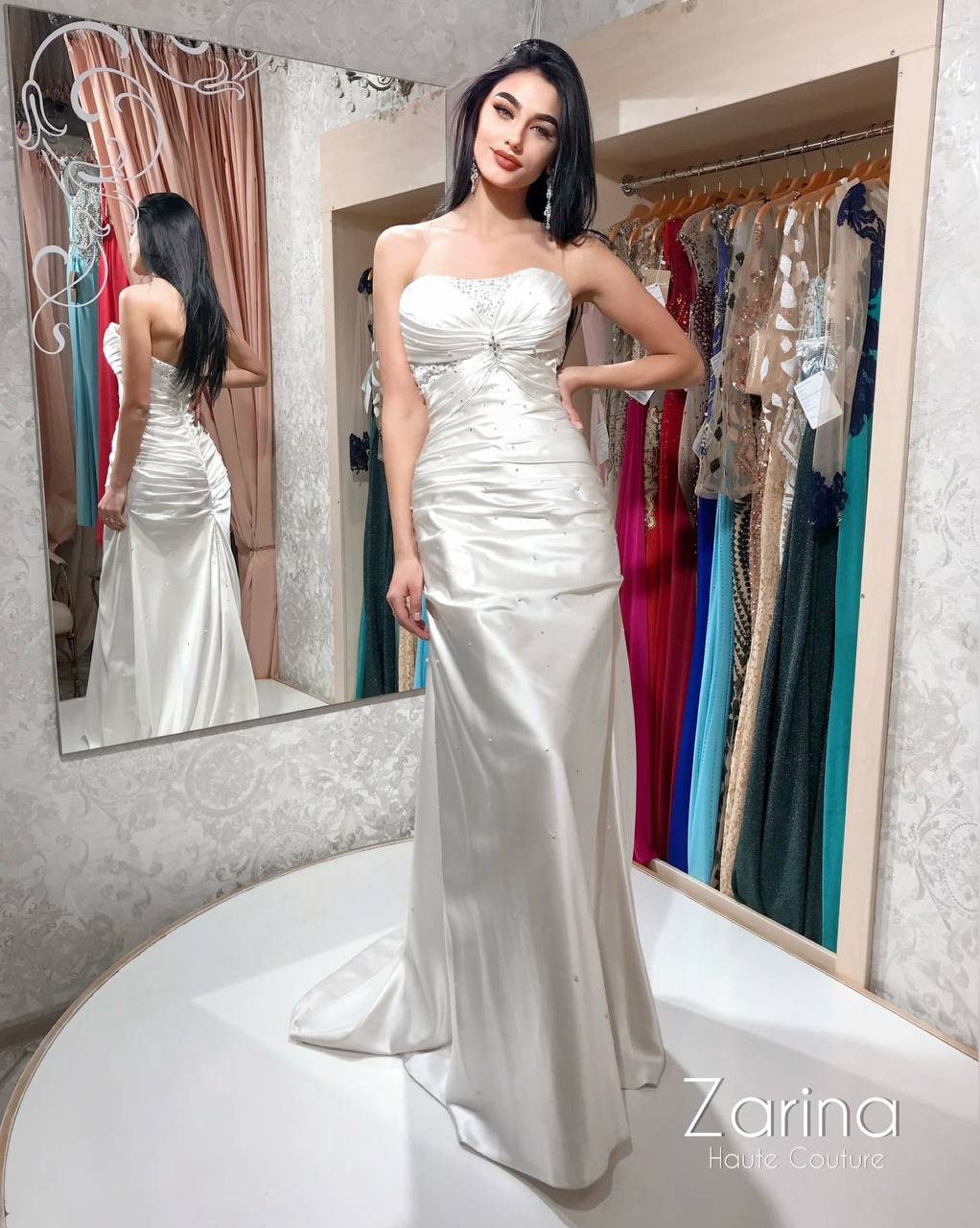 Вишуканість та досконалість! Неповторна модель «Zarina» від Кутюр, відтінку перлини в європейському стилі — це справжній витвір мистецтва. Глянець королівського атласу та плавні лінії силуету створюють чудовий образ, що втілює розкіш та елегантність. Це сукня для наречених, які мріють про стильний та неповторний весільний образ.