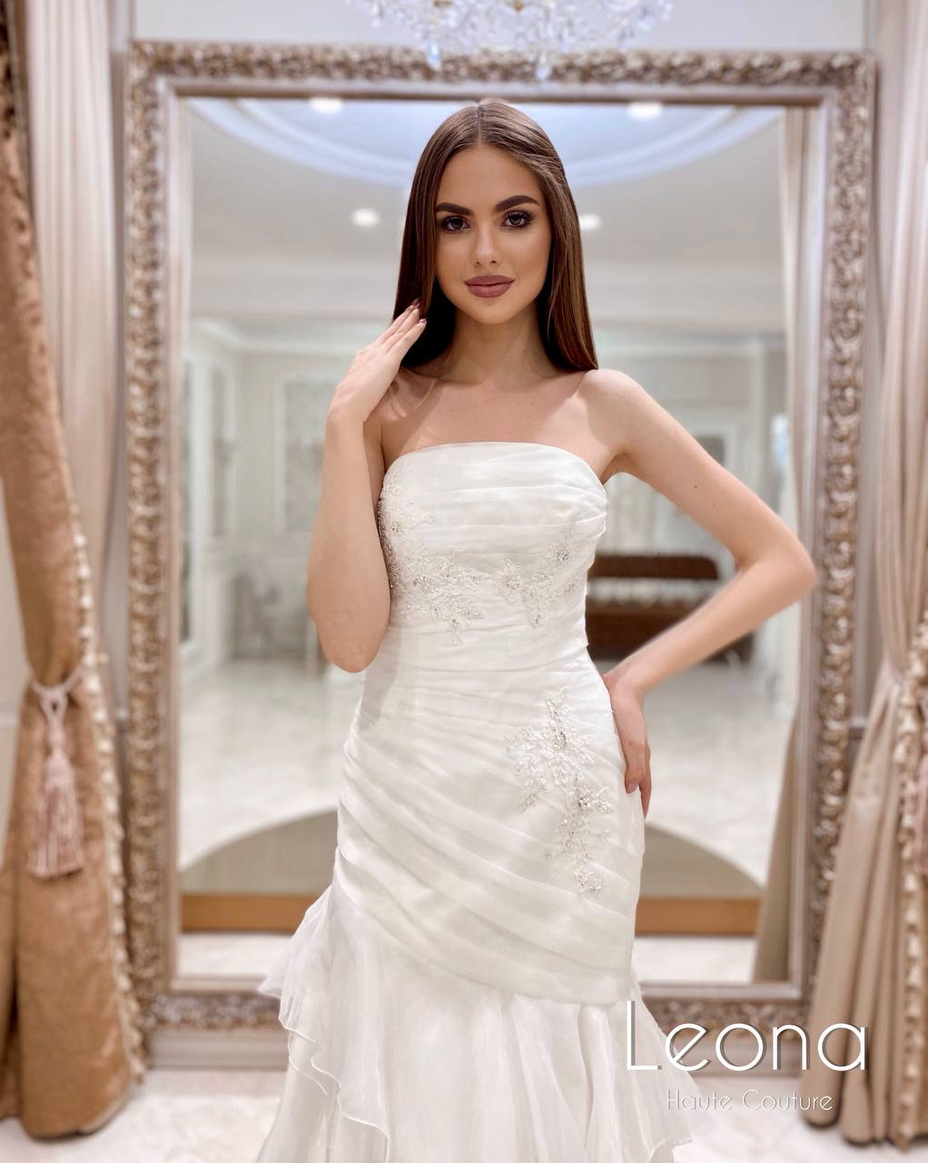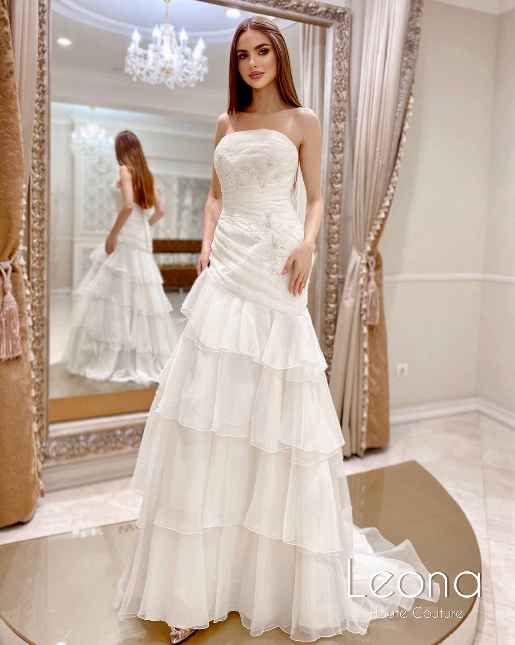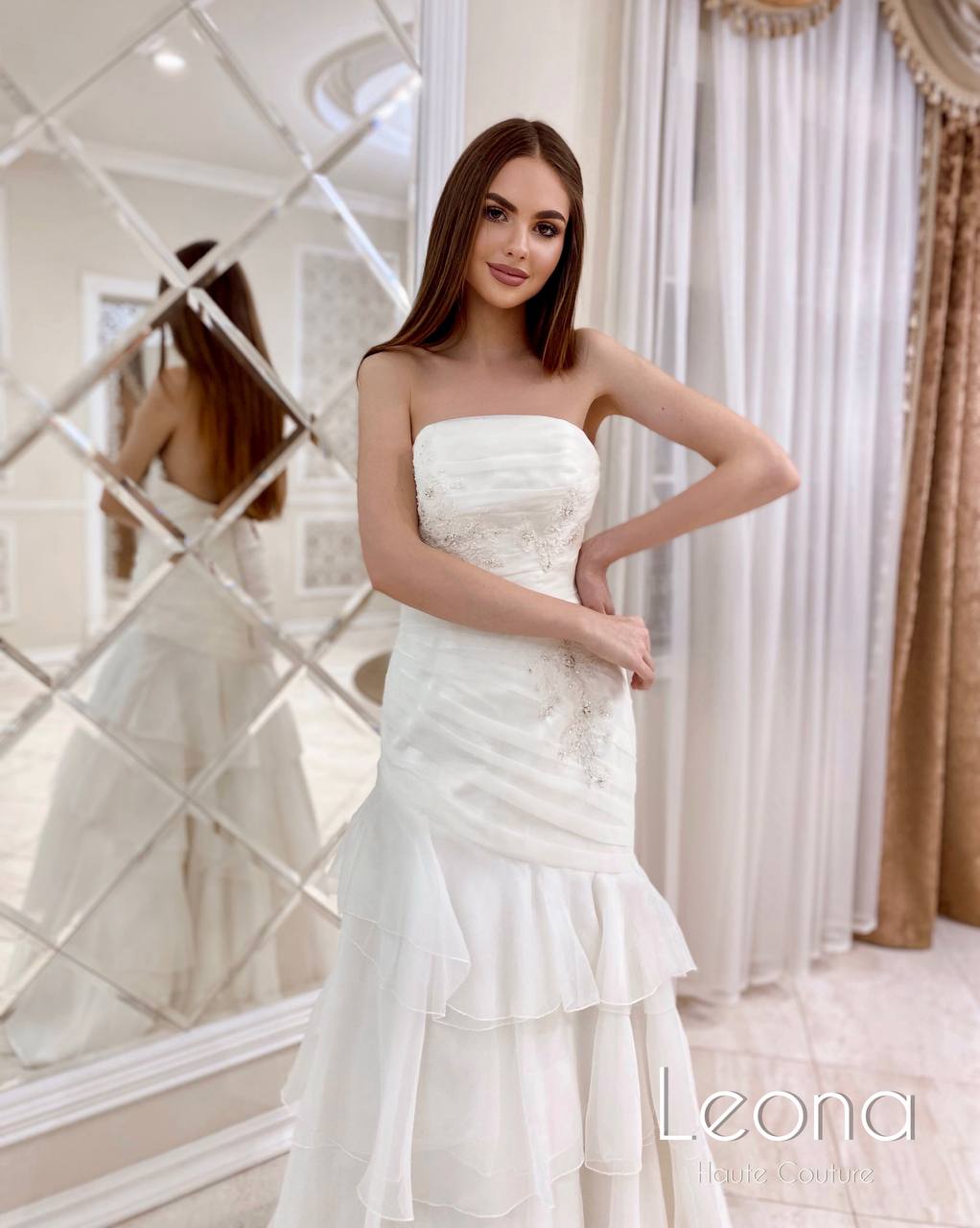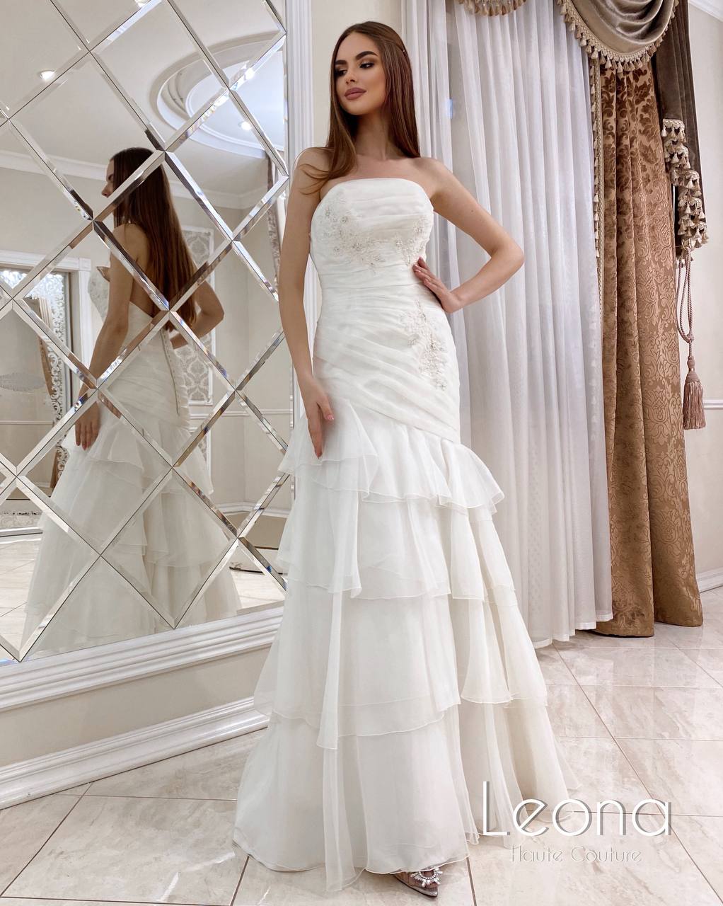 Легкість у кожному кроці, ніжність у кожній лінії! Наша дивовижна модель «Leona» з органзи – це втілення елегантності та легкості. Відчуйте легкість руху та чудову гармонію стилю з цією вишуканою сукнею. У вашому образі буде світло і легкість, зробіть свій весільний момент незабутнім.