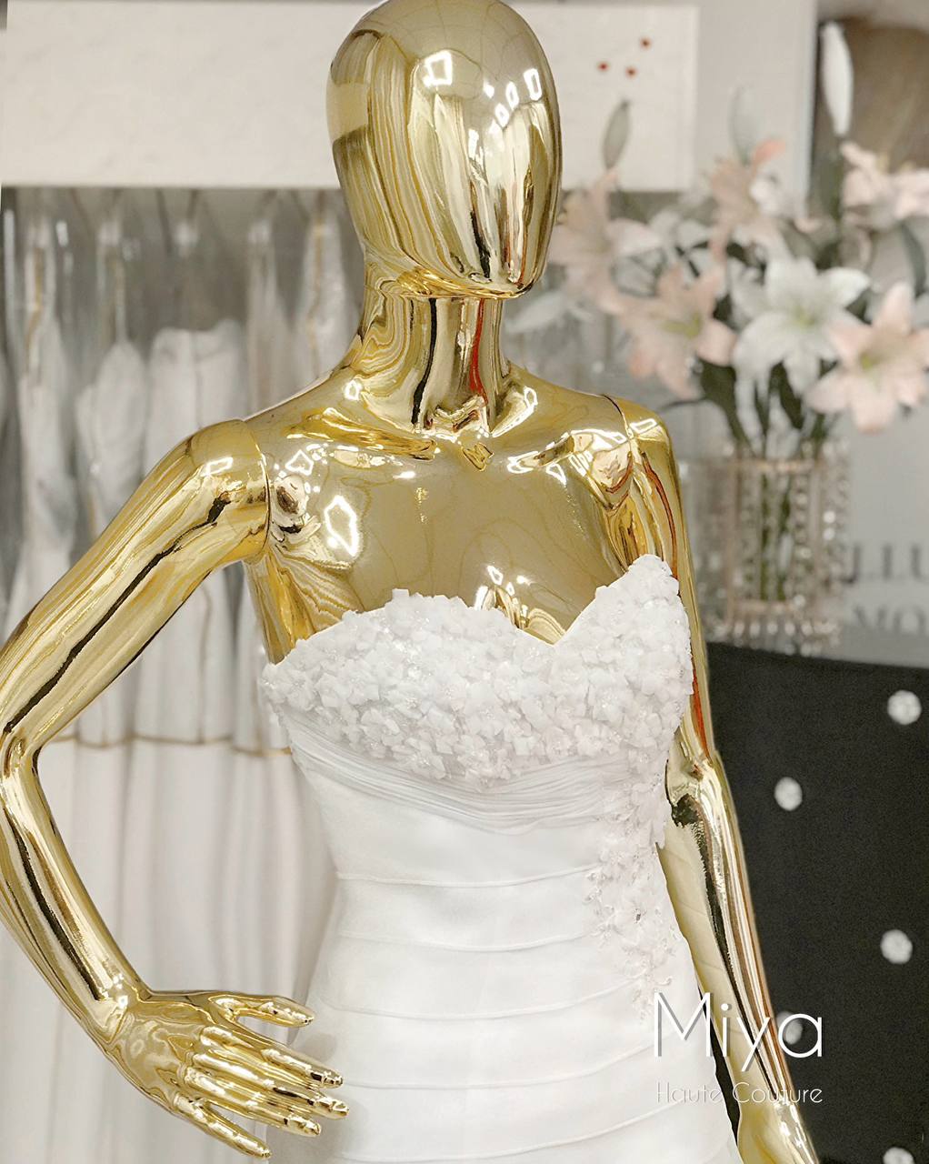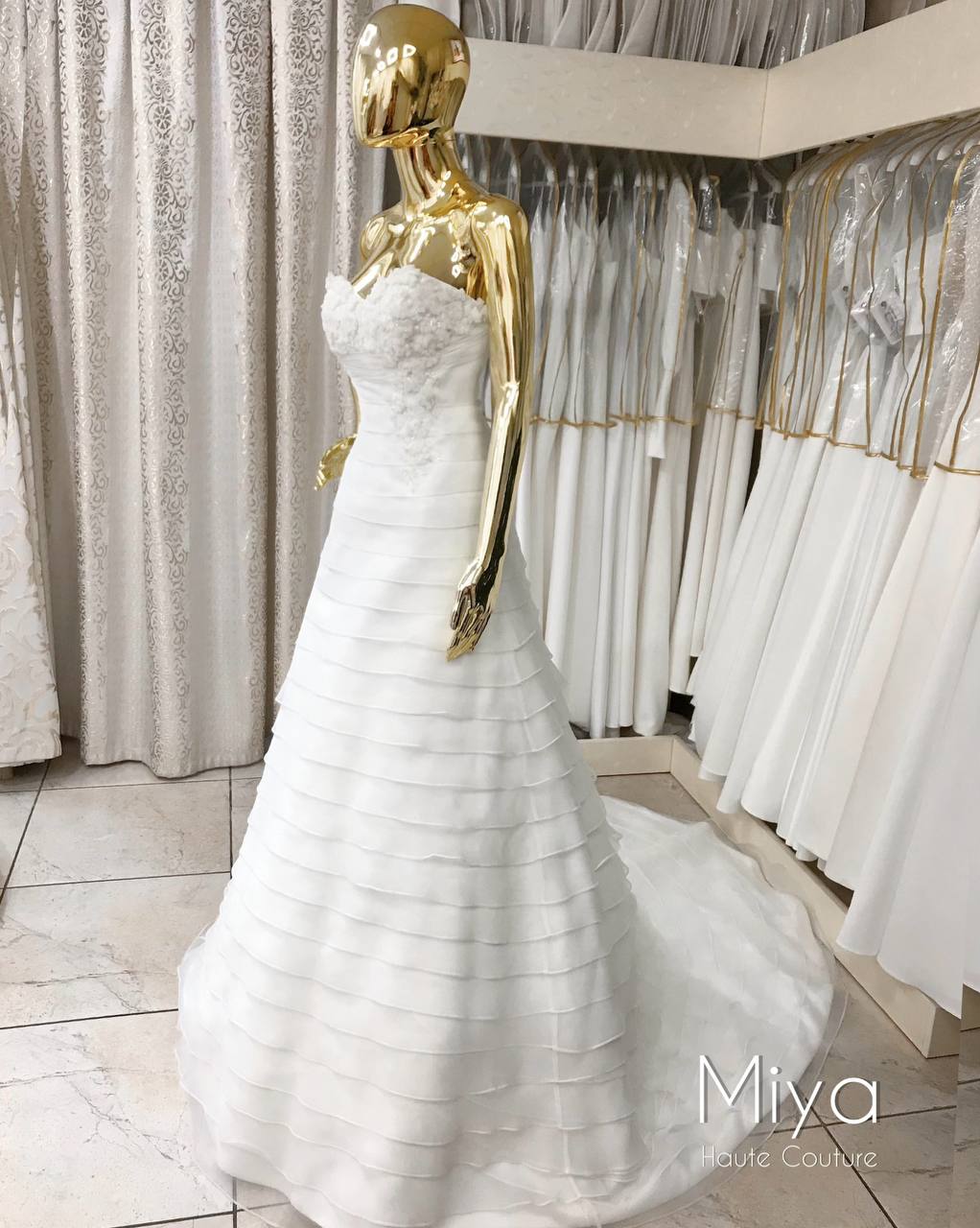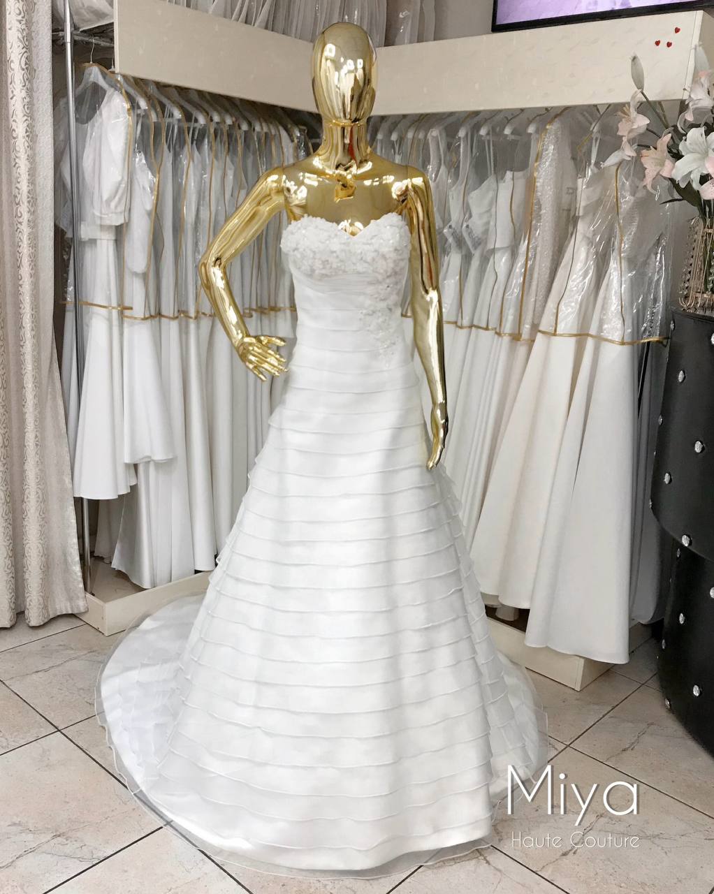 Відкрийте для себе ніжність і оригінальність з неймовірною новинкою «Miya» А-силуету від всесвітньо відомого бренду Madison Collection. Вишуканий дизайн, втілений у тонких смужках органзи, надає образу легкість та повітряність. Це плаття, яке підкреслить вашу витонченість. Давайте разом створимо історію вашого весілля, де кожен момент наповнений ніжністю та стилем.