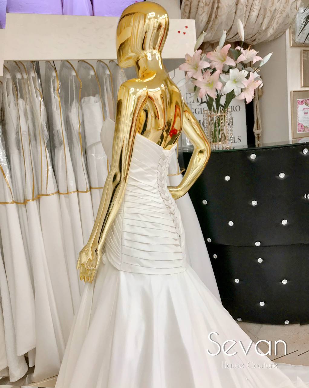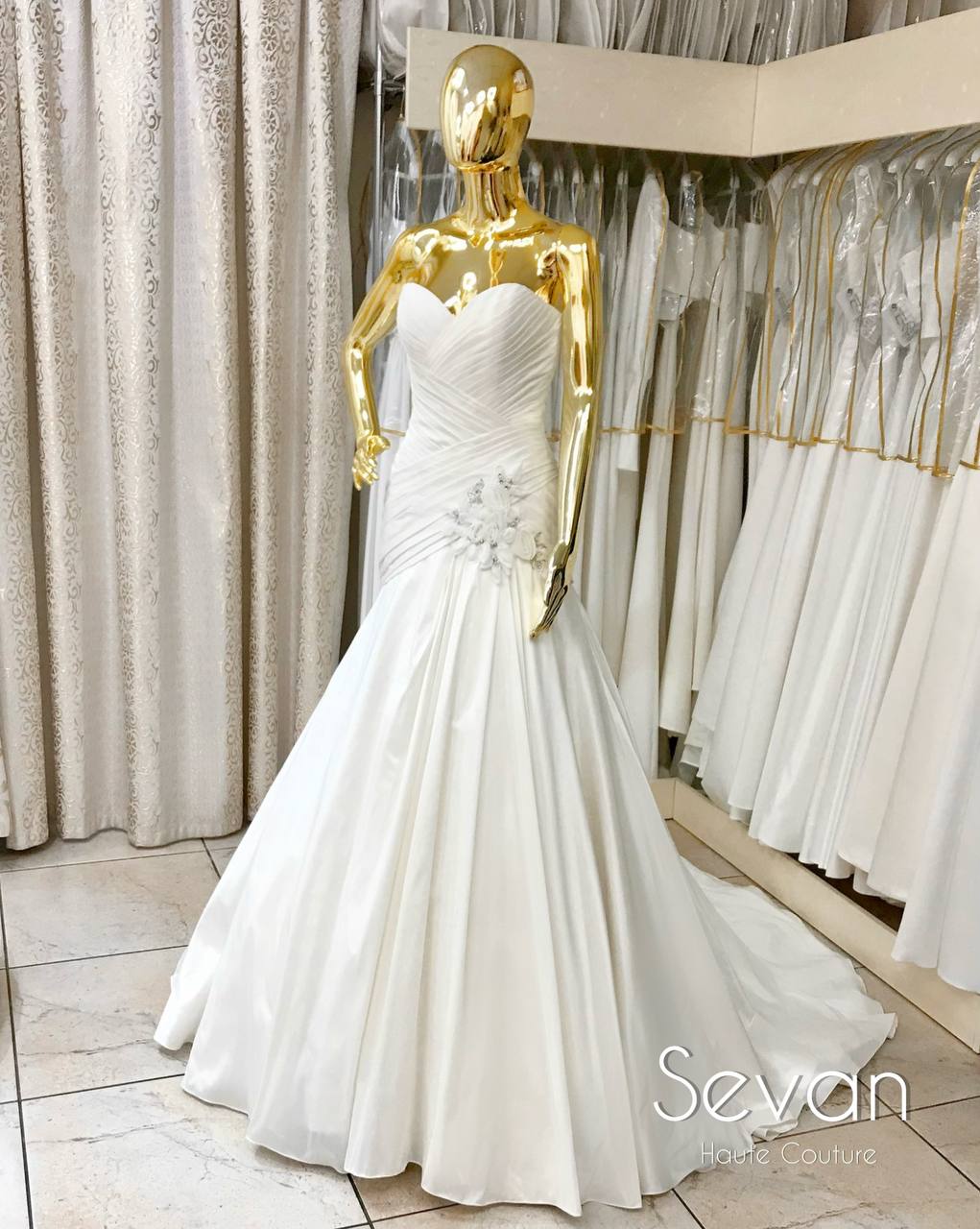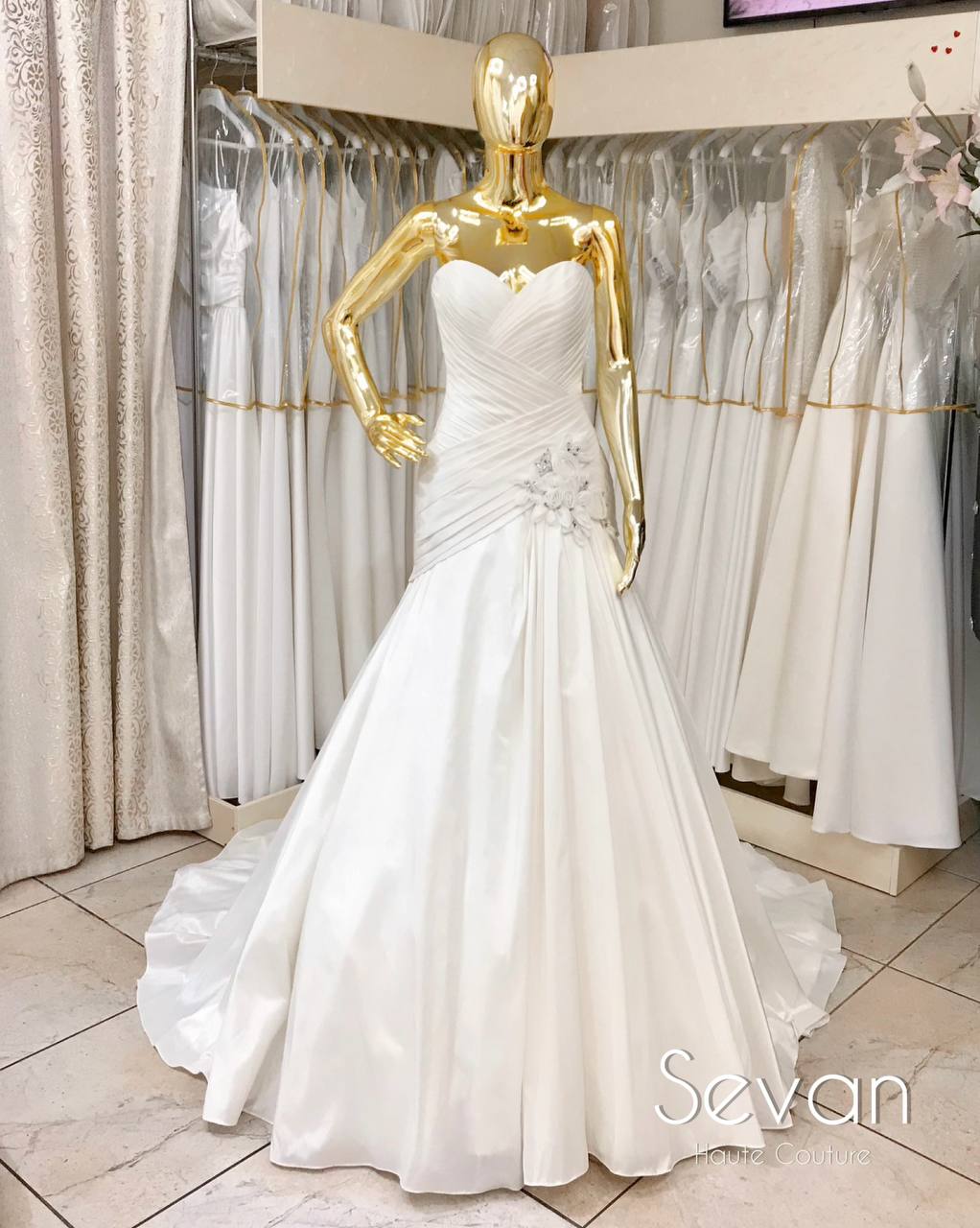 Неймовірна весільна сукня «Sevan» із французького тафтесу підкреслить ідеальні форми вашої фігури.Вишукана елегантність, витончений дизайн, розкішна тканина та неймовірна увага до деталей створюють образ, у якому кожна наречена відчує себе справжньою принцесою.
