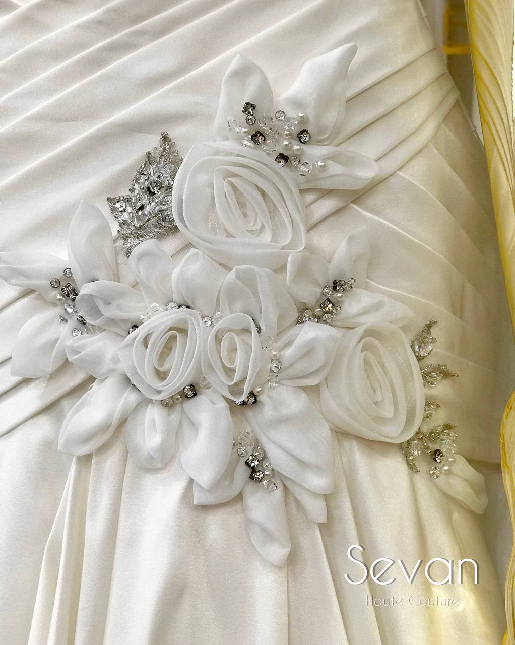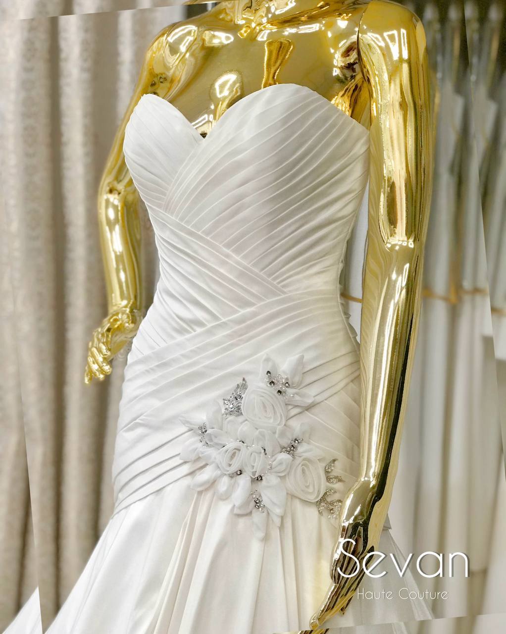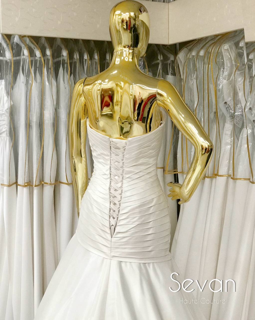 Неймовірна весільна сукня «Sevan» із французького тафтесу підкреслить ідеальні форми вашої фігури.Вишукана елегантність, витончений дизайн, розкішна тканина та неймовірна увага до деталей створюють образ, у якому кожна наречена відчує себе справжньою принцесою.