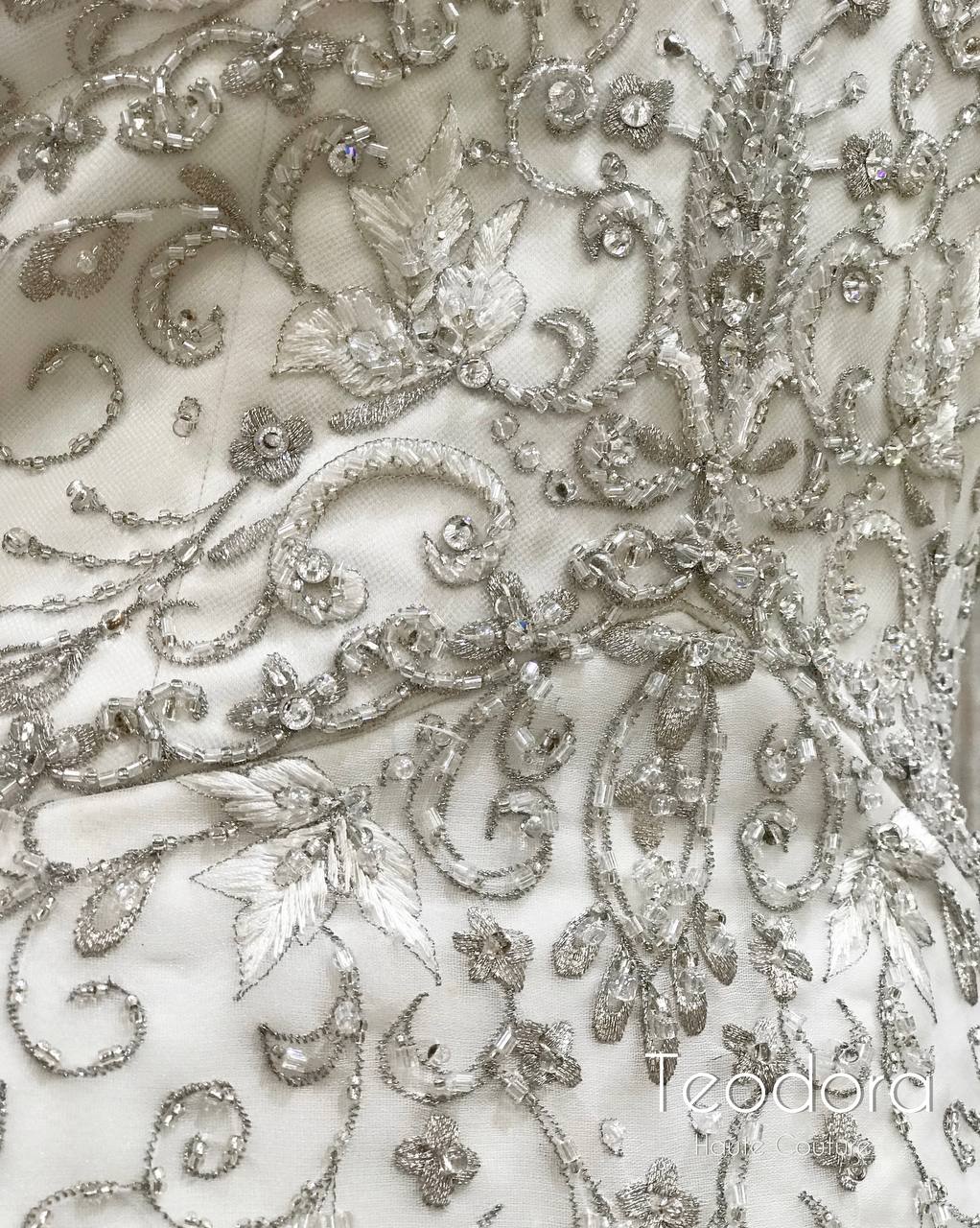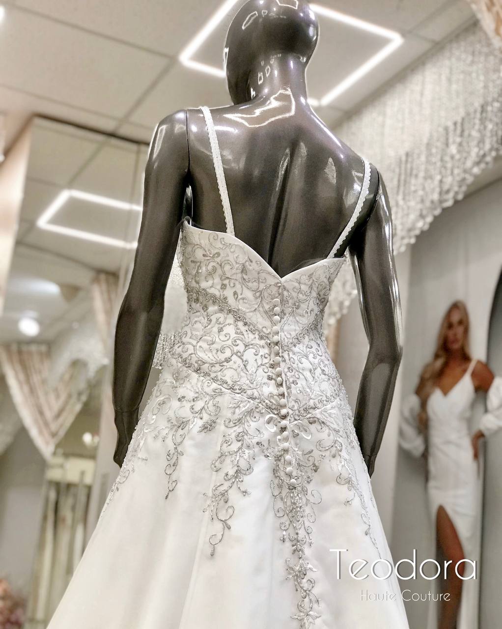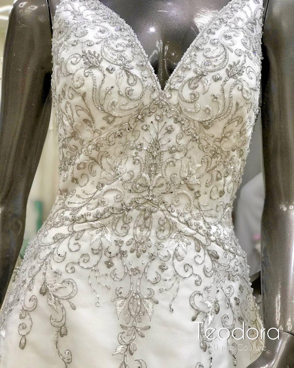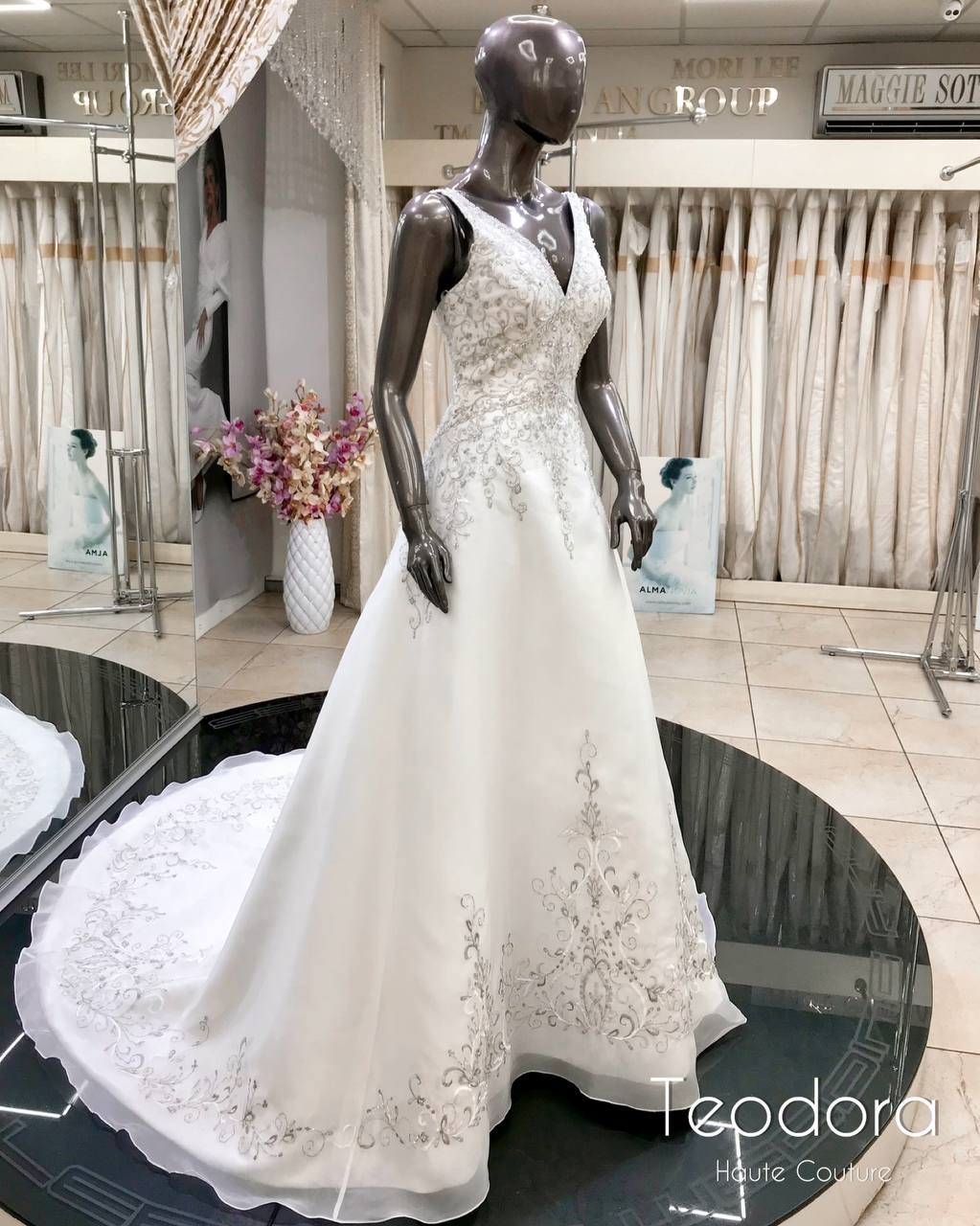 Виняткова пишнота від Mori Lee! Наша розкішна модель Teodora прямого силуету зі шлейфом - це втілення романтики та вишуканості. Фактурна венеціанська вишивка, виконана платиновою ниткою, додає елегантності та чаклунства кожній деталі. Ця сукня створена для наречених, які цінують витонченість та стиль. «Mori Lee» – гарант ексклюзивності та елегантності на вашому шляху до вівтаря.