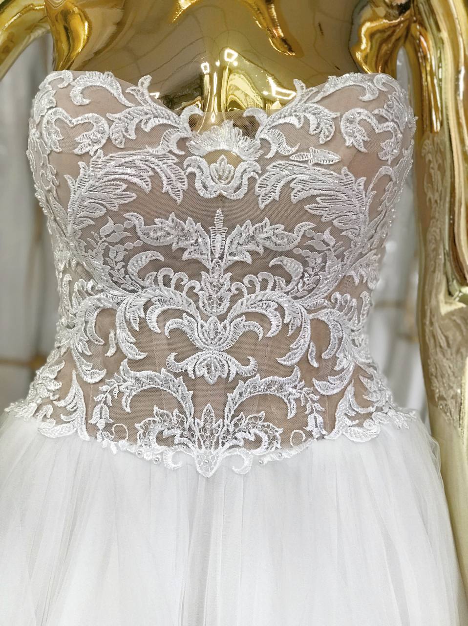 Ваша мрія про чарівний весільний образ стає реальністю! Ексклюзивна модель «Alana» - це втілення елегантності та розкоші. Мереживний корсет підкреслює вишуканість, а розкішна спідниця, прикрашена мереживом "Рішельє", створює чудовий казковий образ. Чарівність, стиль і неповторність - все в одній сукні. Відчуйте себе справжньою принцесою.