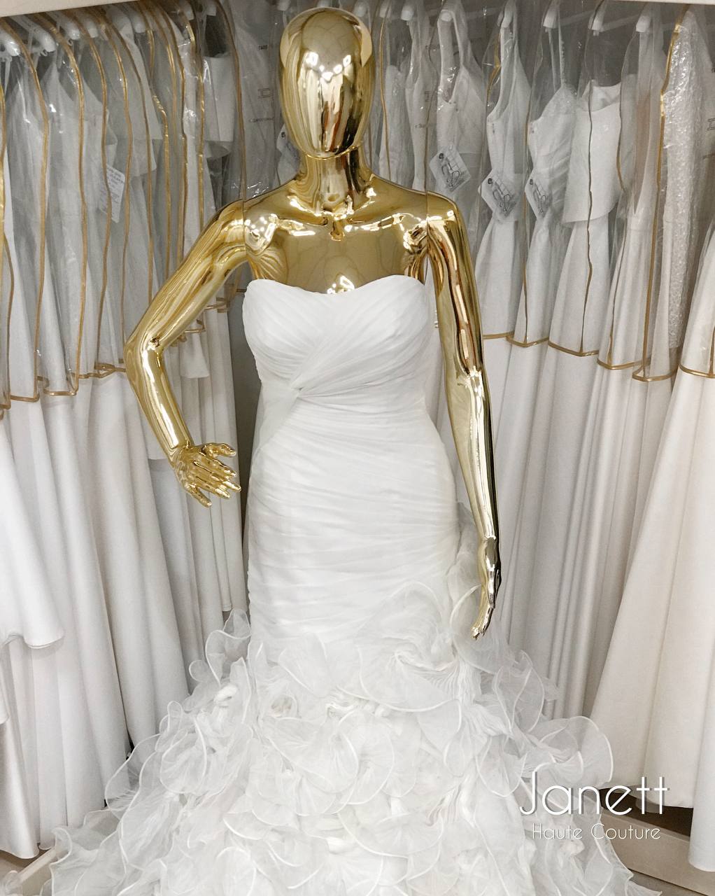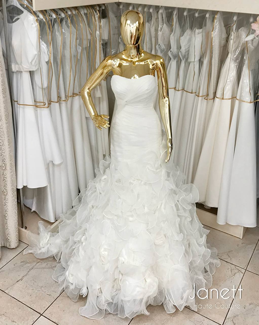 Силует весільной сукні «рибка» знаходить розкішну урочистість завдяки особливому крою спідниці та корсету вкритому вишивкою з квітів та бісеру. Якщо ти хочеш на своєму весіллі виглядати чарівно то ця сукня саме для тебе.