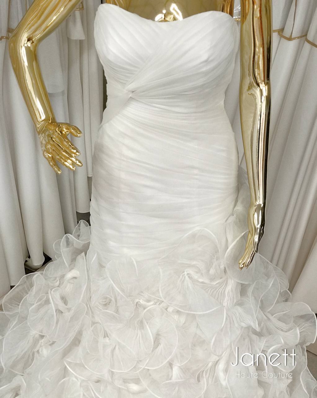 Втілення розкоші та елегантності! Наша весільна сукня облягаючого силуету створена для тих, хто цінує вишуканість. Розкішна спідниця, прикрашена плісованими воланами з органзи, чудово імітує пелюстки квітки, додаючи образу ніжність та жіночність. У цьому вбранні ви будете втіленням вишуканого смаку та елегантної краси, підкреслюючи свою витонченість у кожному русі.