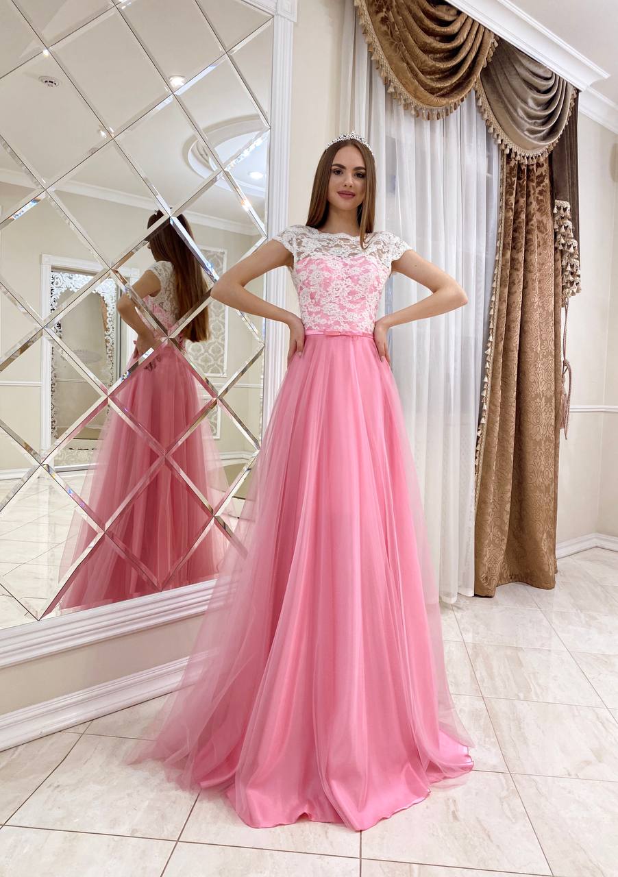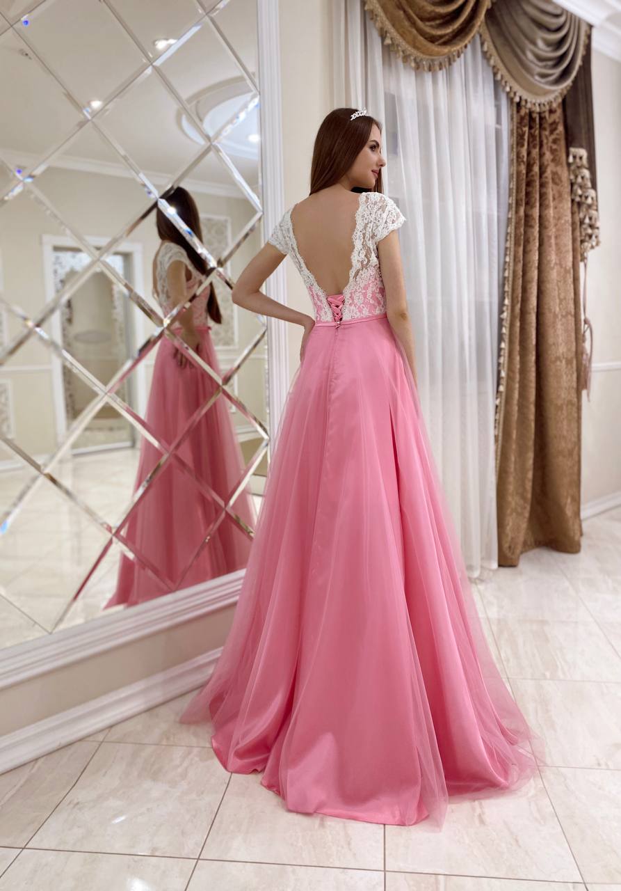 Що може виглядати більш жіночно, ніж вечірня сукня з мережива? Мереживний корсет - незмінний тренд в світі моди. Якщо ти хочеш виглядати ніжно, жіночно і нарядно одночасно, то ця сукня рожевого відтінку з мереживним ліфом, що елегантно переходить на легку спідницю зі шлейфом, саме для Тебе!
