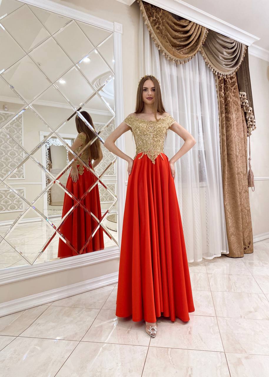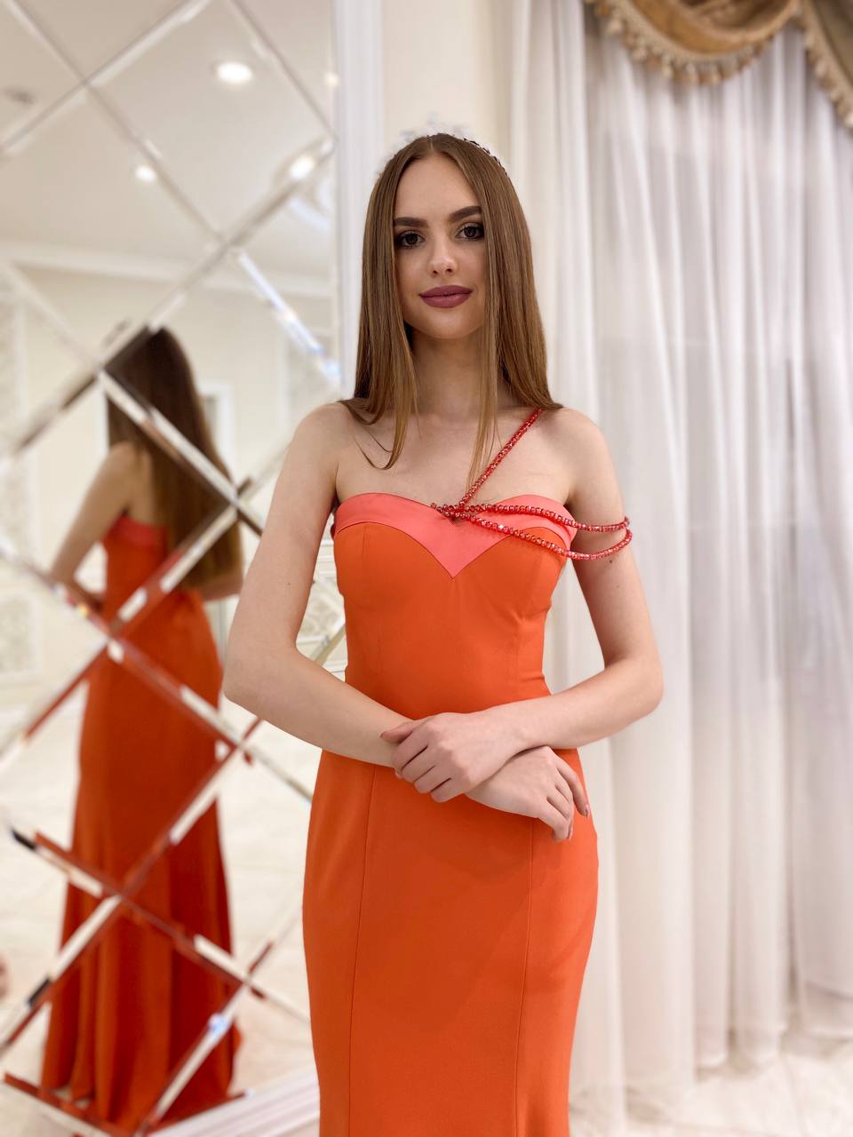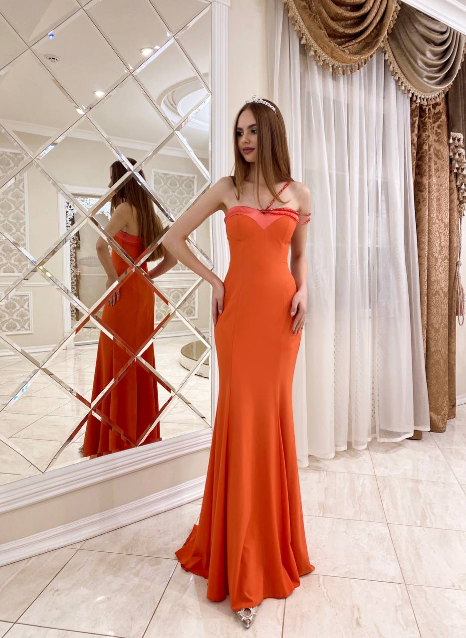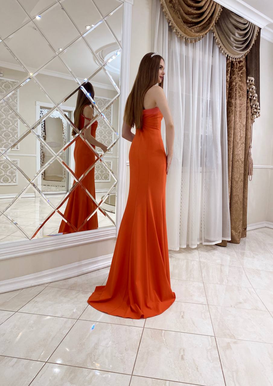 Неймовірна вечірня сукня вогняного відтінку з облягаючим верхом та атласною спідницею для справжньої феї. Наша сукня «Venetian» вже чекає на свою вишукану та приголомшливу обраницю.