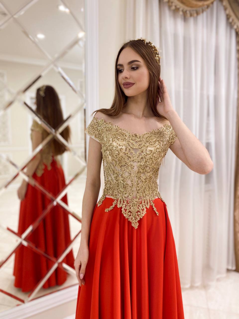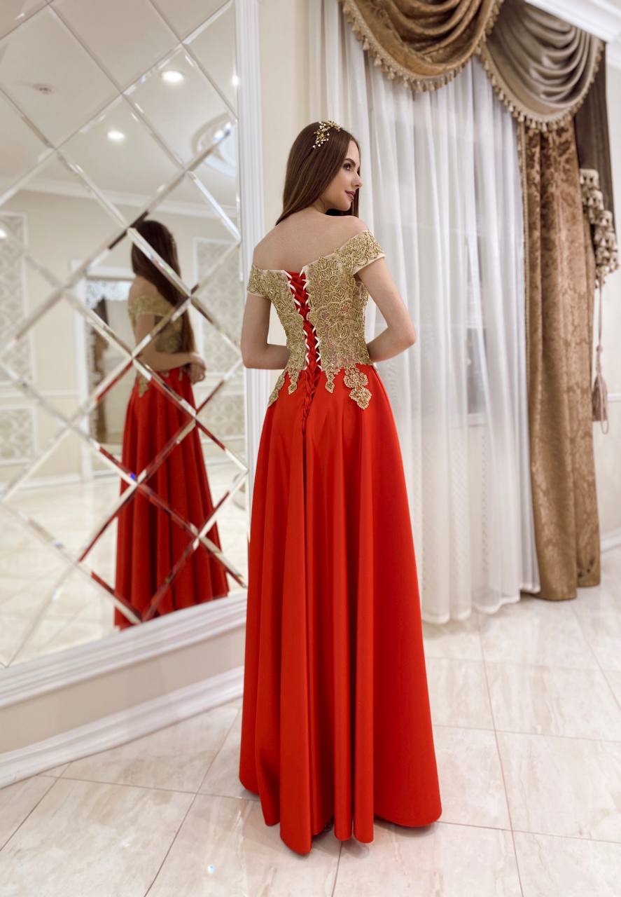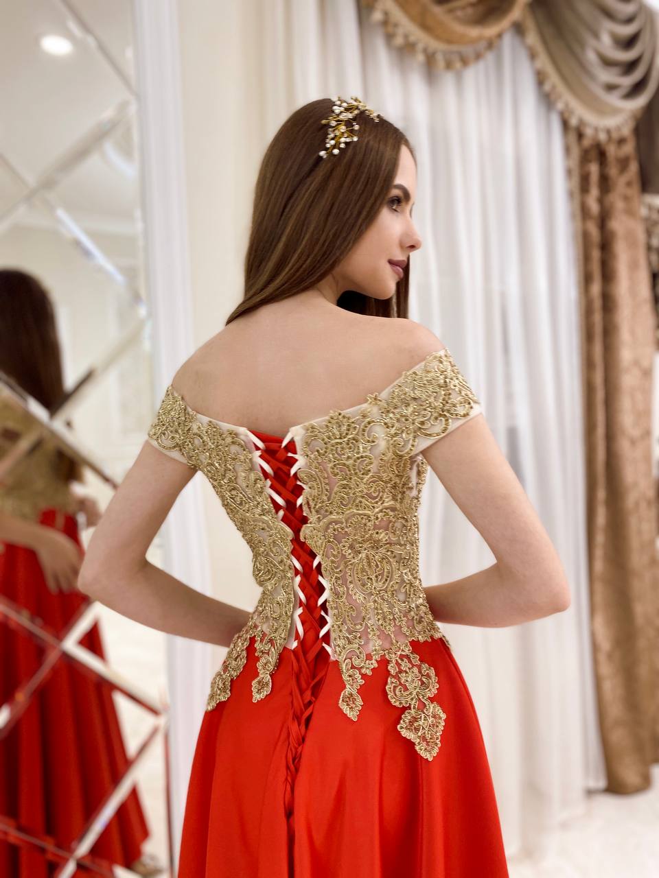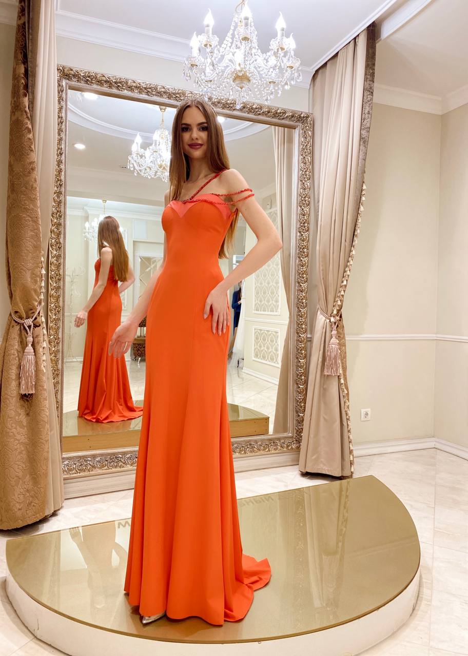 Неймовірна вечірня сукня вогняного відтінку з облягаючим верхом та атласною спідницею для справжньої феї. Наша сукня «Venetian» вже чекає на свою вишукану та приголомшливу обраницю.