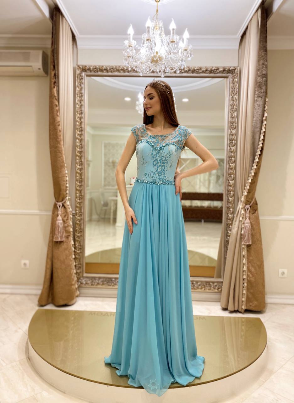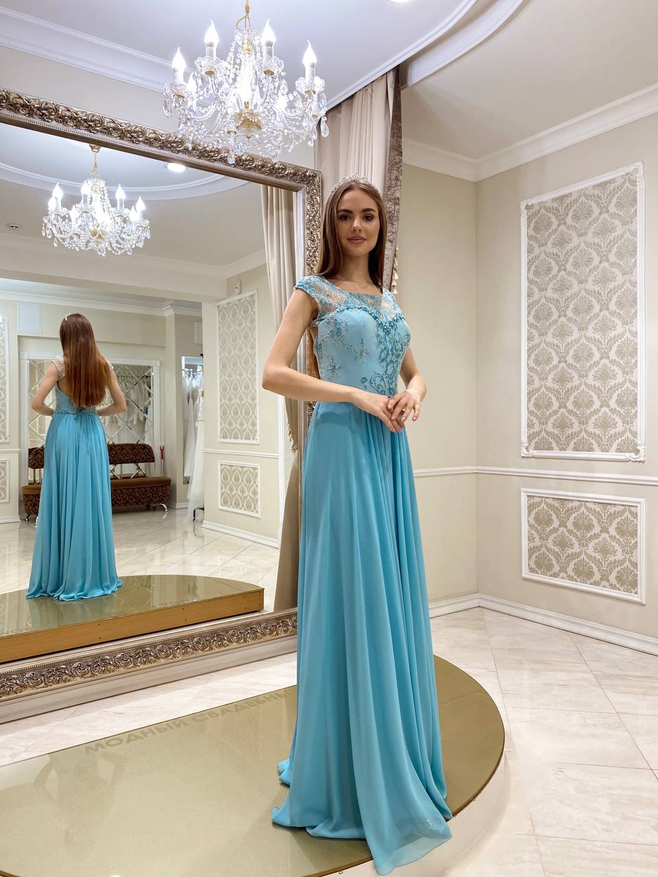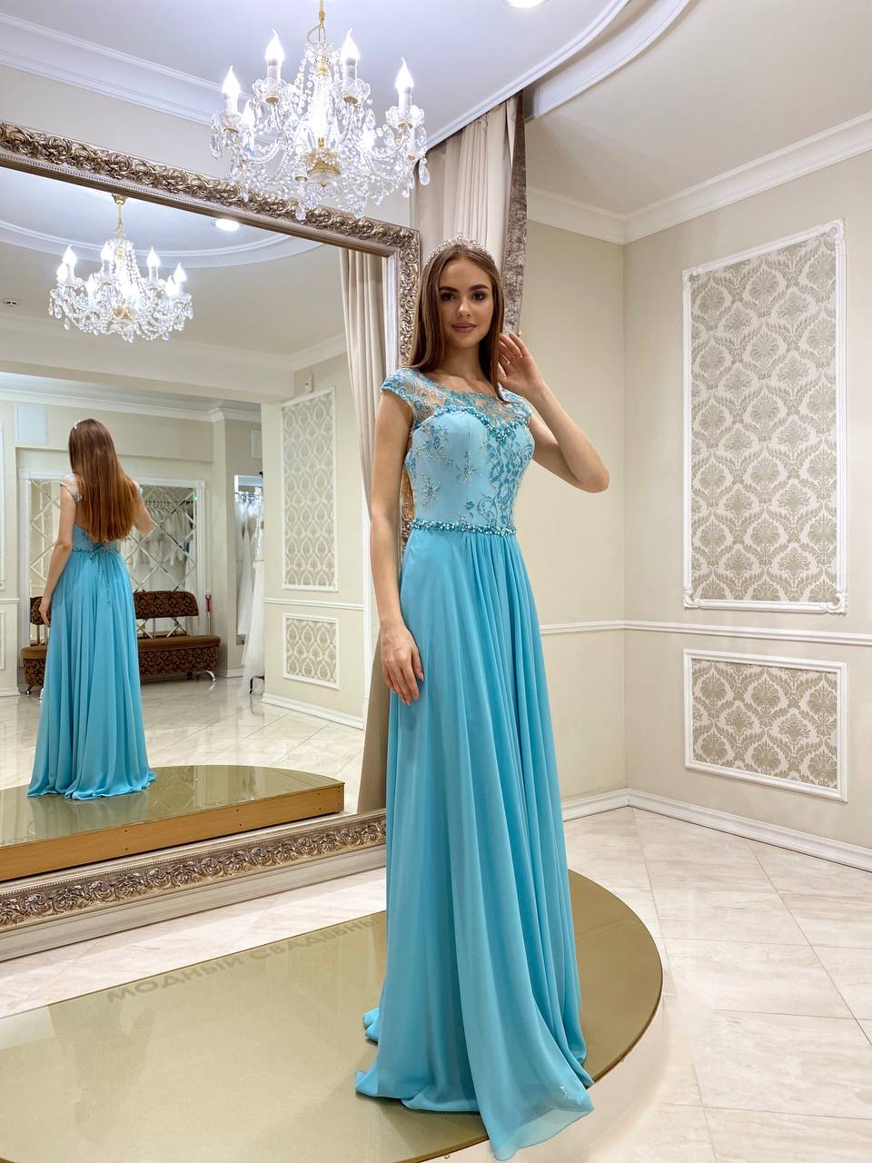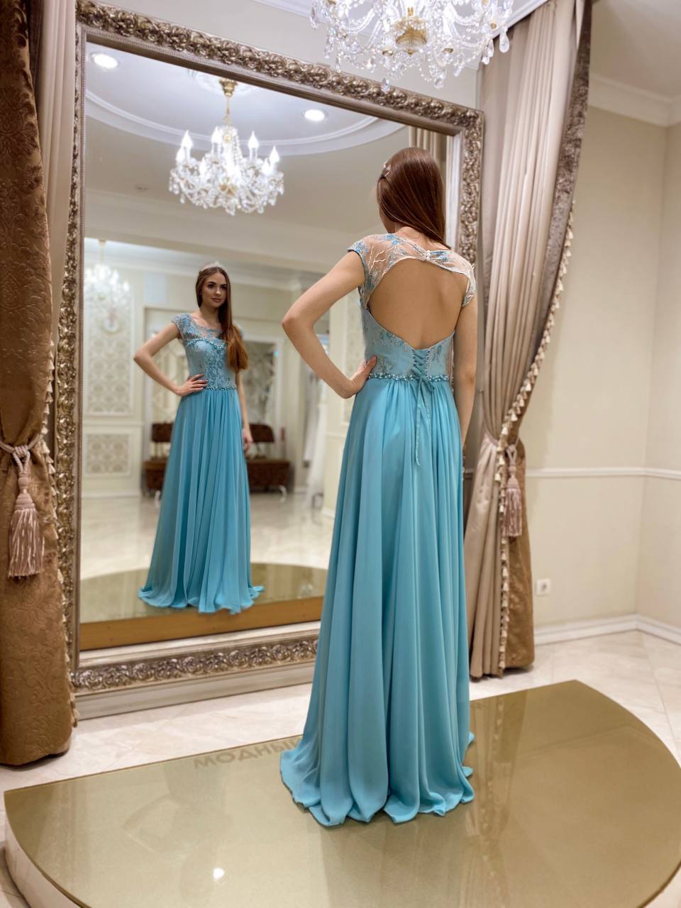 Неначе морська хвиля, саме така думка приходить коли дивишся на модель «Doris» Оголена спина та прикрашений камінням топ створюють вигляд « морської піни» а блакитна спідниця нагадує про тепле літнє море.