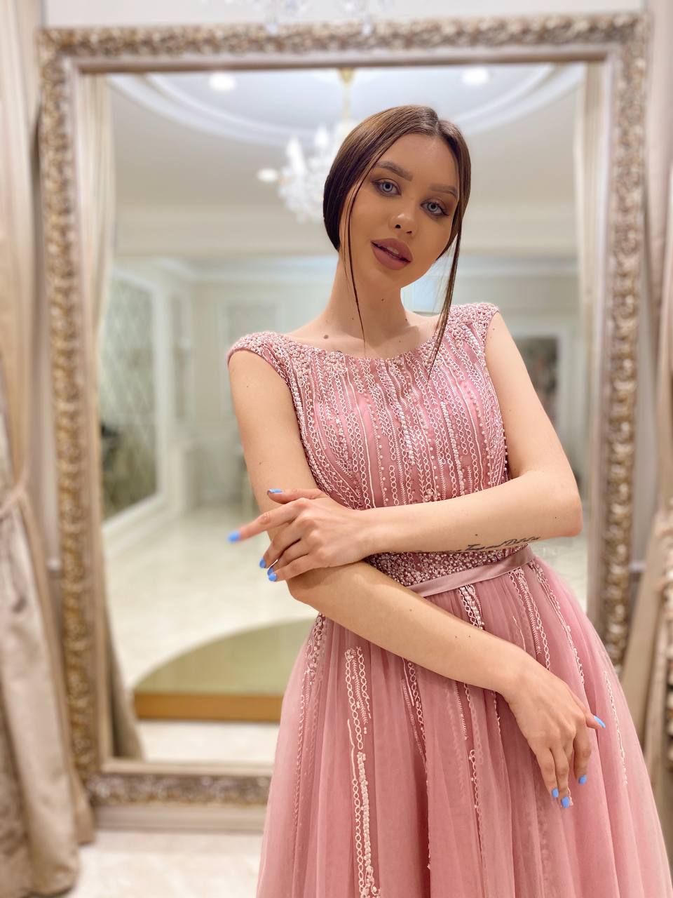Сукню «Suzy Pink» з легкістю можна назвати універсальною. Вони підійде, як і для урочистого образу, так і для повсякденного. Ця сукня підкреслить вашу вишуканість, та зробить образ більш романтичним. Привабливий ніжний пудровий відтінок та розсип перлин по корсету роблять сукню гармонійною, а легка спідниця-міді трендовую та неперевершеною.