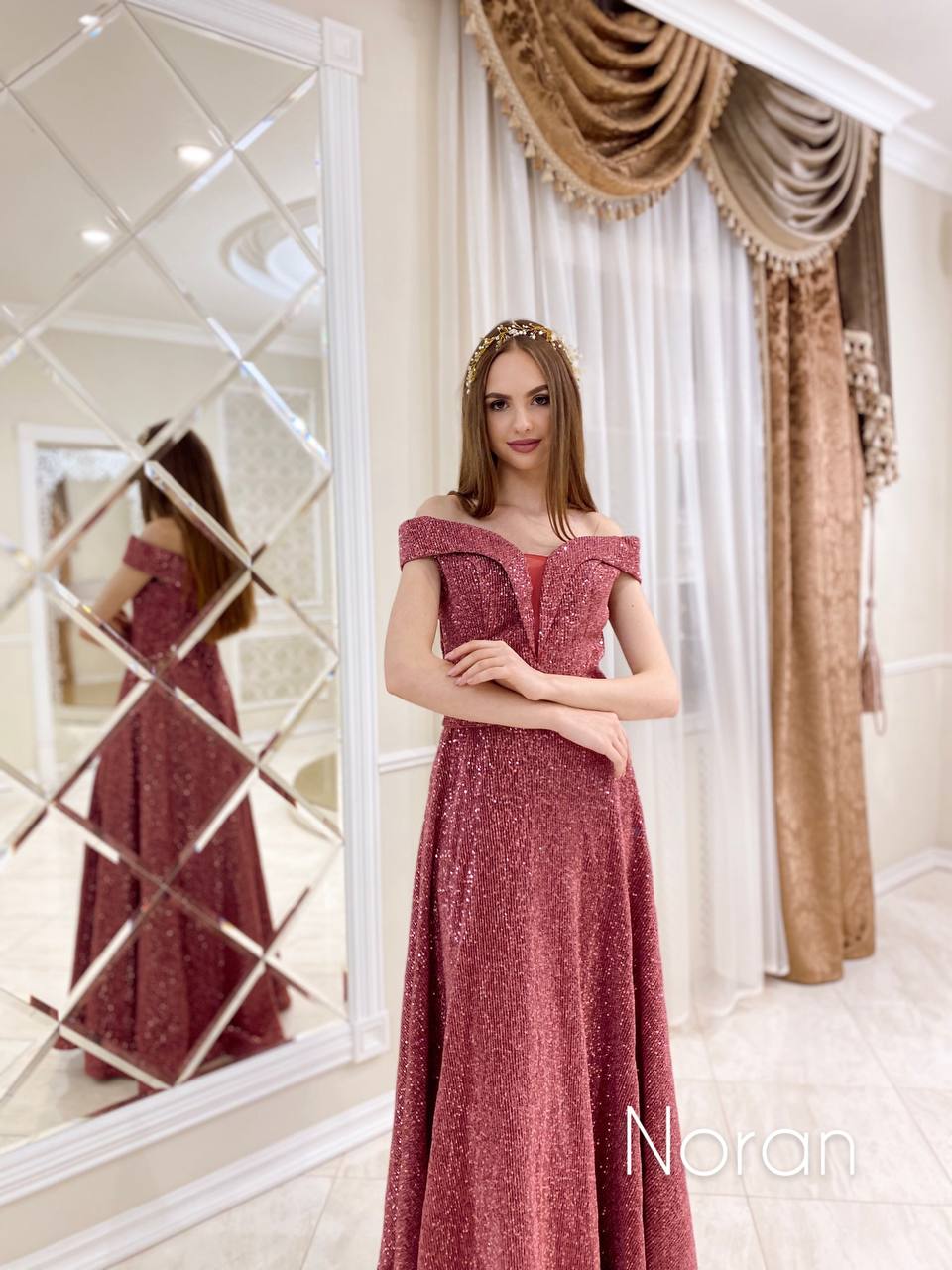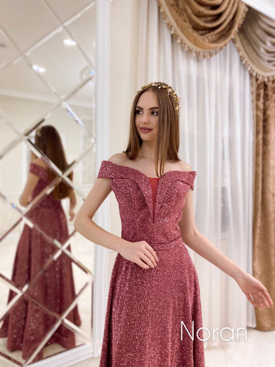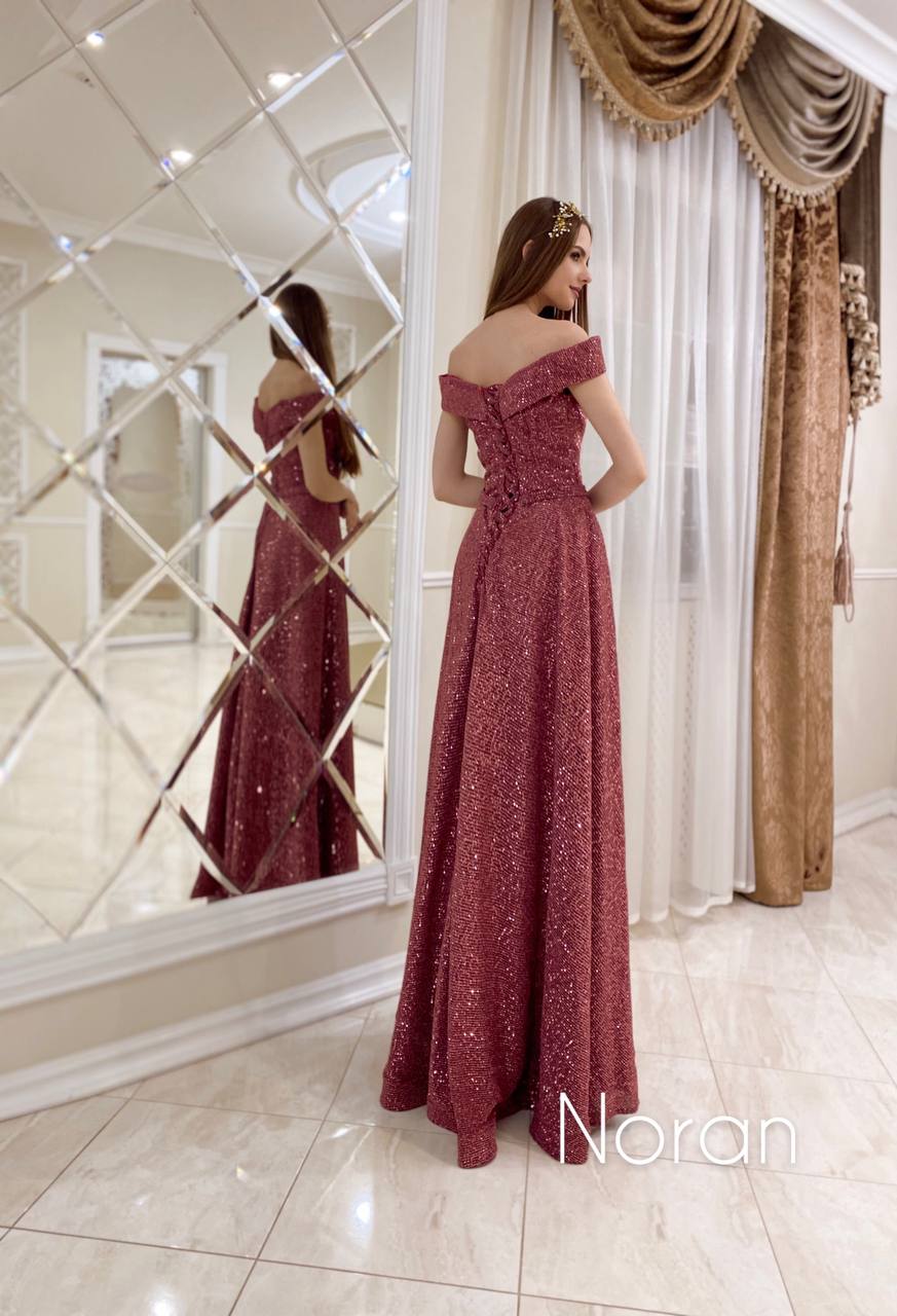 Дивовижна сукня, що була, ніби то, виготовлена для казкової принцеси. Яскраво бордова тканина прикрашена сяючими паєтками а топ бережно відкриває тендітні плечі не додаючи жодної відвертості.«Noran» - створена для ніжної, дівочої натури.