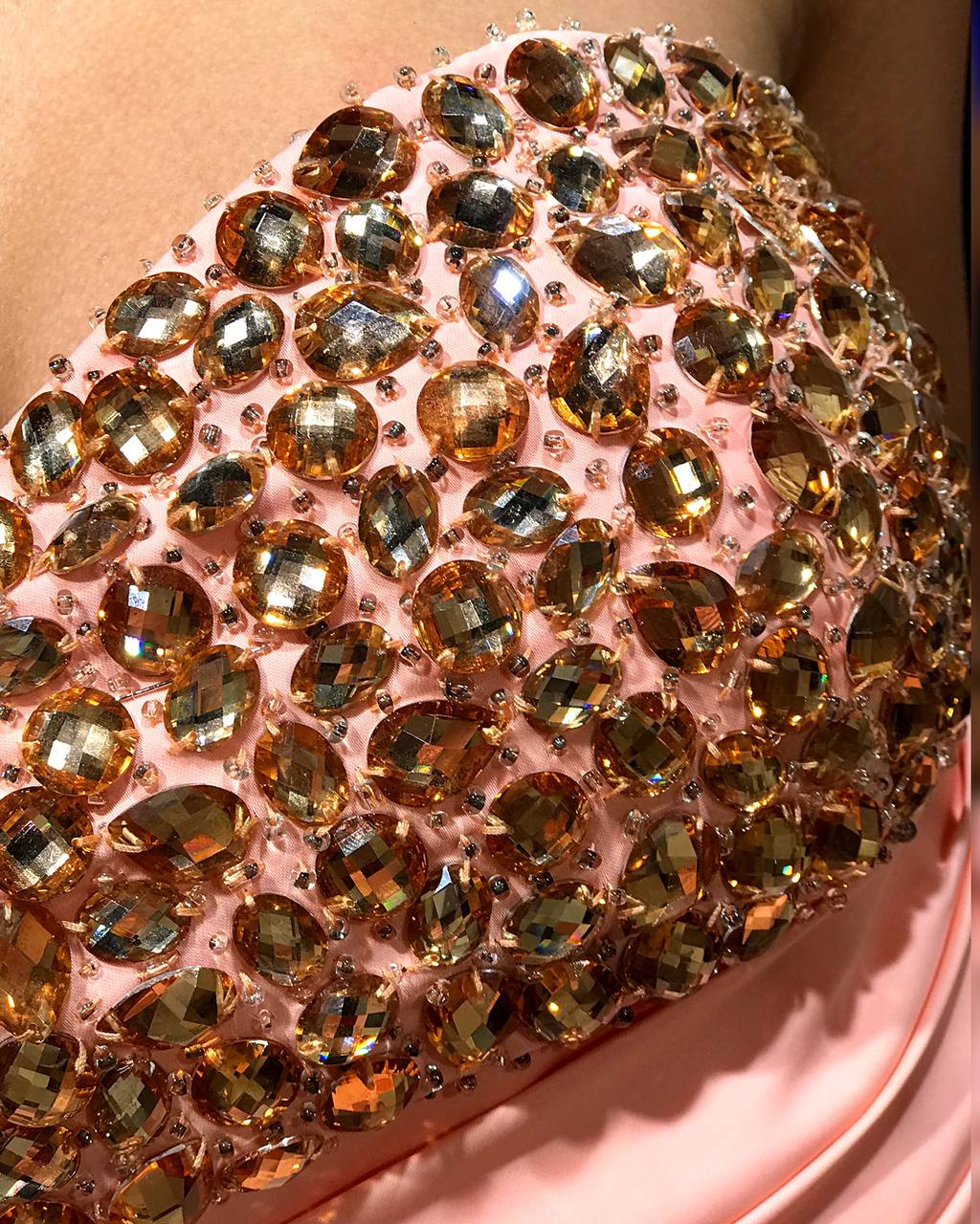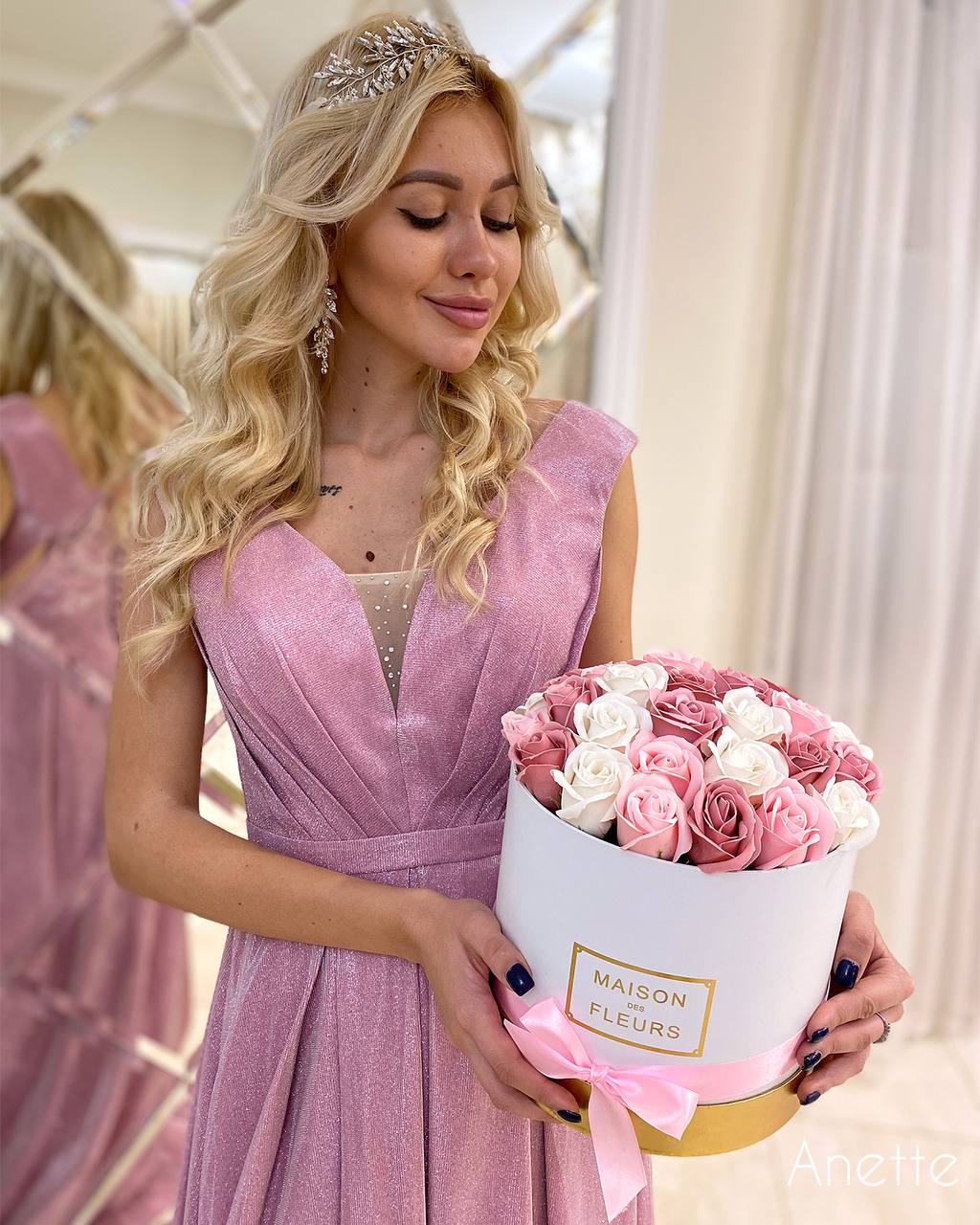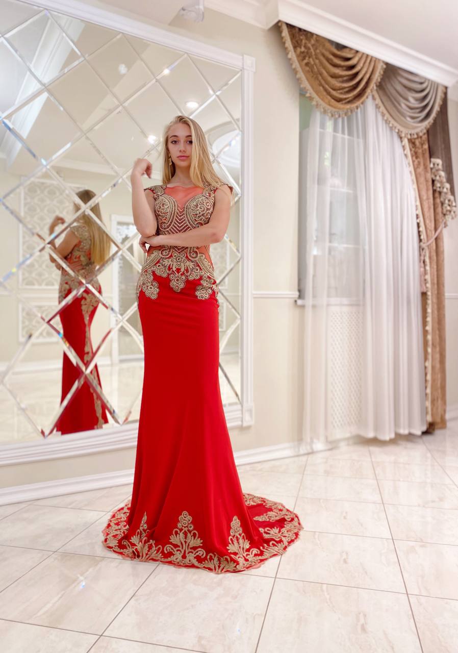 Дивовижна сукня, що була, ніби то, виготовлена для казкової принцеси. Яскраво бордова тканина прикрашена сяючими паєтками а топ бережно відкриває тендітні плечі не додаючи жодної відвертості.«Noran» - створена для ніжної, дівочої натури.