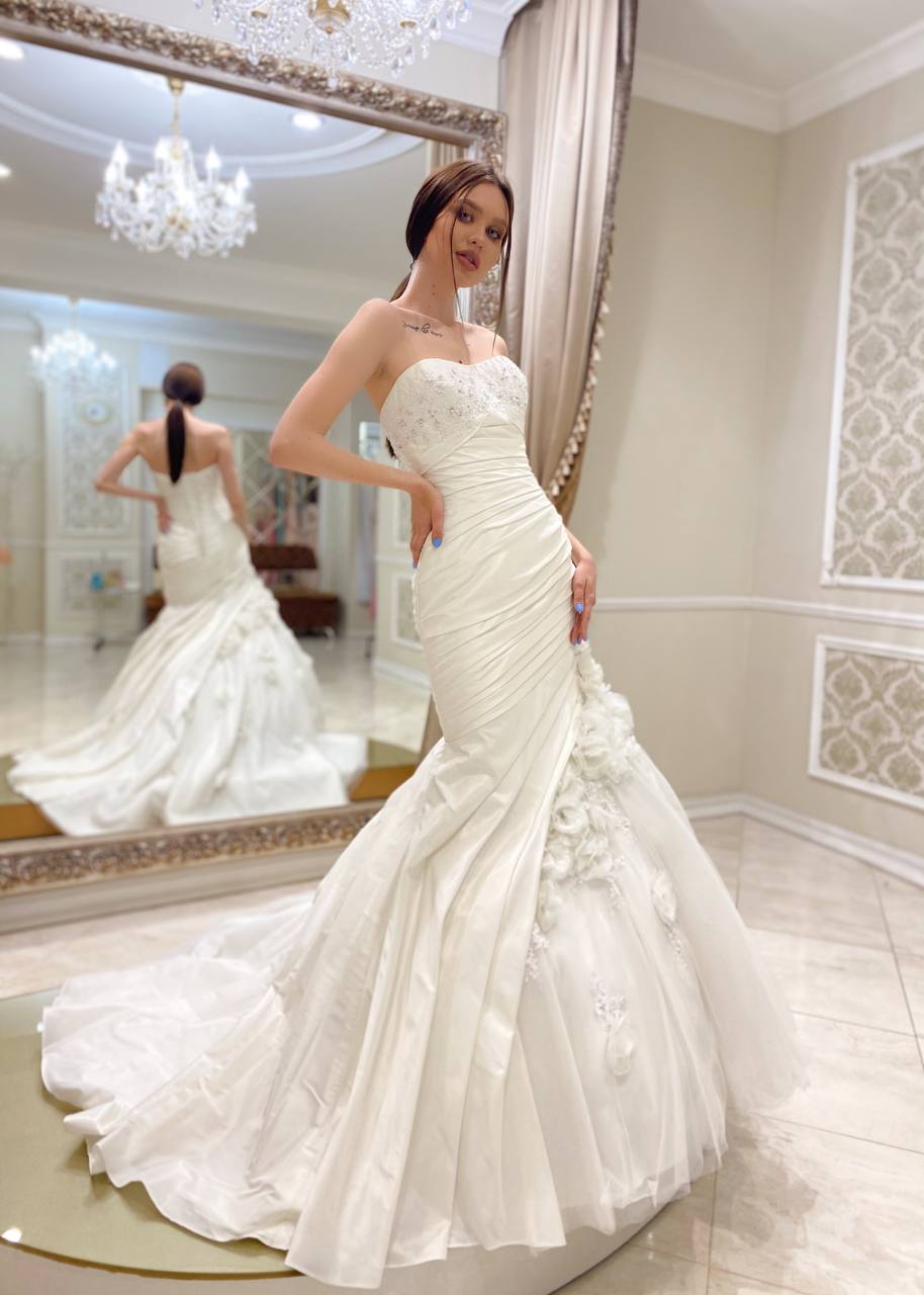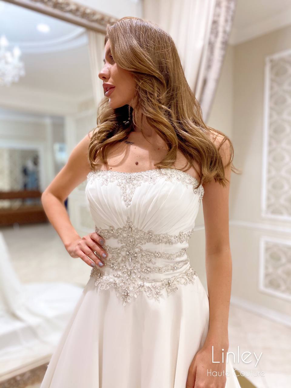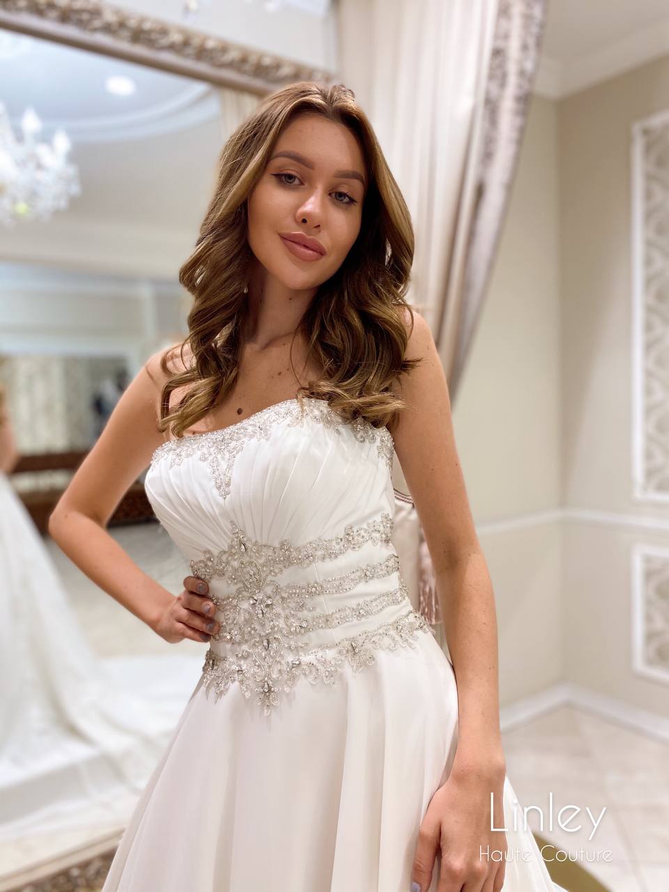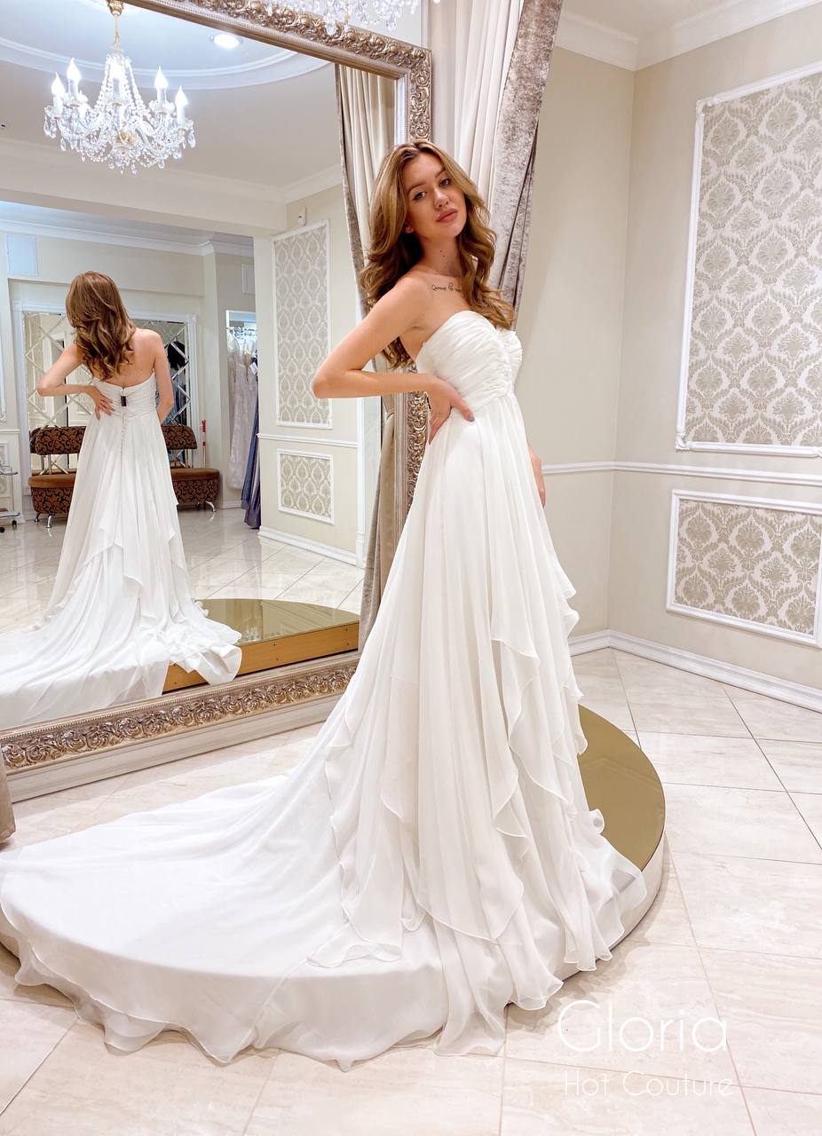 Гармонія стилю та свіжості! Модель Viva з елегантною асиметрією на одному плечі надасть неповторну вишуканість. Це ідеальний вибір для тих, хто шукає сучасне та стильне рішення для весільного образу. Відчуйте легкість та витонченість у цьому особливому моменті вашого життя!