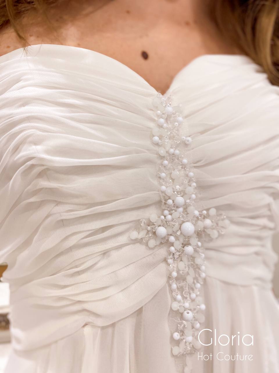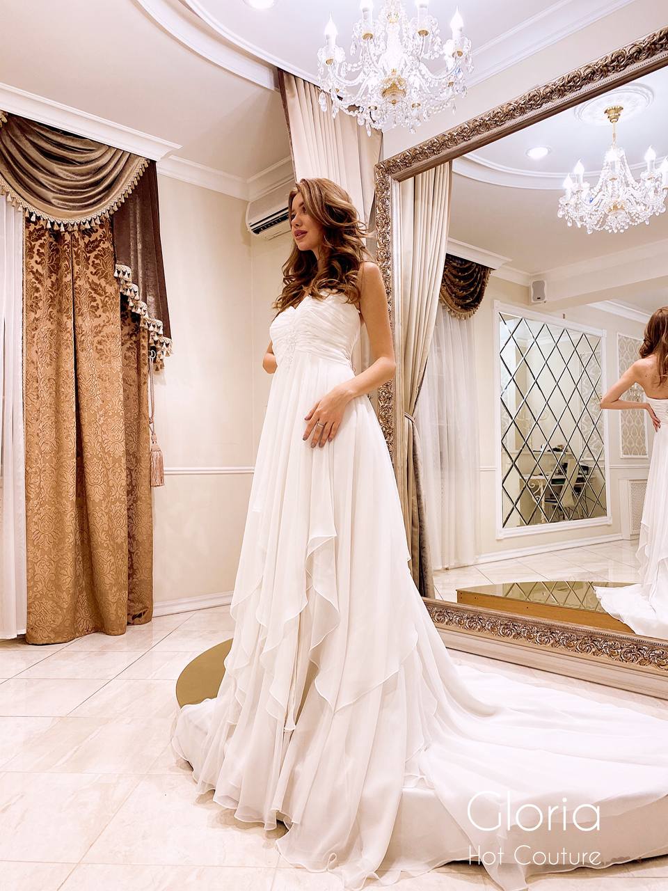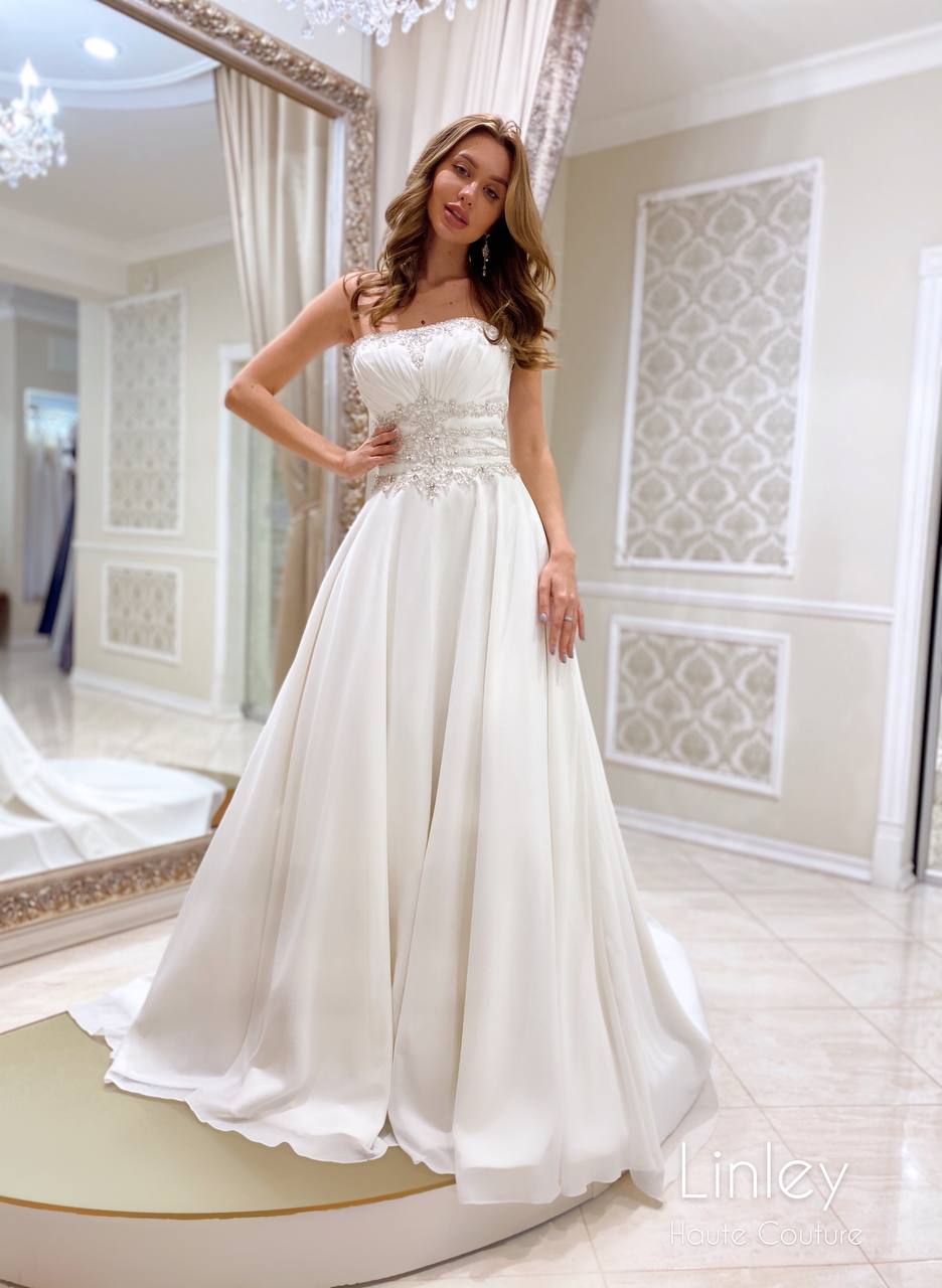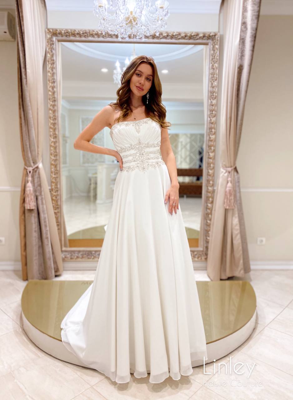 Гармонія стилю та свіжості! Модель Viva з елегантною асиметрією на одному плечі надасть неповторну вишуканість. Це ідеальний вибір для тих, хто шукає сучасне та стильне рішення для весільного образу. Відчуйте легкість та витонченість у цьому особливому моменті вашого життя!