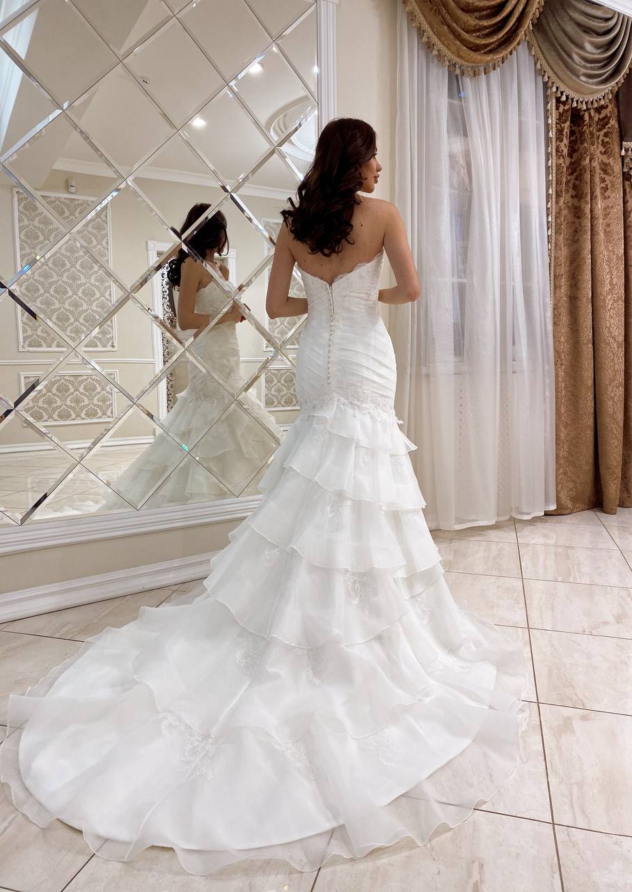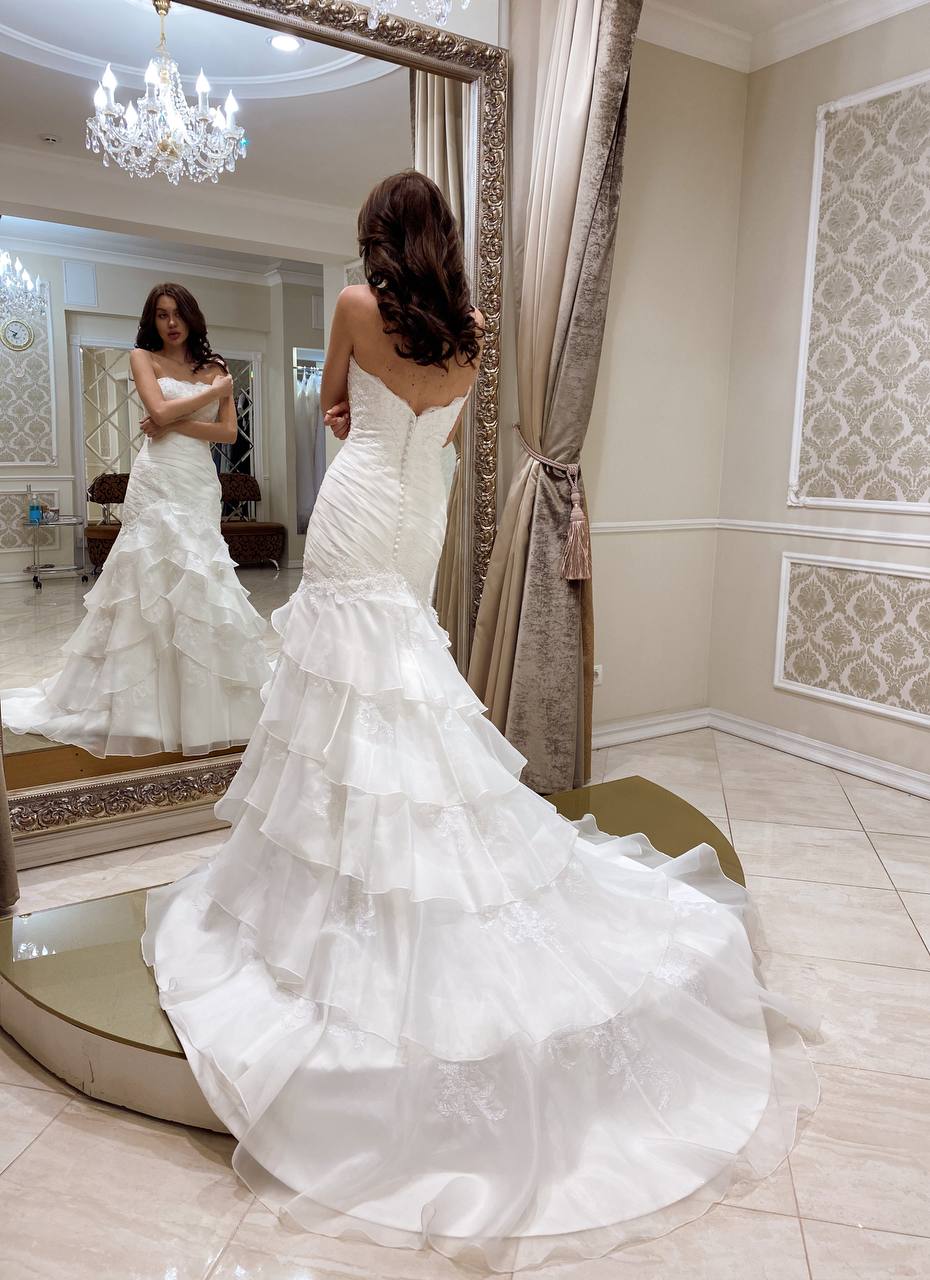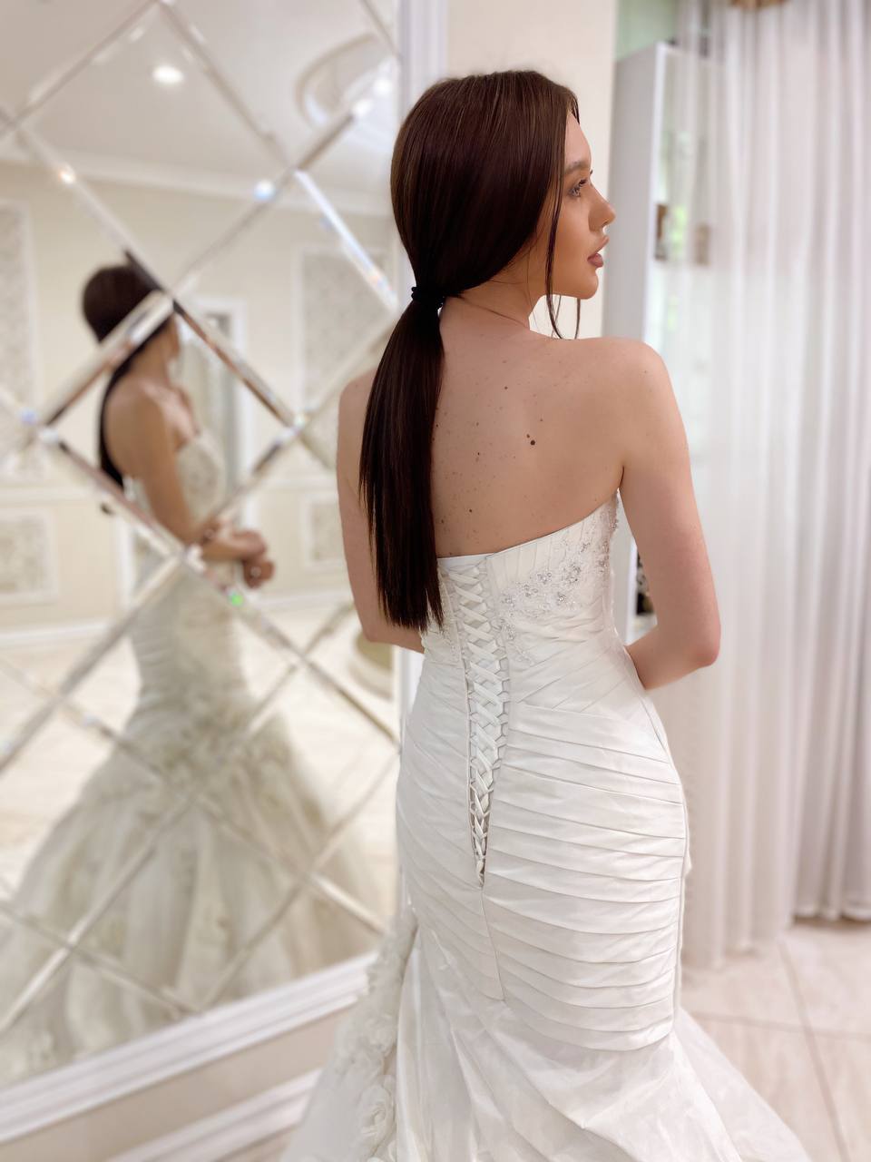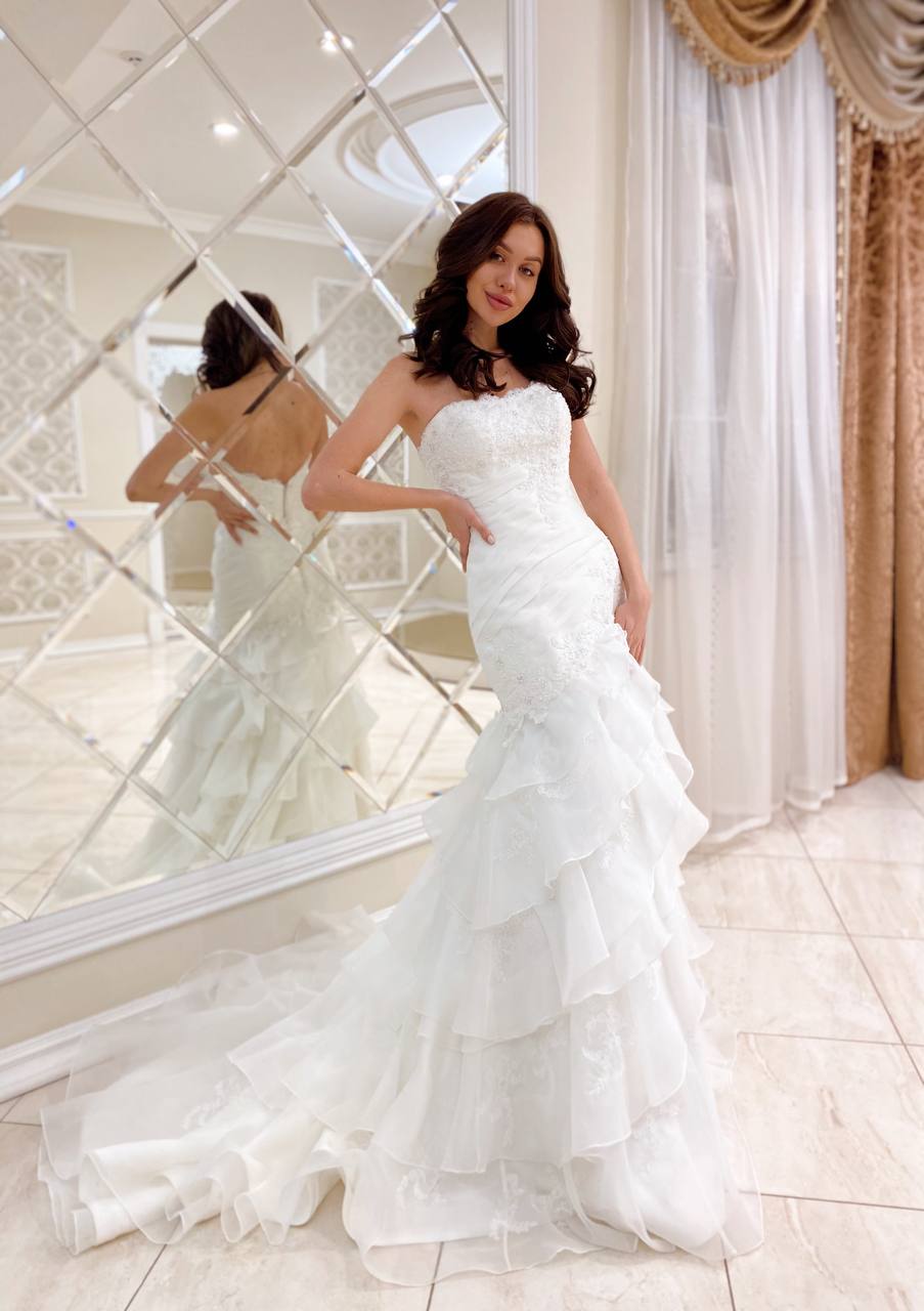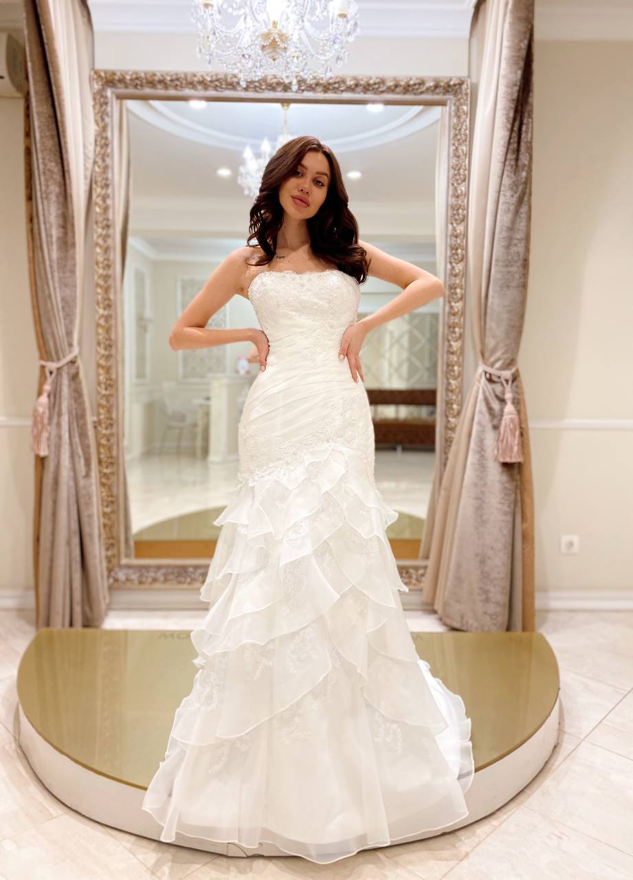 Виняткова грація в кожному кроці! Весільна сукня від Кутюр у стилі "рибка" з фірмовими оборками «пліссе» та ніжними кружевними аплікаціями. Велич в деталях та ніжність в кожній лінії - створять Твій незабутній образ.