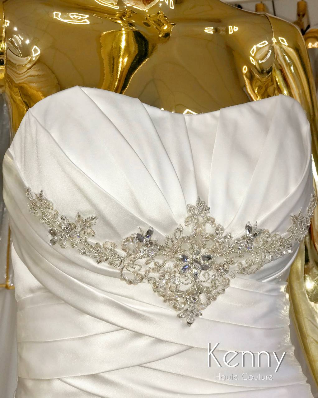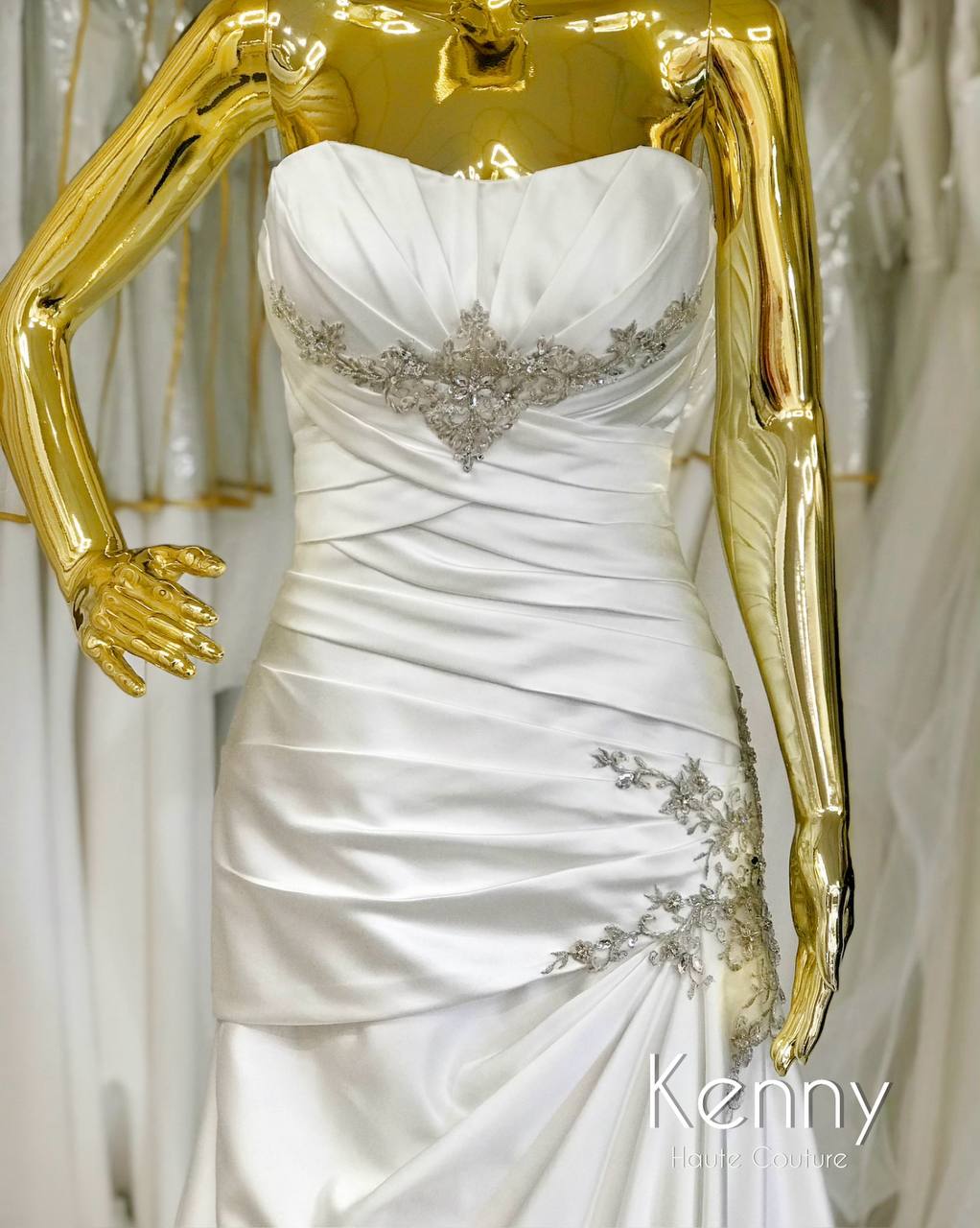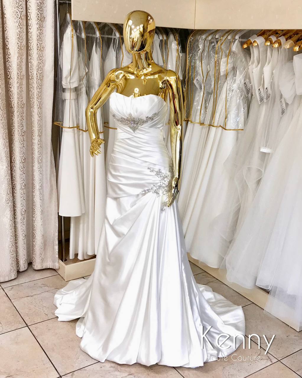 Чарівність у кожному русі! Наша розкішна модель «Kenny» облягаючого силуету з королівського атласу – це втілення елегантності та вишуканості, створене руками Кутюр'є. Фактурні аплікації з вишивкою Swarovski додають неймовірне сяйво, підкреслюючи вигини фігури. І ми повністю впевнені, що його обраниця стане зразком жіночності у свій особливий день.