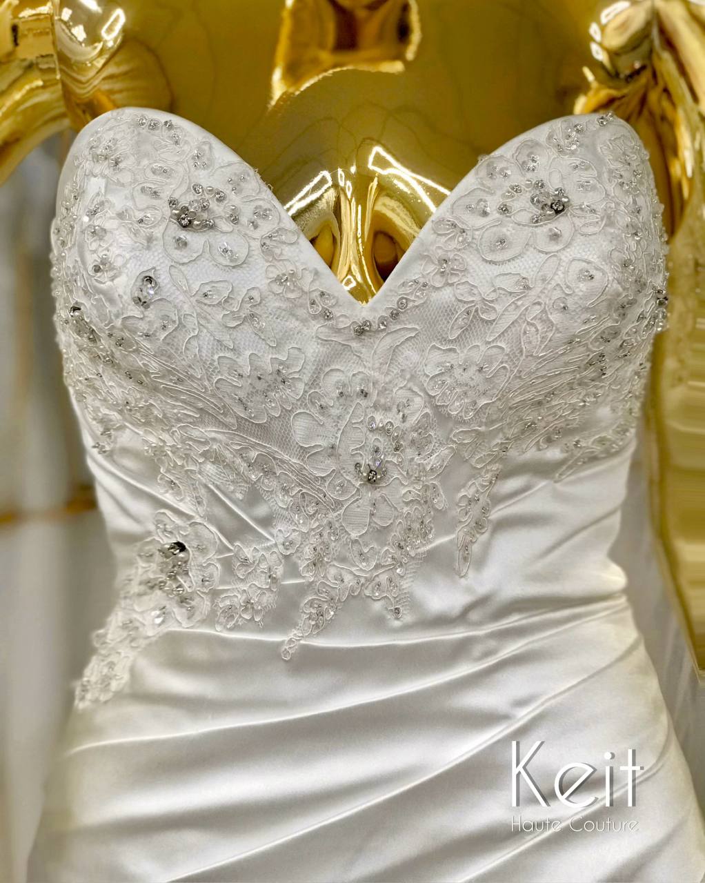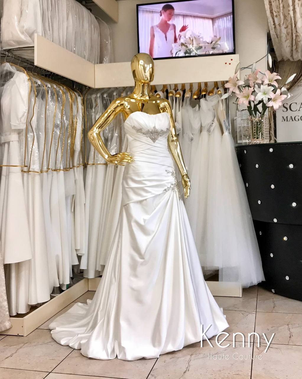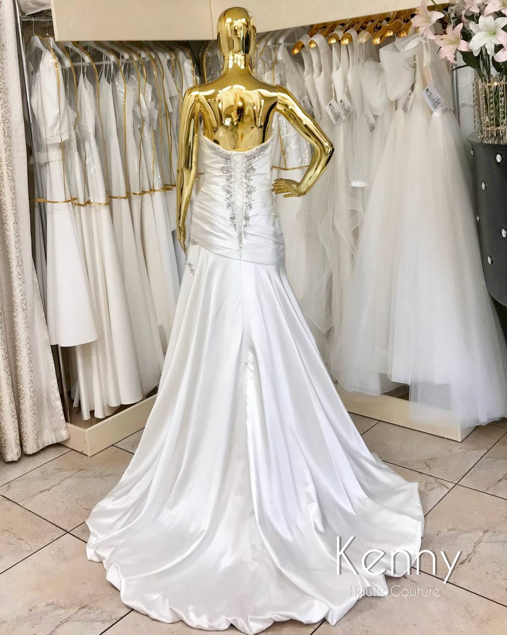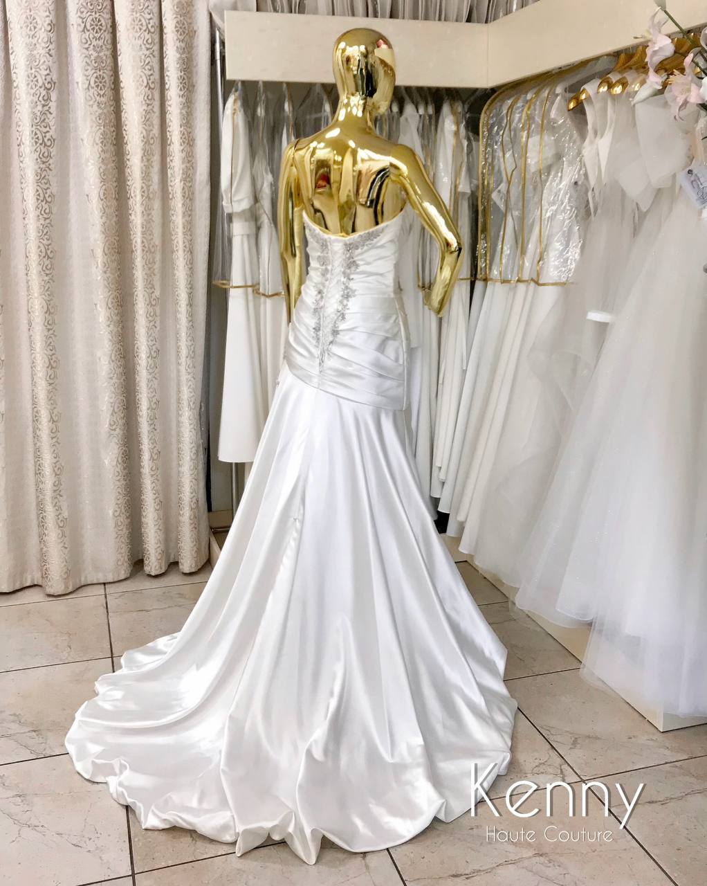 Чарівність у кожному русі! Наша розкішна модель «Kenny» облягаючого силуету з королівського атласу – це втілення елегантності та вишуканості, створене руками Кутюр'є. Фактурні аплікації з вишивкою Swarovski додають неймовірне сяйво, підкреслюючи вигини фігури. І ми повністю впевнені, що його обраниця стане зразком жіночності у свій особливий день.
