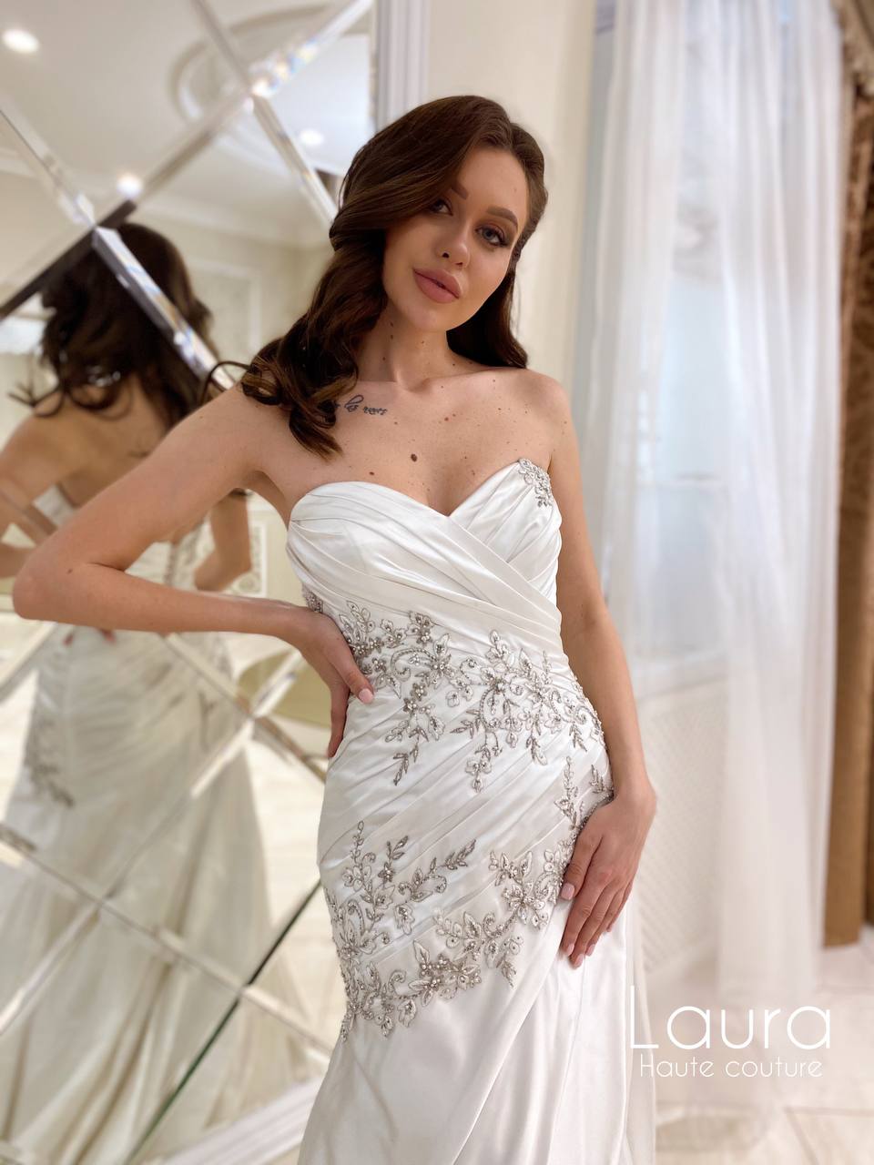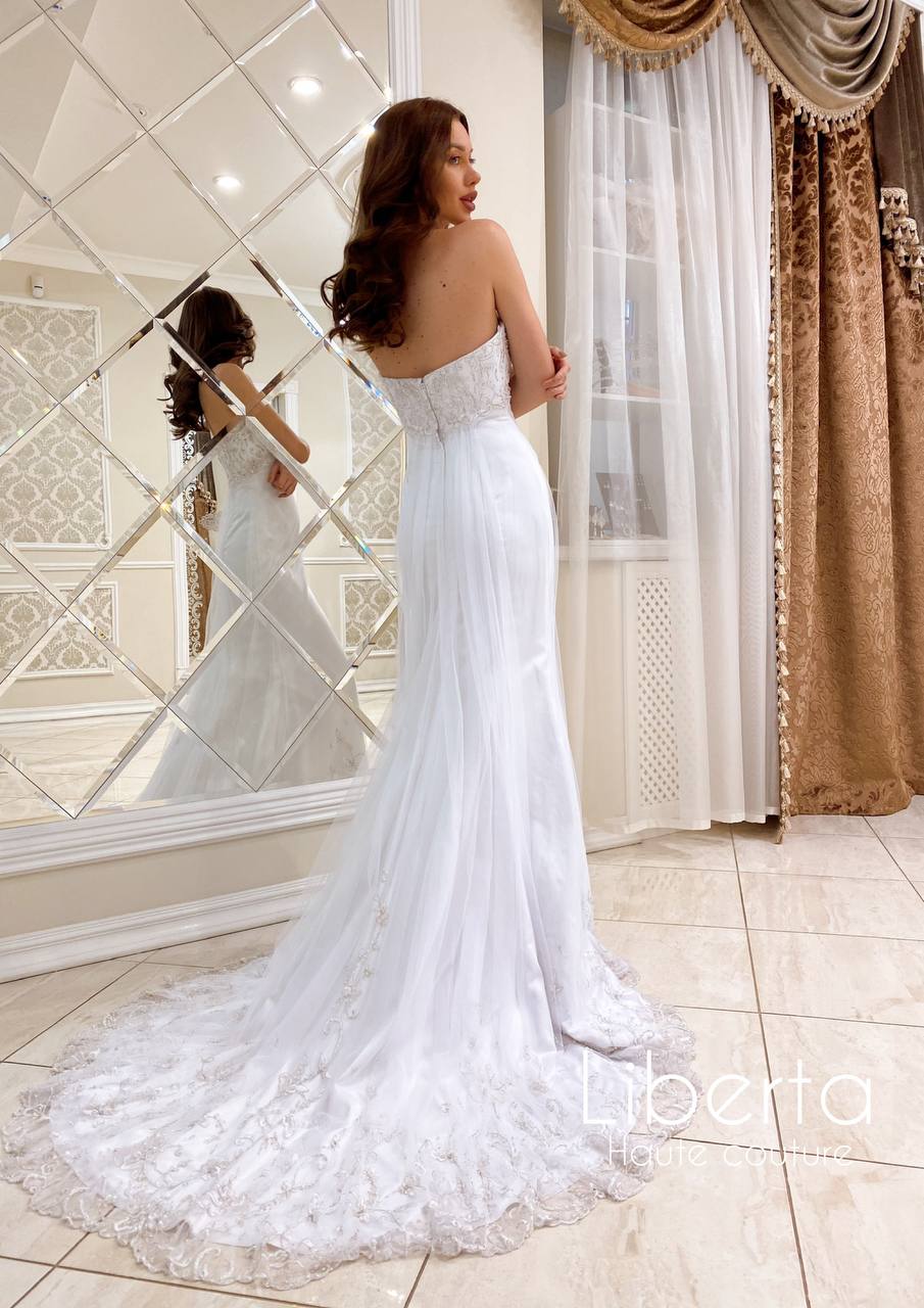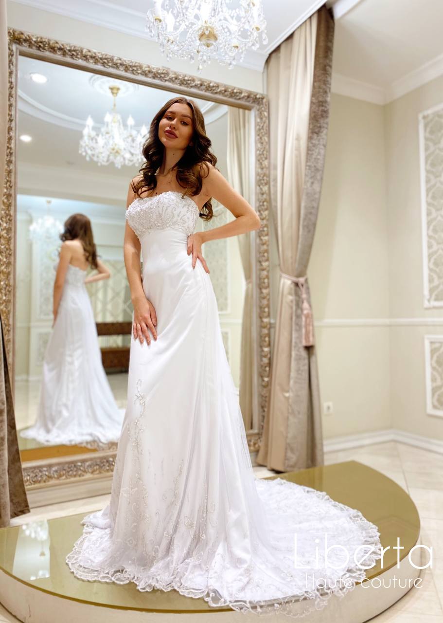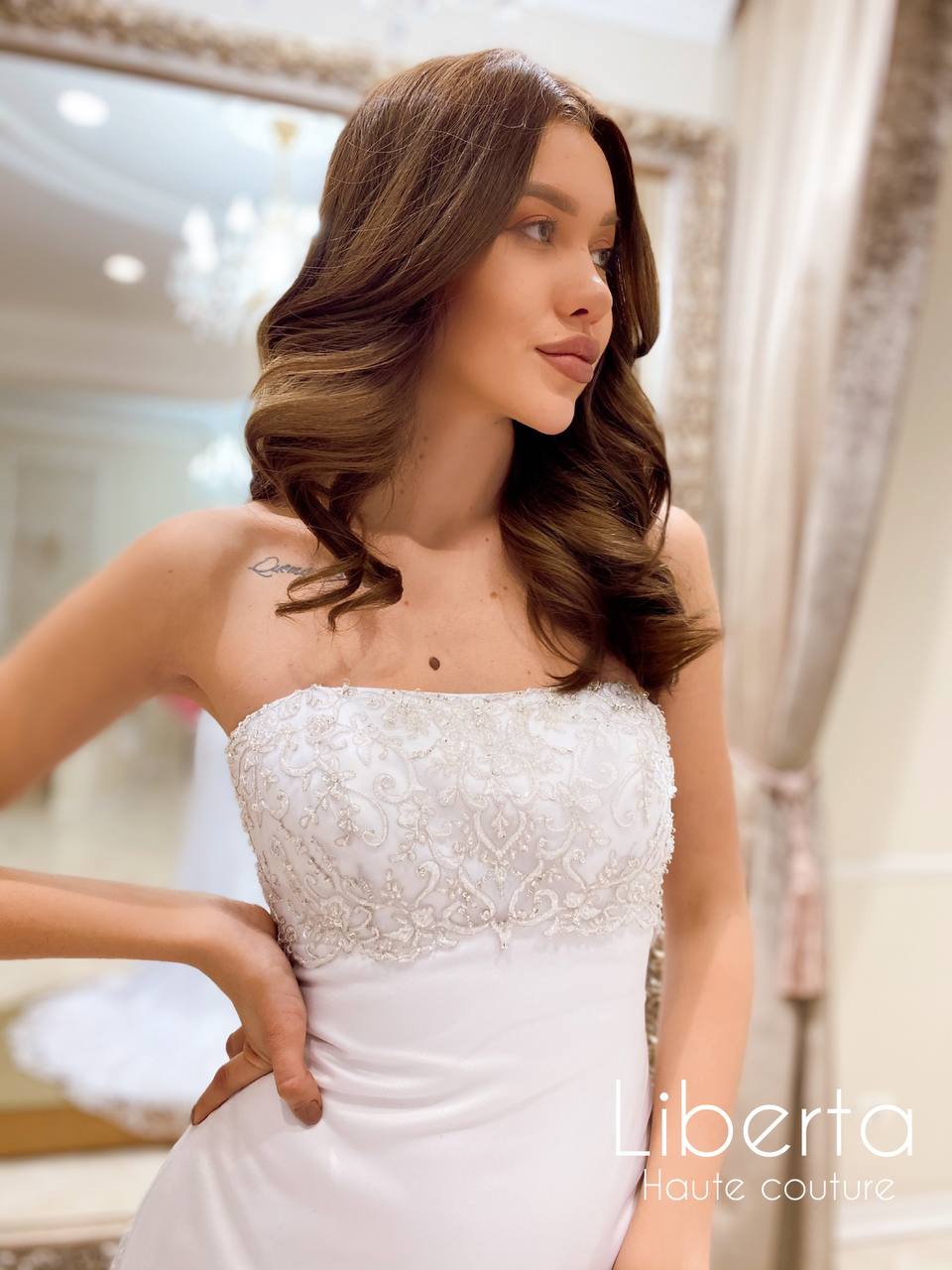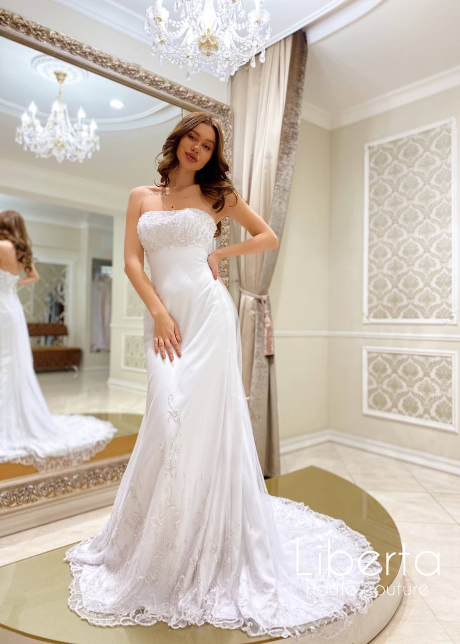Неймовірно ніжна та розкішна. Сукня, у якої унікальний настрій. Liberta - жіночність та вишуканість. Якщо "рибка" - саме те, що Ви шукаєте, - обов'язково приміряйте цю сукню. Класичний силует доповнений ексклюзивною вишивкою та шлейфом надасть Вашому образу ніжності та витонченості.