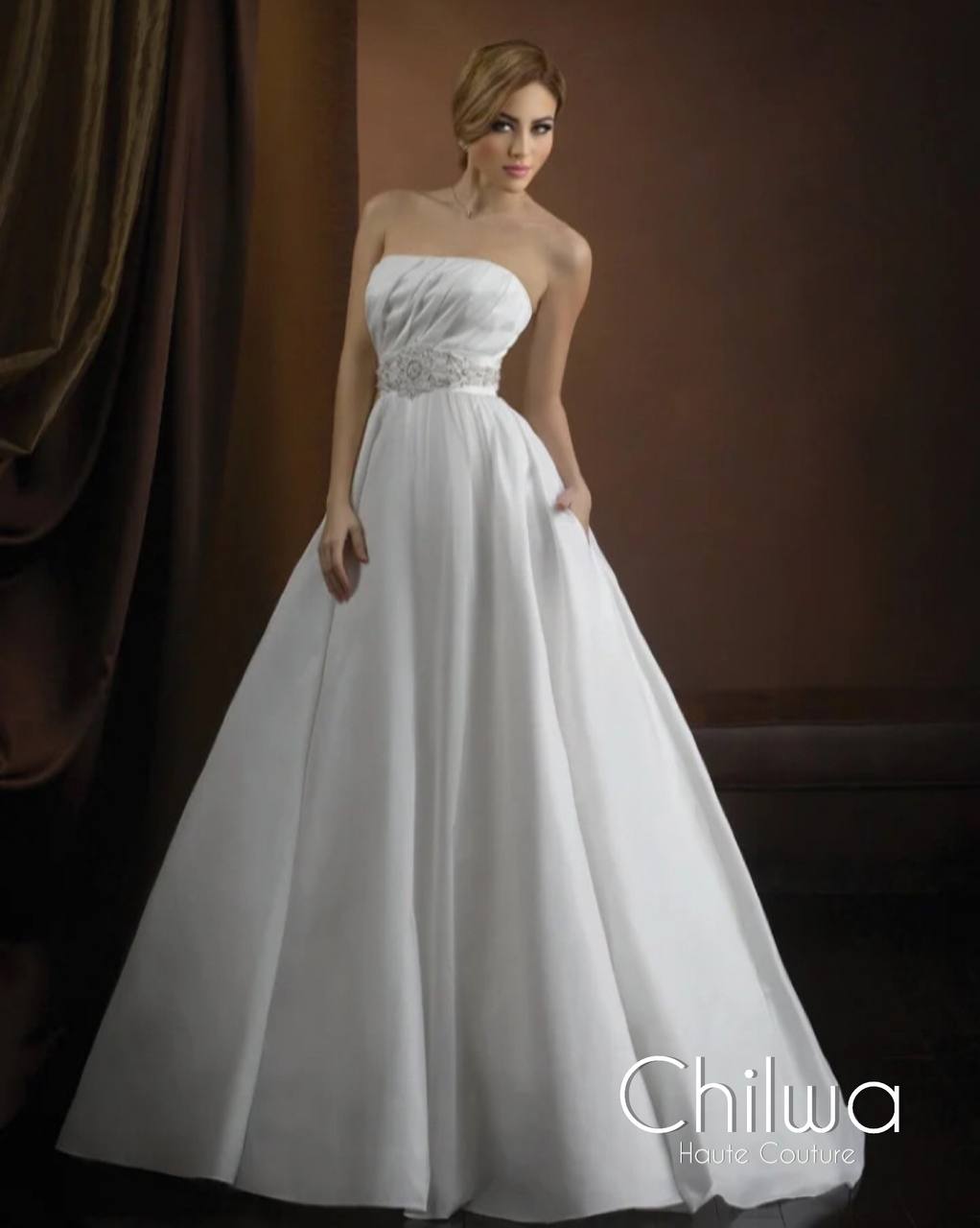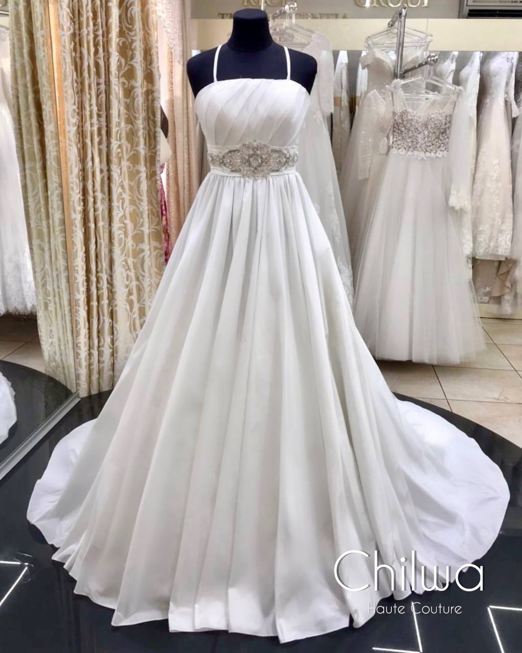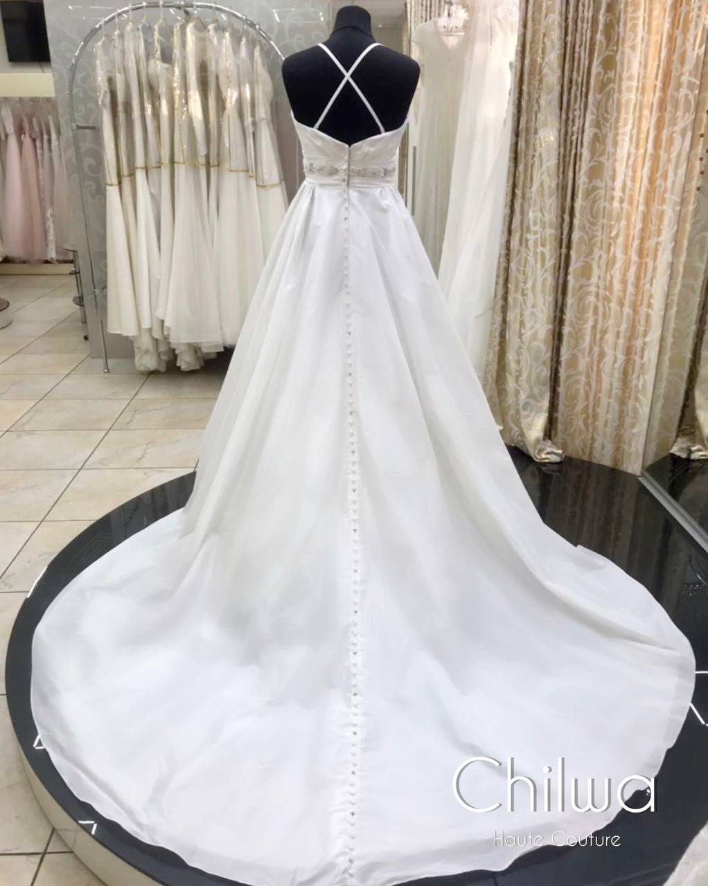 Елегантність гладкого тафетасу та шик крою поєднуються у весільній сукні «Chilwa». Потайні кишеньки надають грайливості, а розкішний пояс, виконаний вручну, підкреслює Вашу вишуканість. У цій сукні від всесвітньо відомого бренду «Allure Bridals», Ви обовʼязково відчуєте себе справжньою принцесою свого весільного чаклунства.