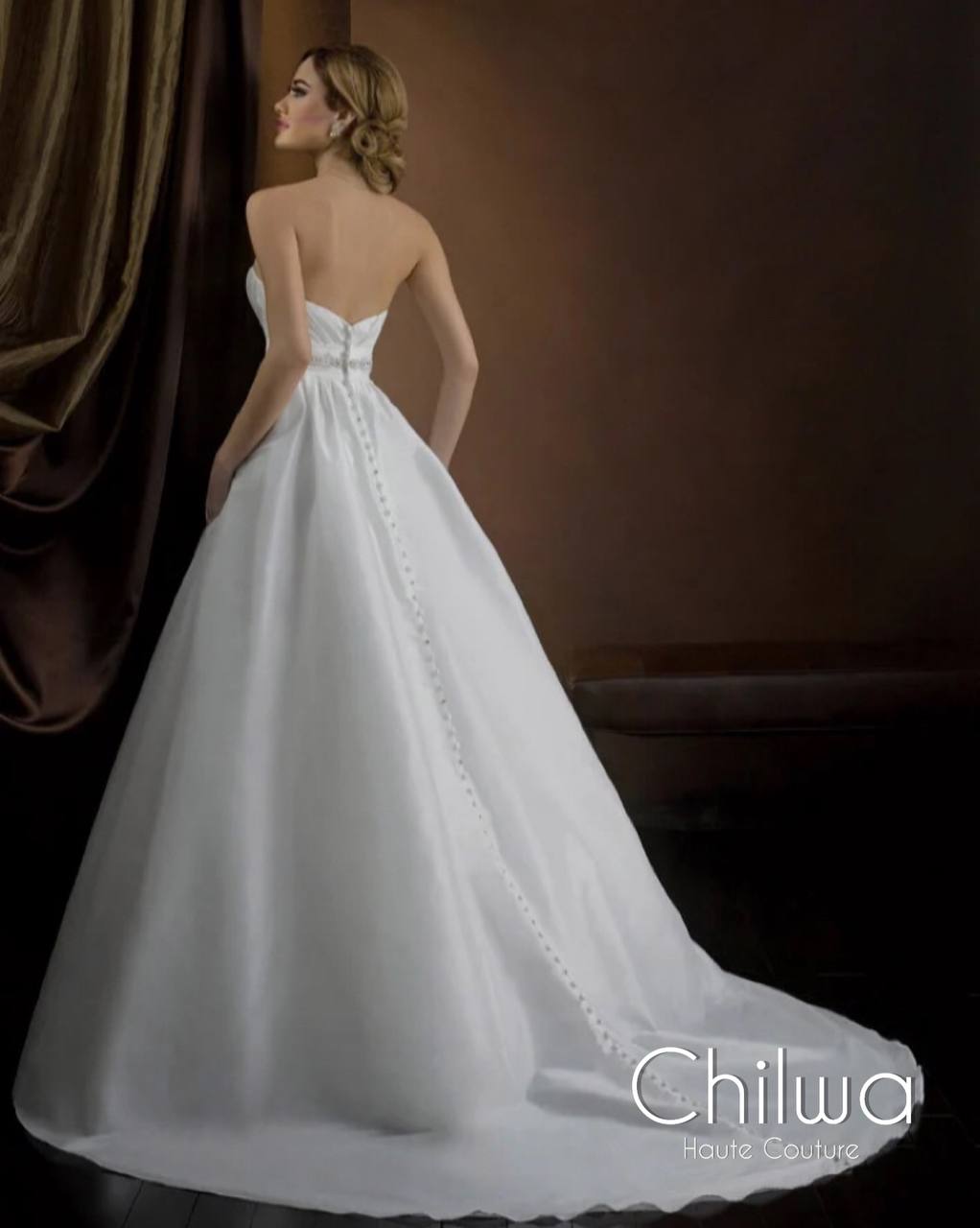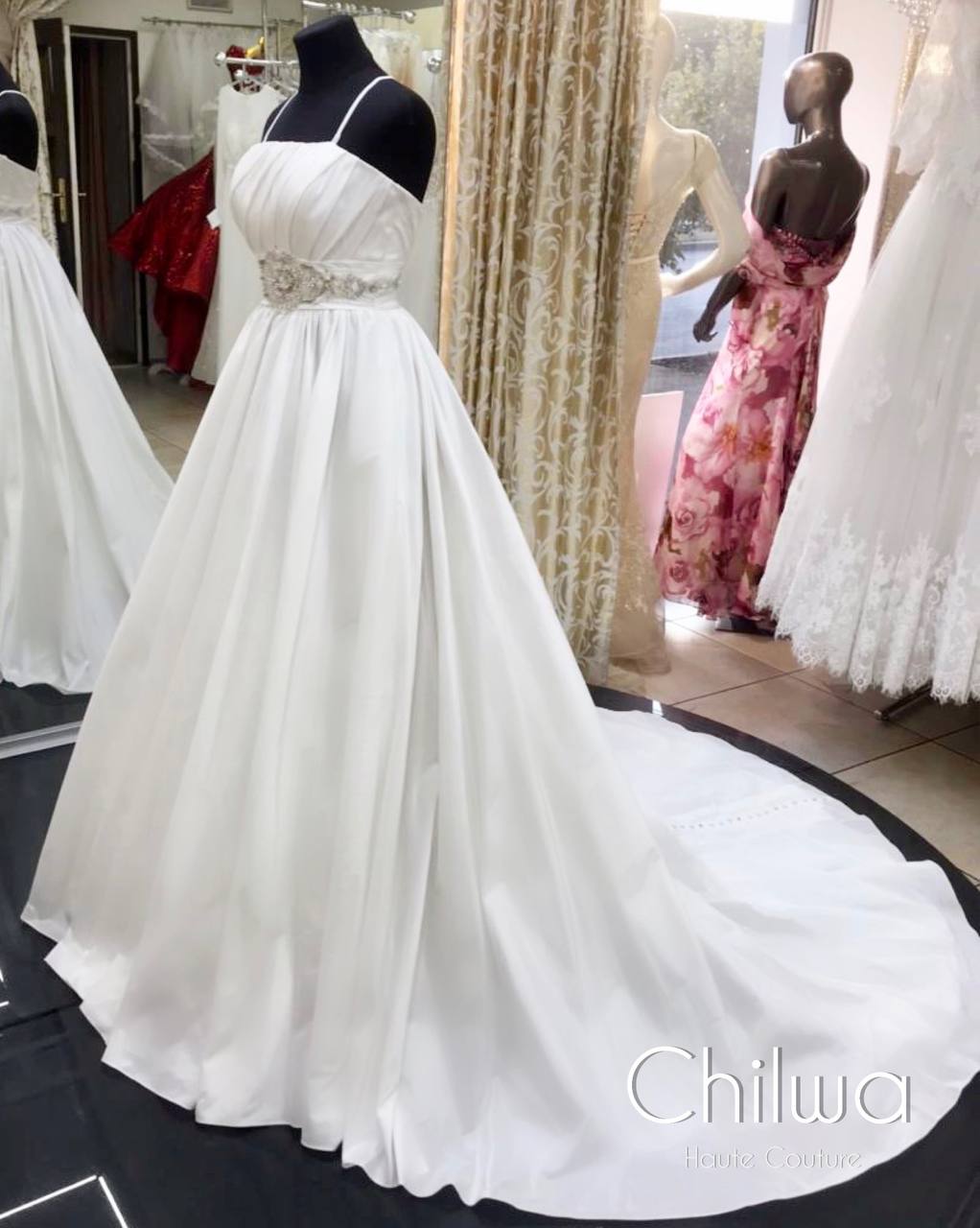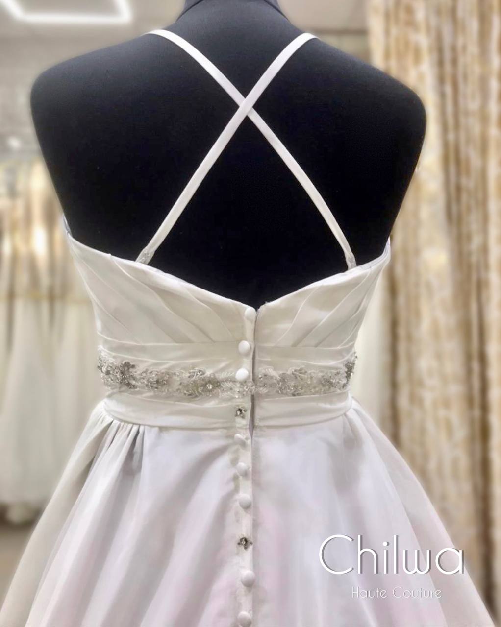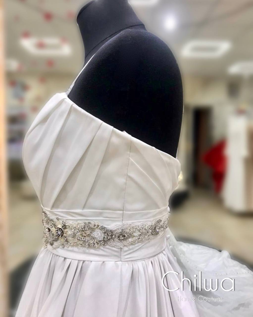 Елегантність гладкого тафетасу та шик крою поєднуються у весільній сукні «Chilwa». Потайні кишеньки надають грайливості, а розкішний пояс, виконаний вручну, підкреслює Вашу вишуканість. У цій сукні від всесвітньо відомого бренду «Allure Bridals», Ви обовʼязково відчуєте себе справжньою принцесою свого весільного чаклунства.