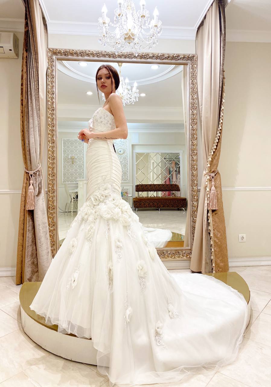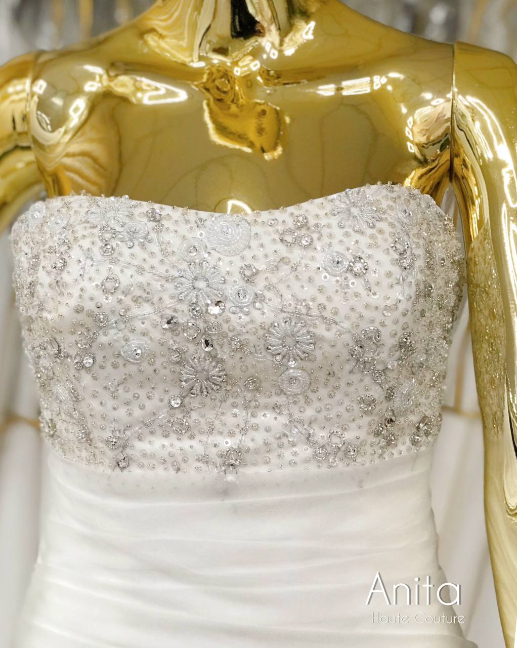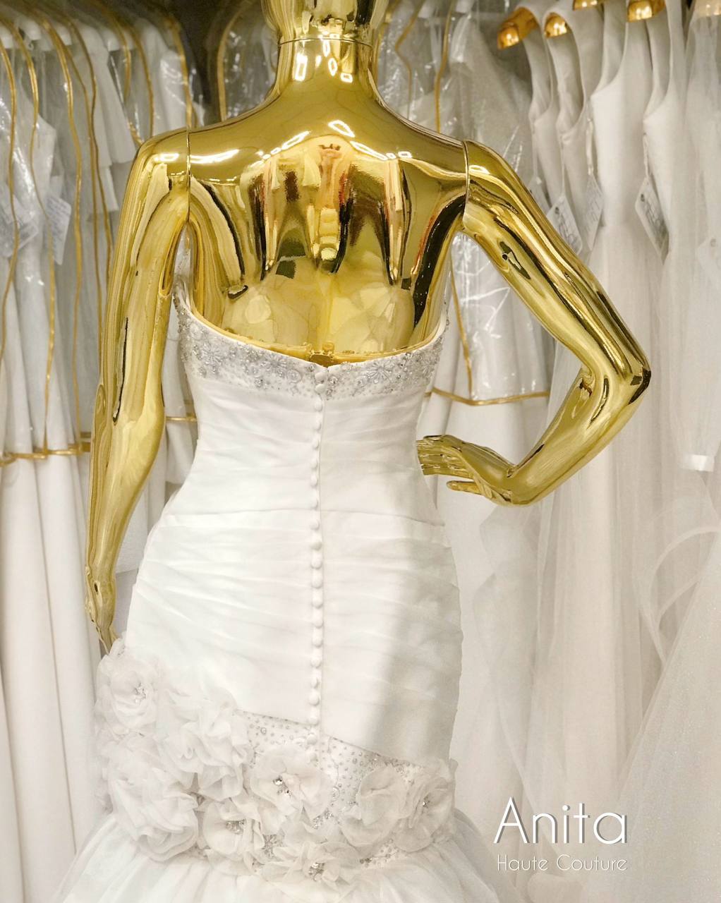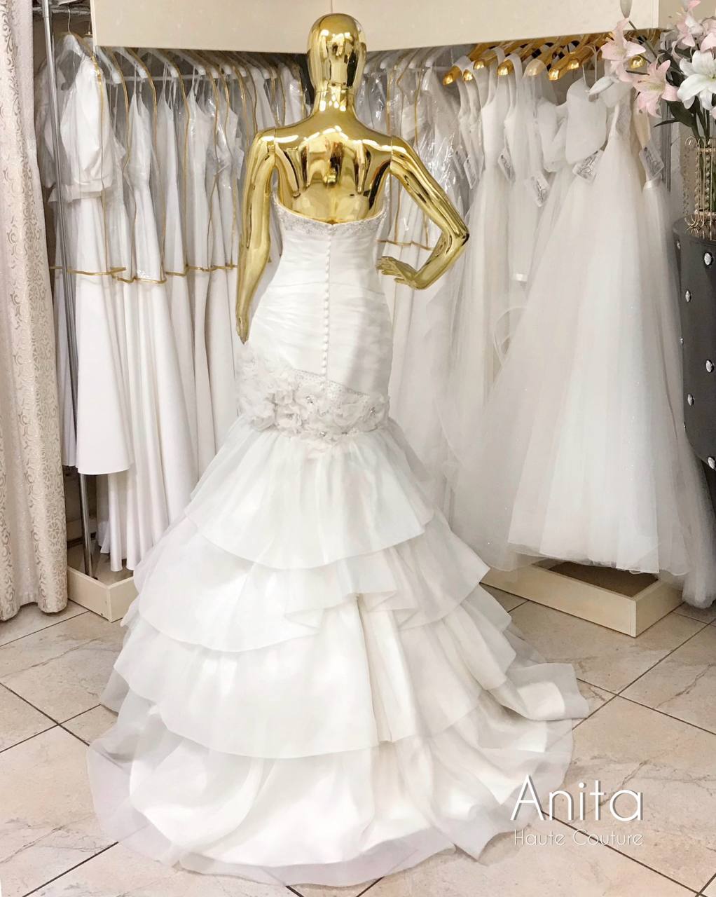 Сяйте на весіллі, як справжня королева! Неповторна модель «Anita» у стилі 'годе', що облягає, створена руками Кутюр'є для найвишуканішої нареченої. Волани з невагомої органзи, додають легкості, а розкішний квітковий декор, усипаний кристалами «Swarovski», надає неповторне сяйво. Зачаруйте всіх пишнотою, підкреслюючи свою витонченість та стиль!