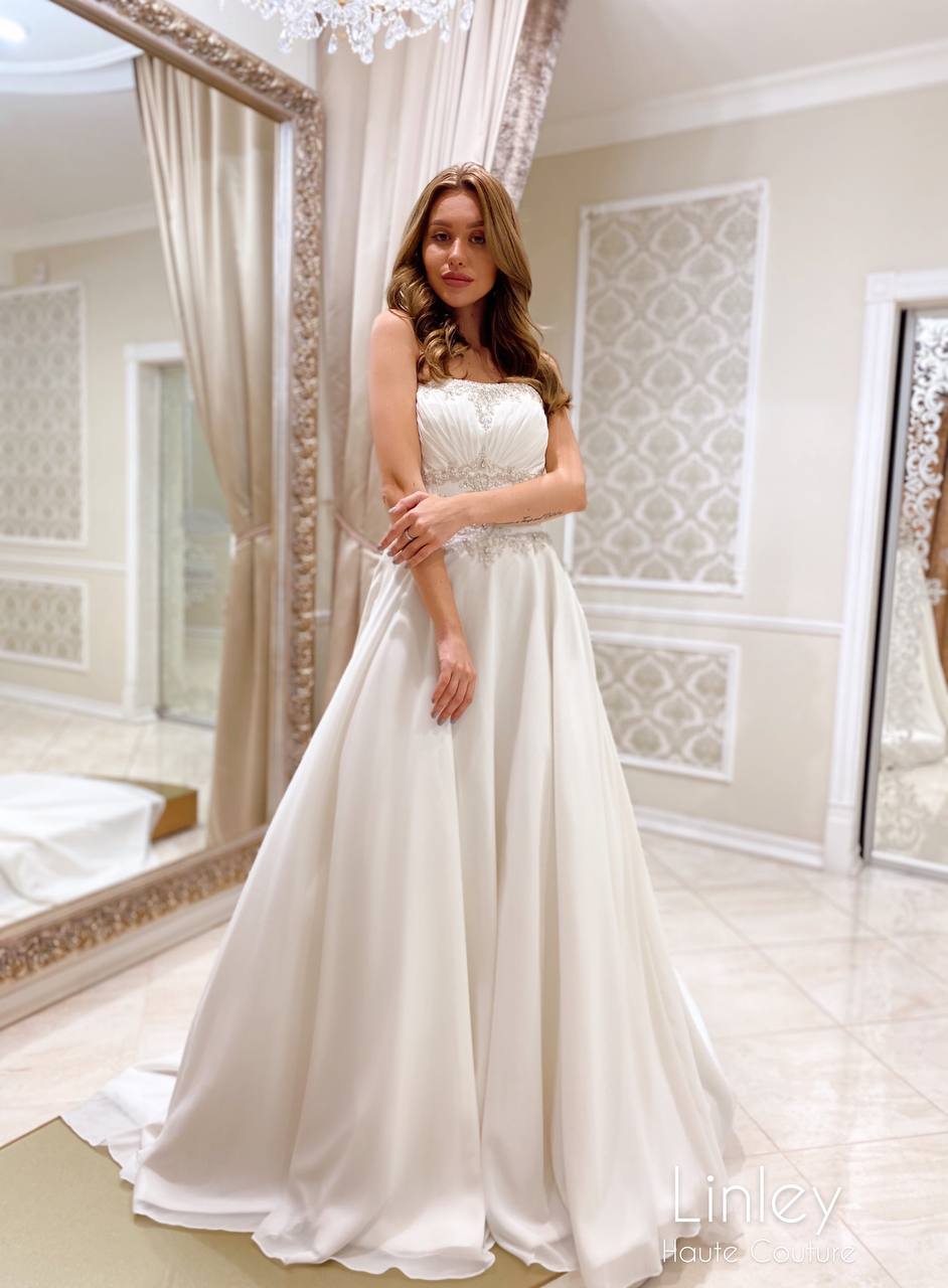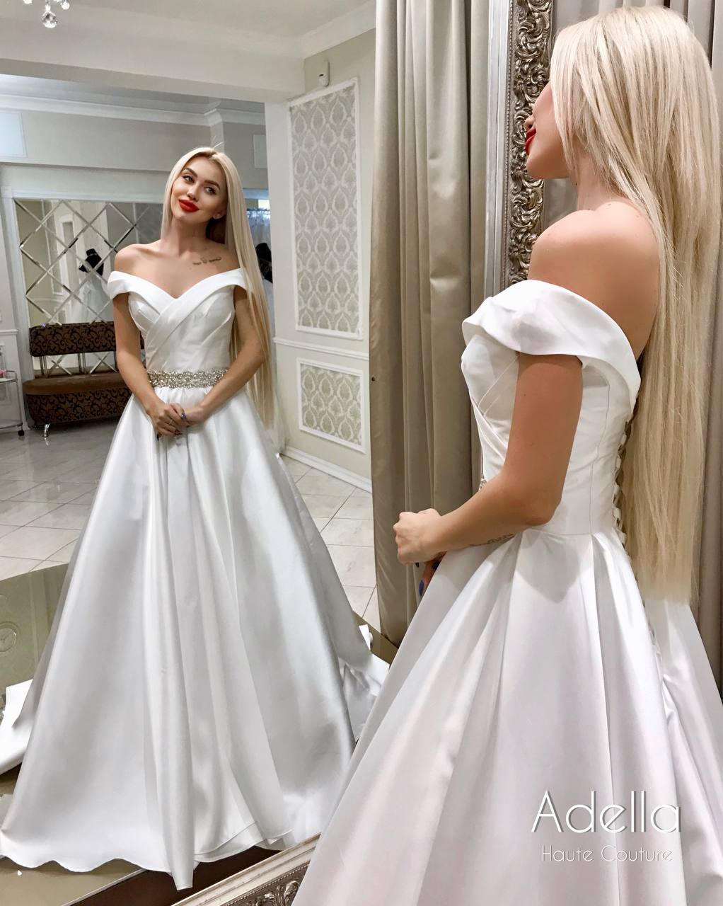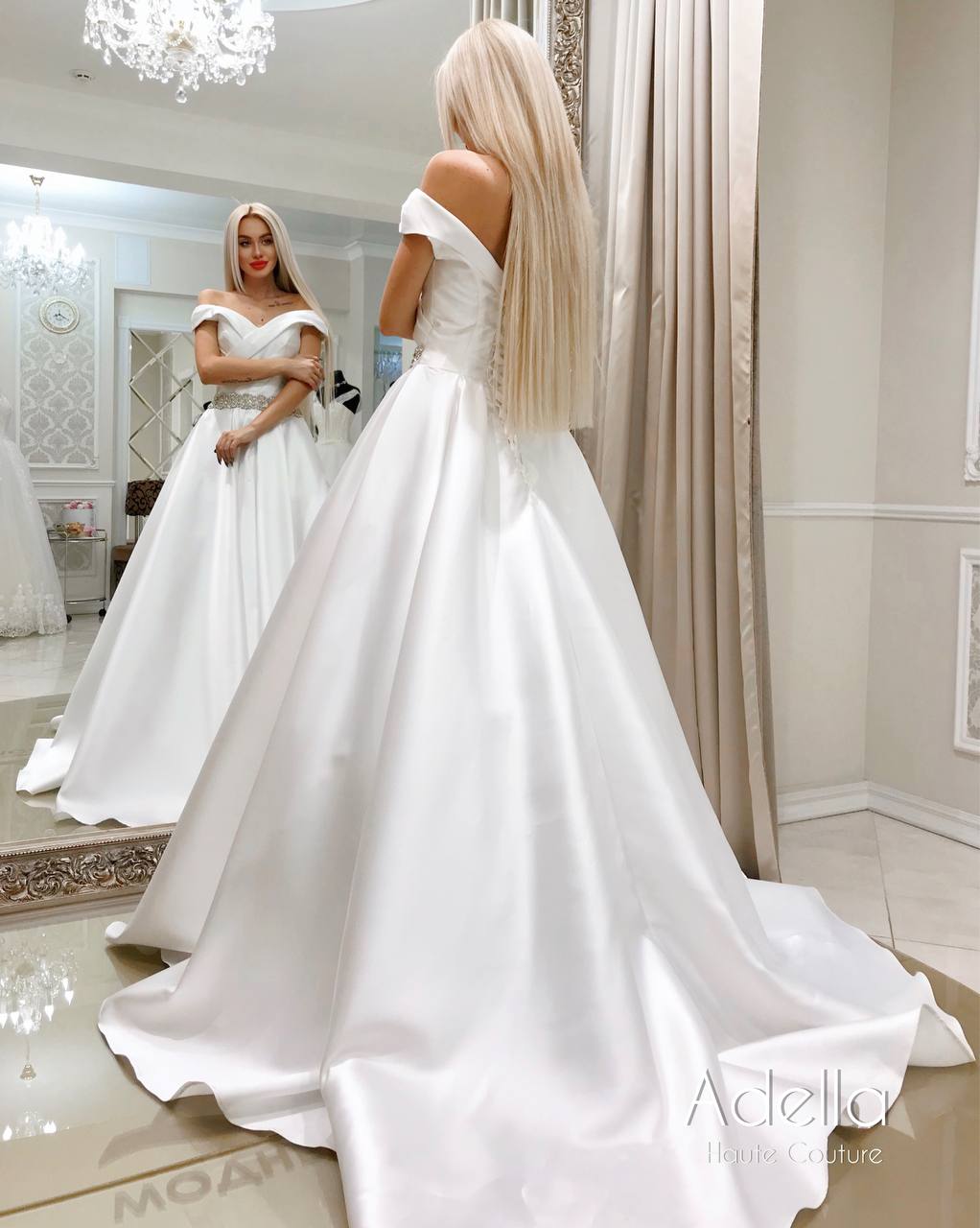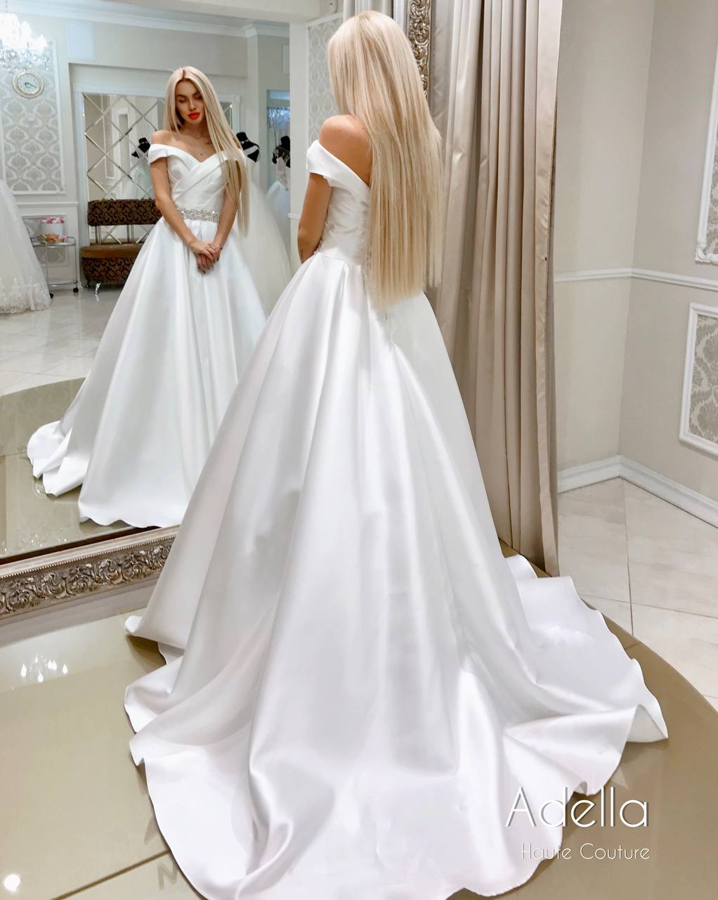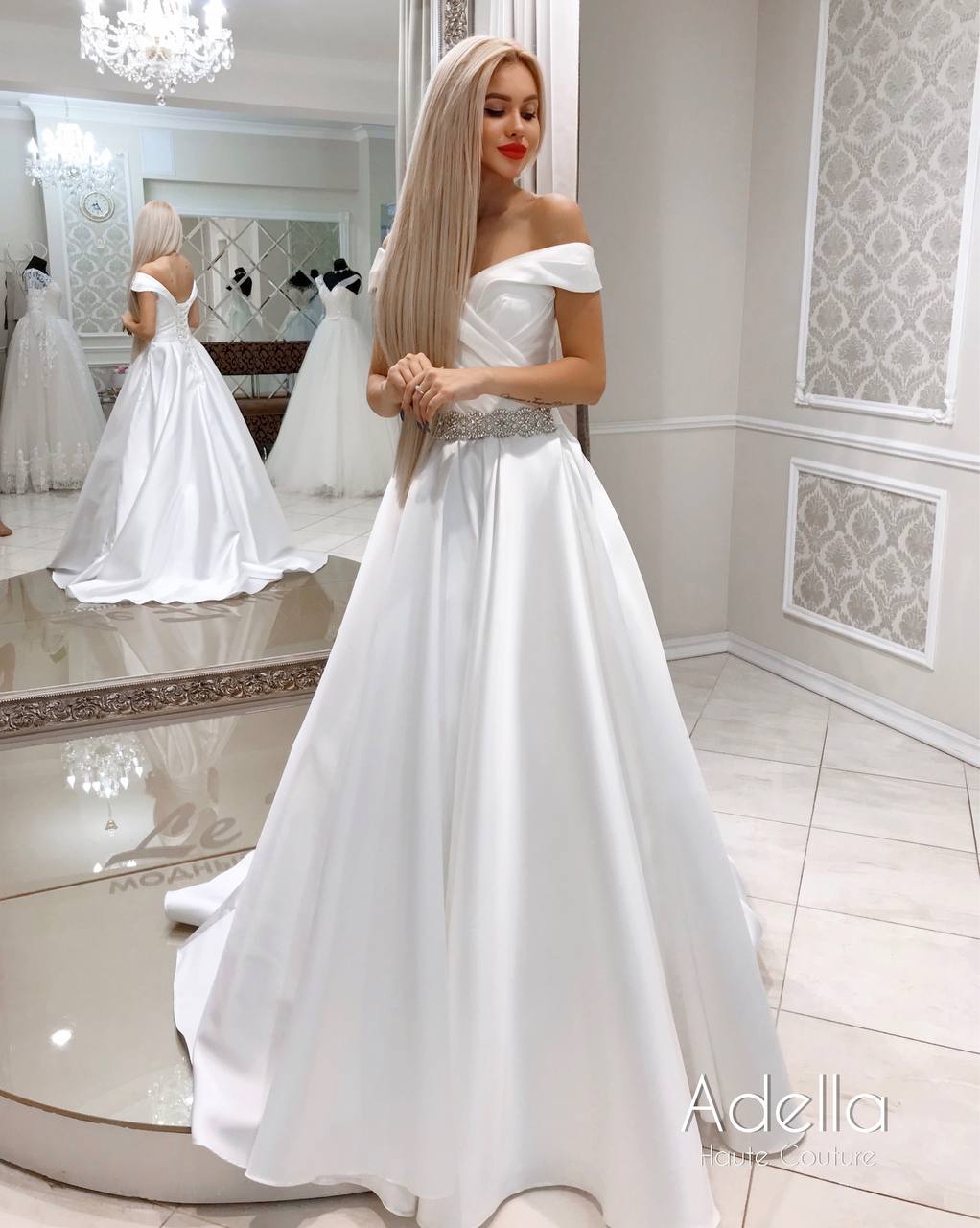 Наш відомий хіт «Adella» з неперевершеної тканини «мікадо». Приспущені плечики вигідно акцентують увагу на декольте, а розкішний пояс з каміння «Swarovski» підкреслює струнку талію. Ви закохаєтесь у цю сукню з першої примірки.