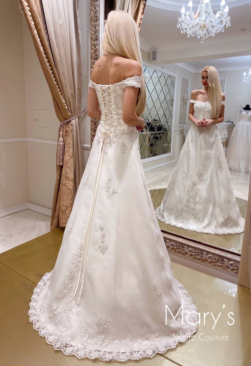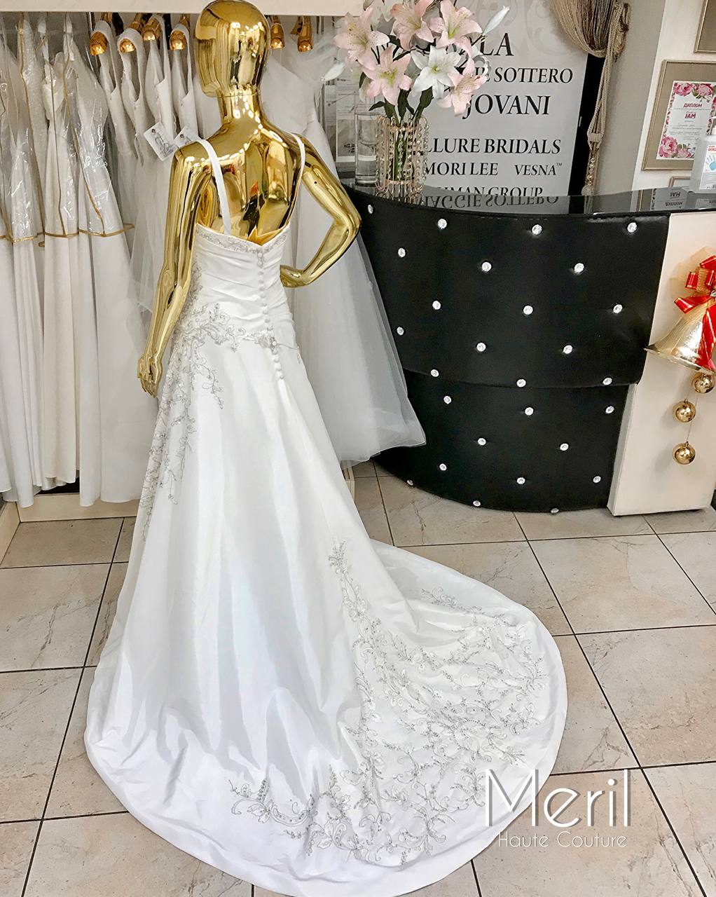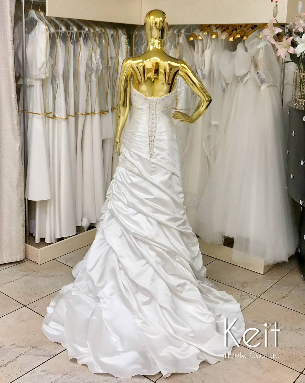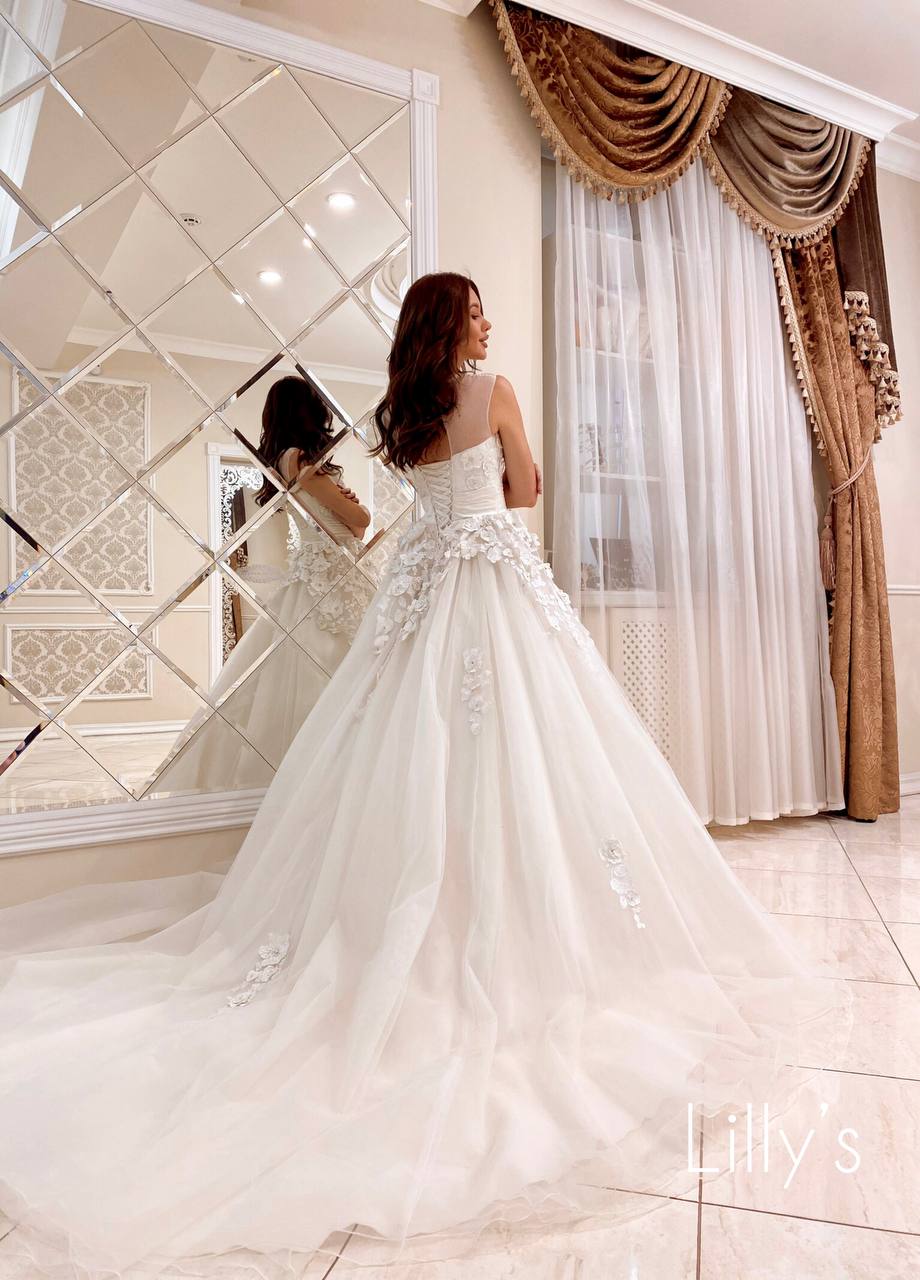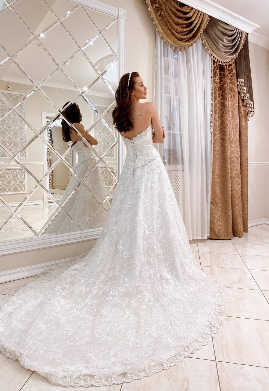 Сукня в якій кожна дівчина буде неперевершеною. Вишукане мереживо на спині у формі «метелика» з рядом маленьких перламутрових гудзиків. Легкий, повітряний шлейф та корсет «серце» підкорять будь кого. Саме тому ця сукня чекає свою єдину власницю.