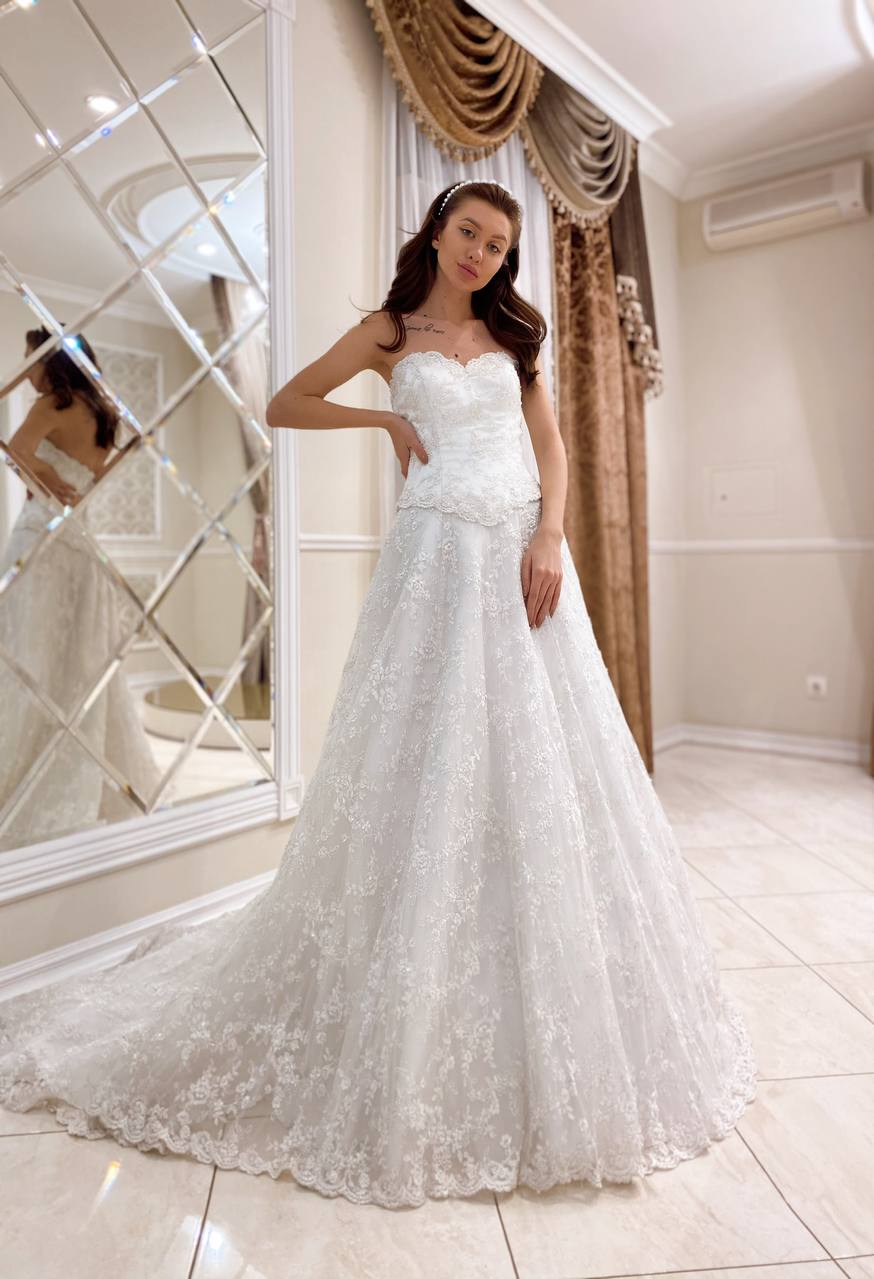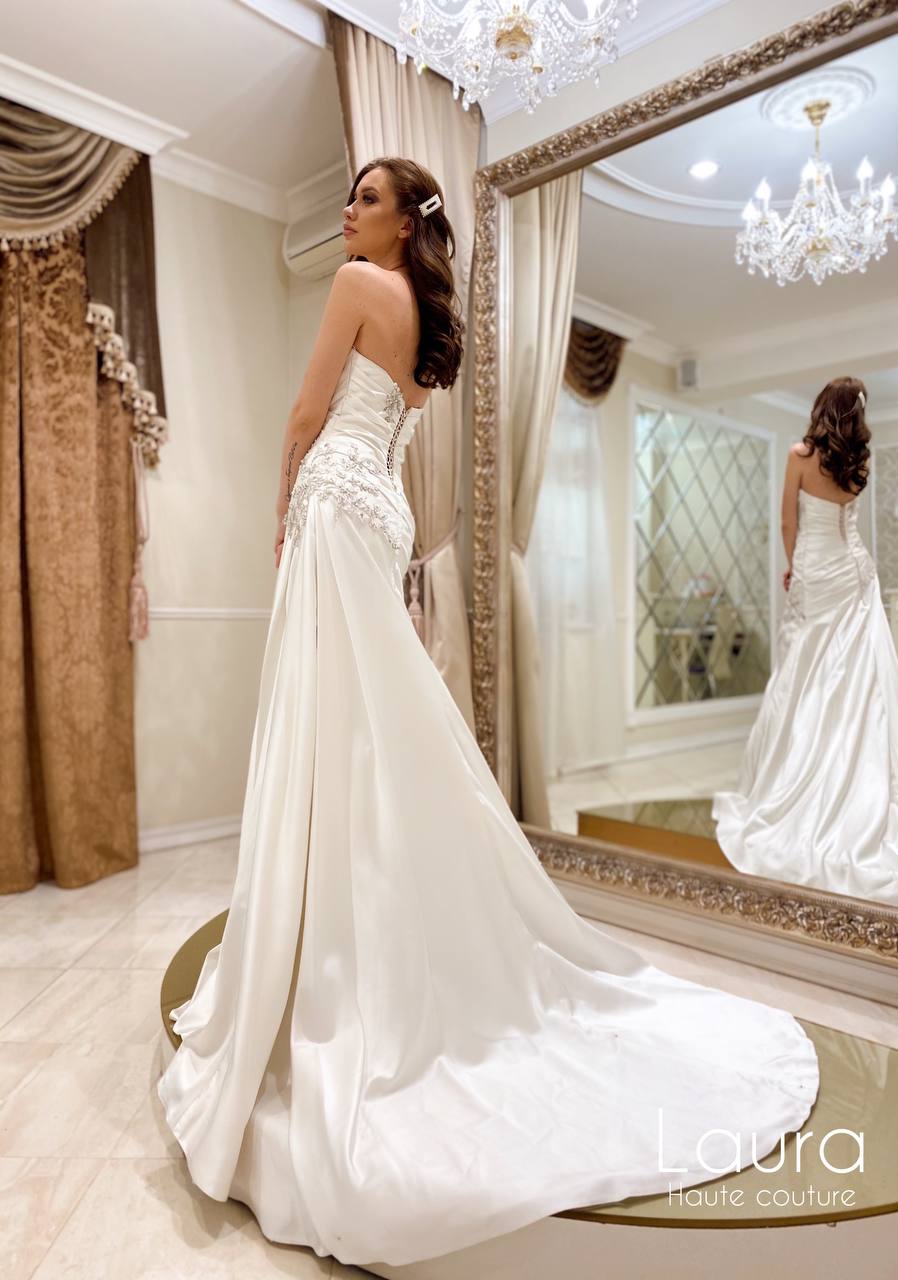 • Комплектація: Сукня з пристібною спідницею зі шлейфом