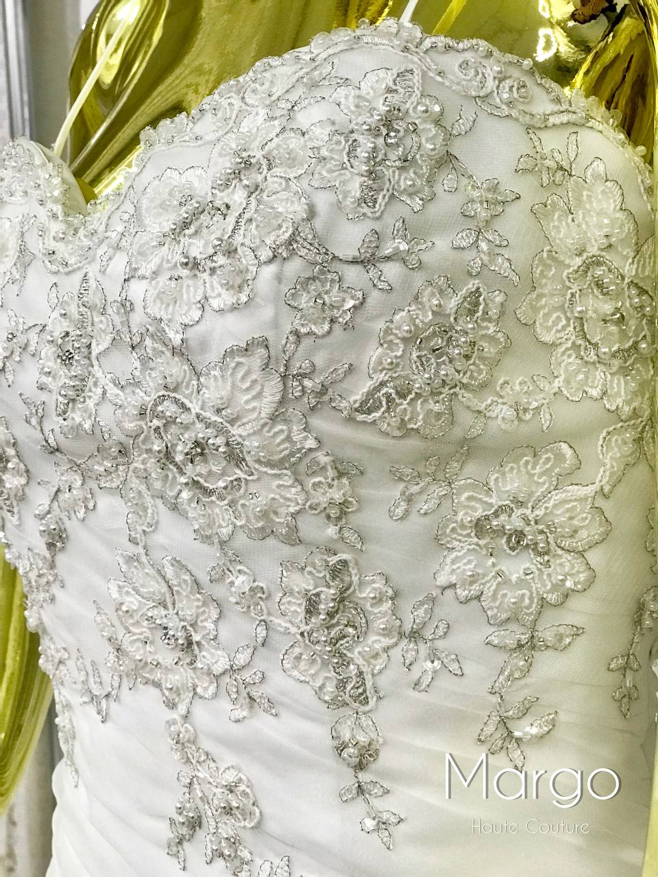 • Тканина: Мереживо «Шантилї», вишивка бісером та кришталем «Swarovski»